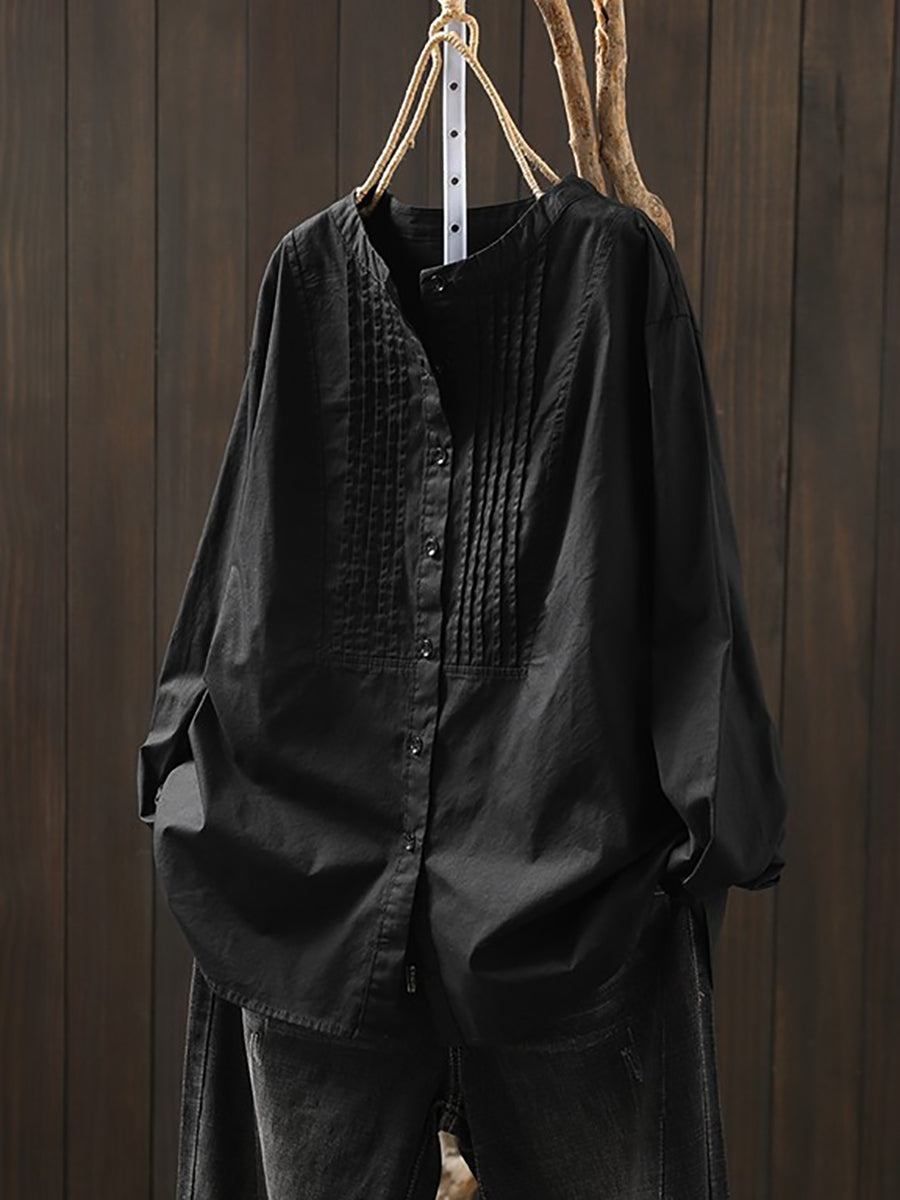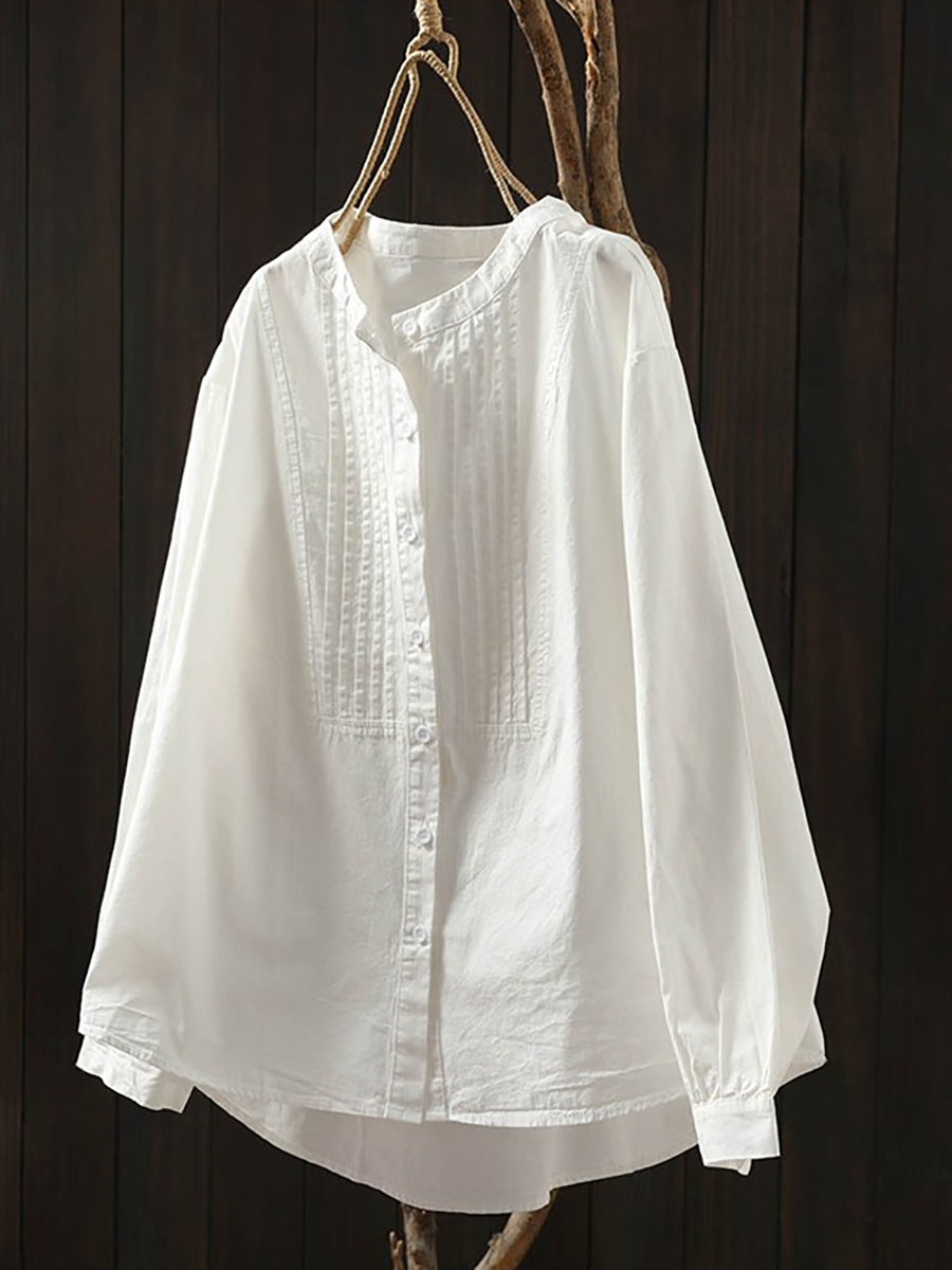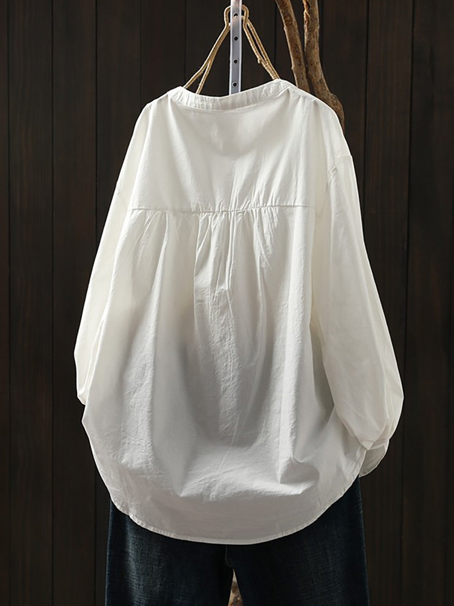Camisa Artsy Spring fruncida con cuello redondo para mujer, 100 % algodón