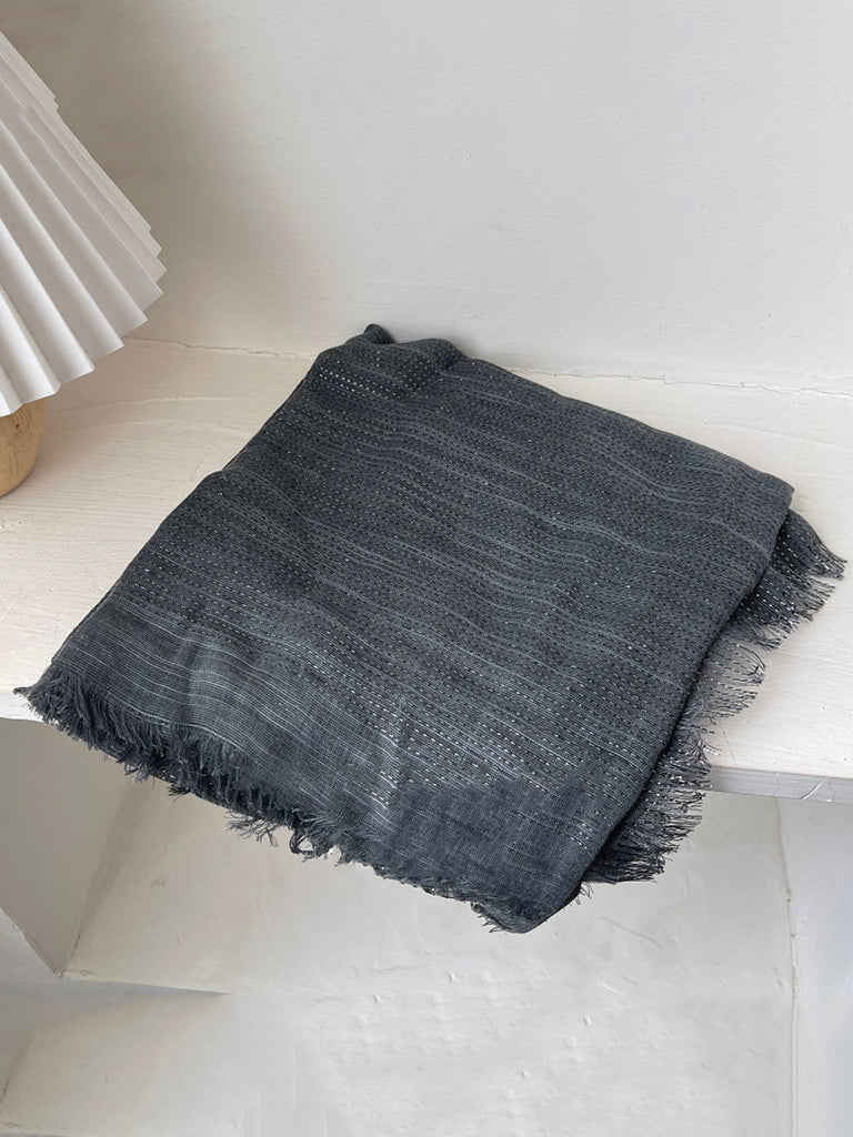 Bufanda tipo chal con borlas y rayas artísticas para mujer