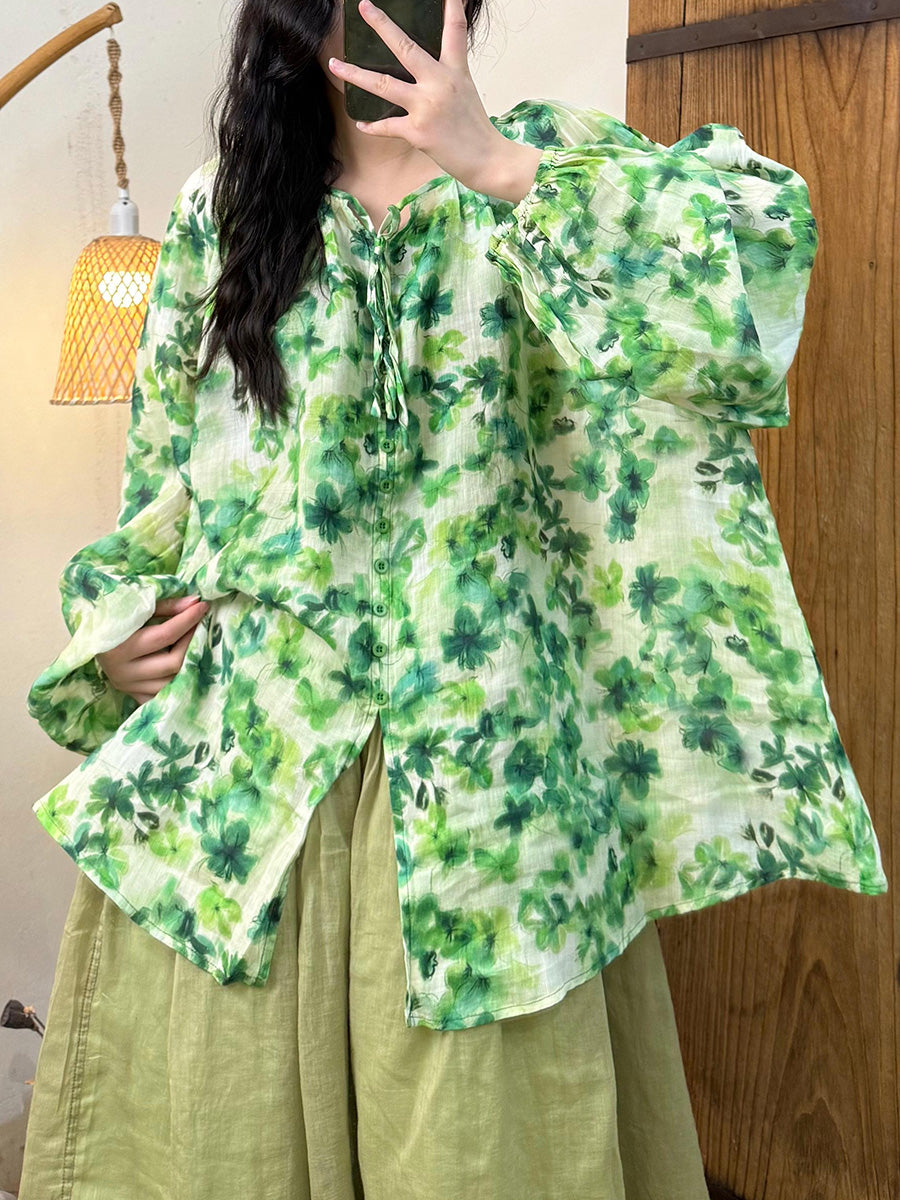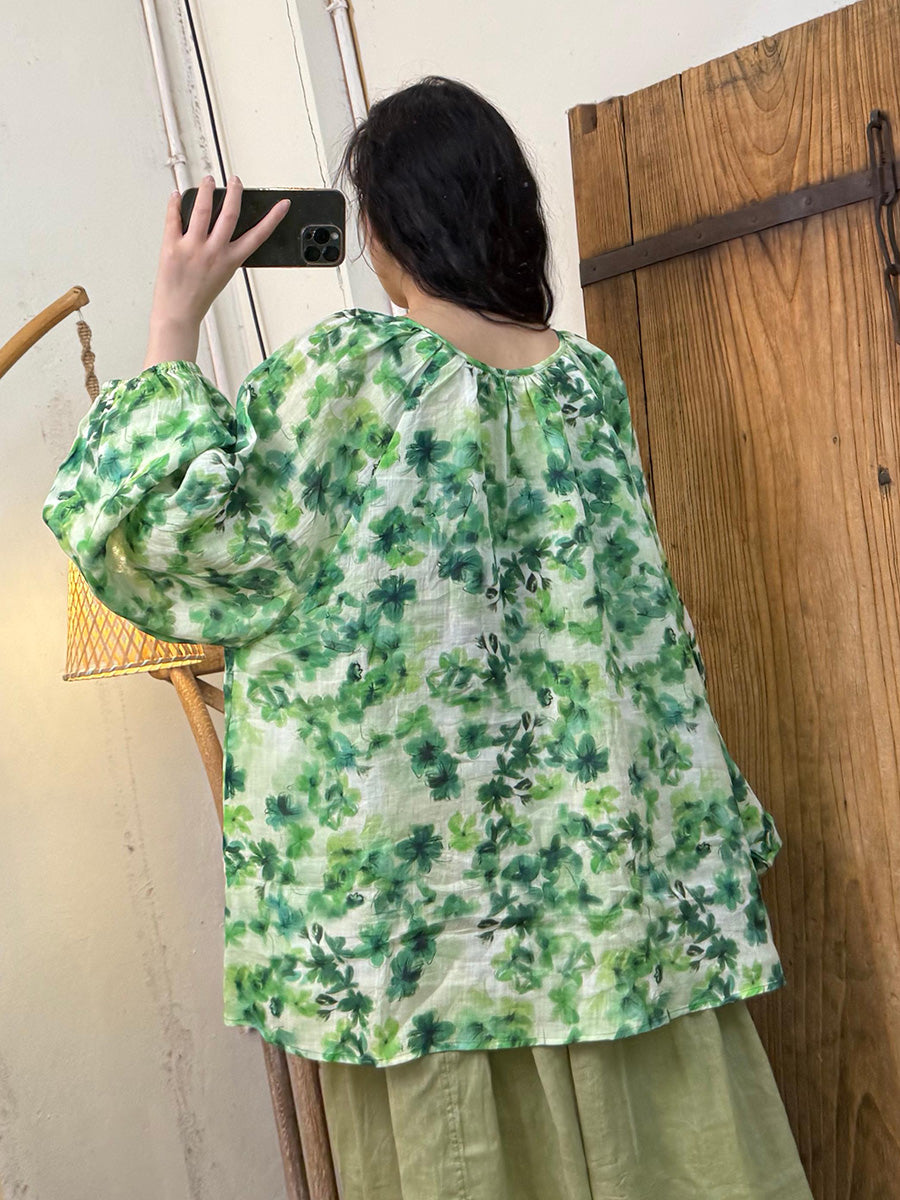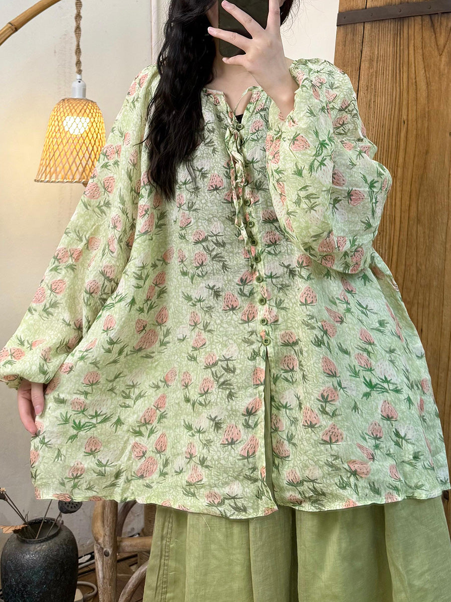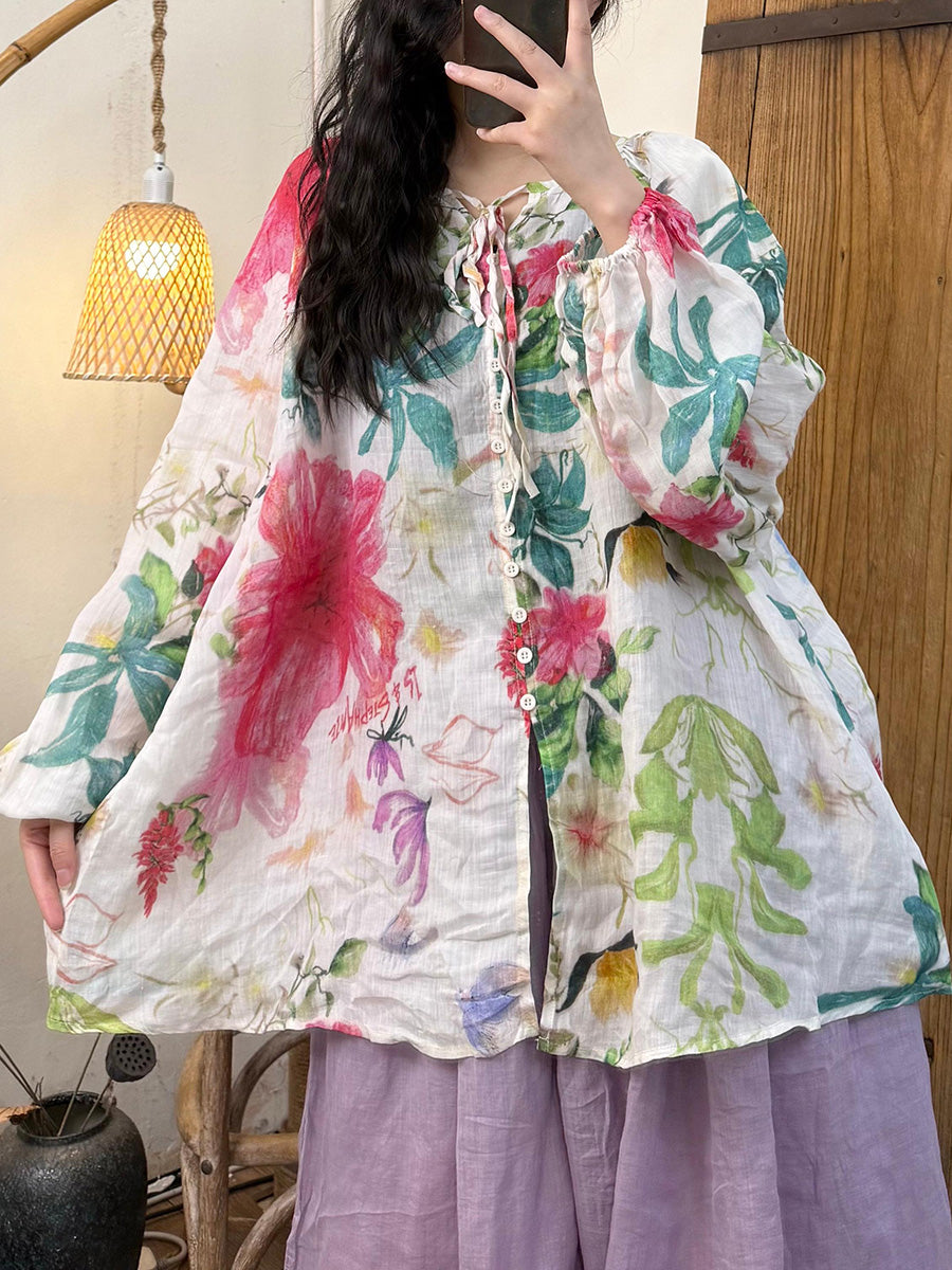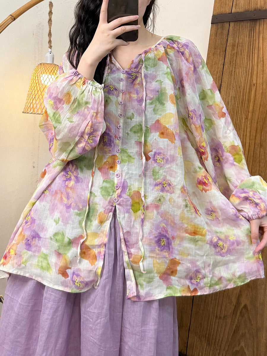 Camisa de verano con tirantes de flores y ramio para mujer