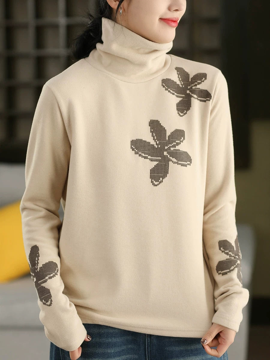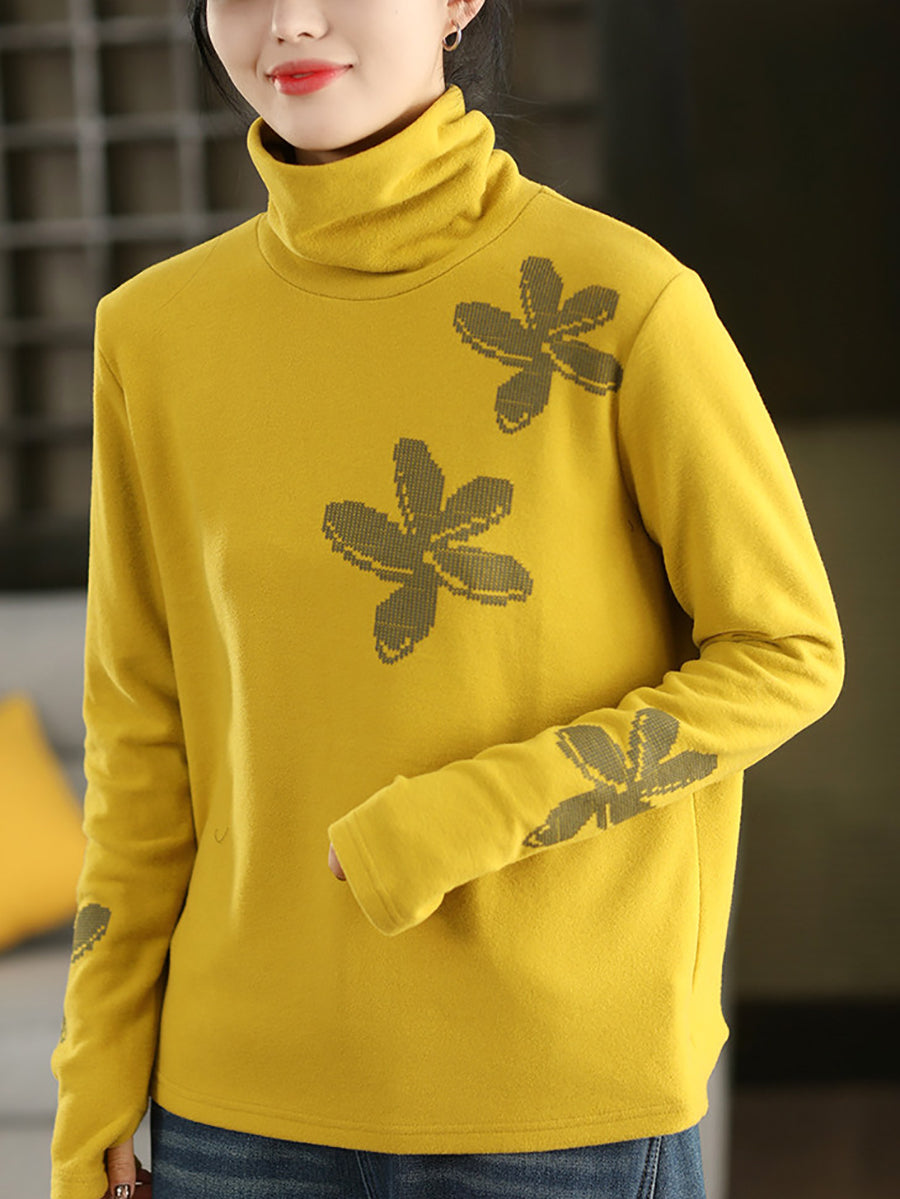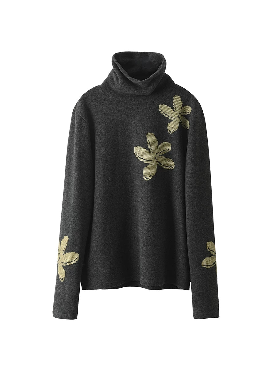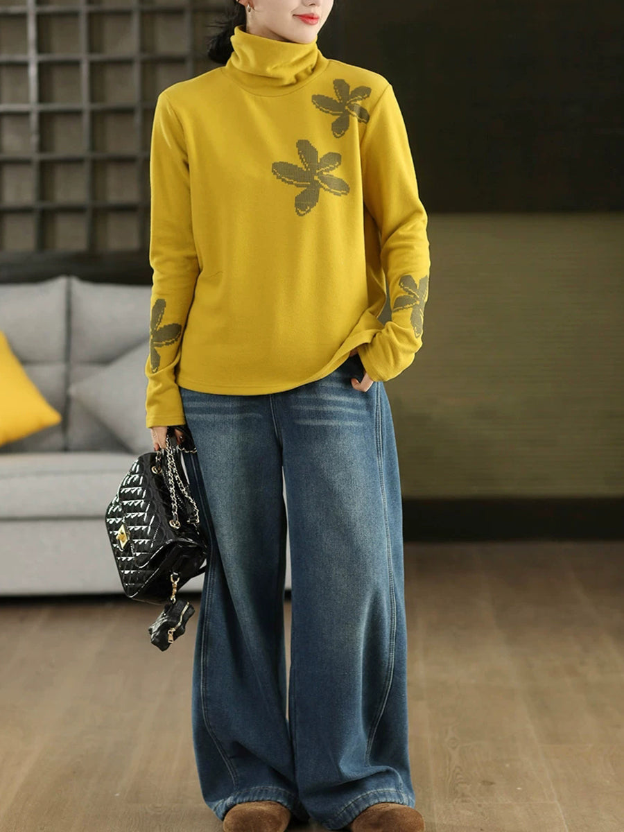 Suéter de cuello alto con flores artísticas de otoño para mujer