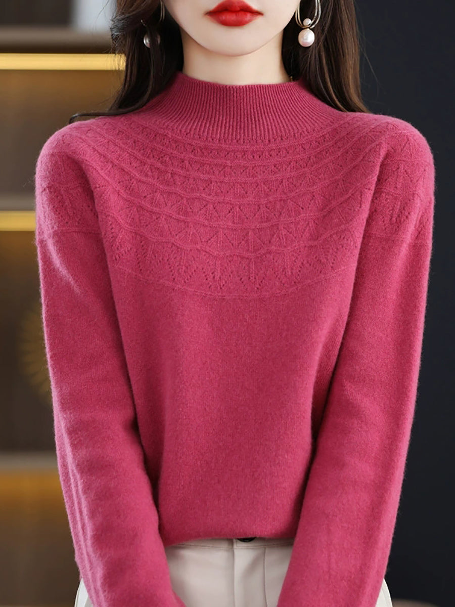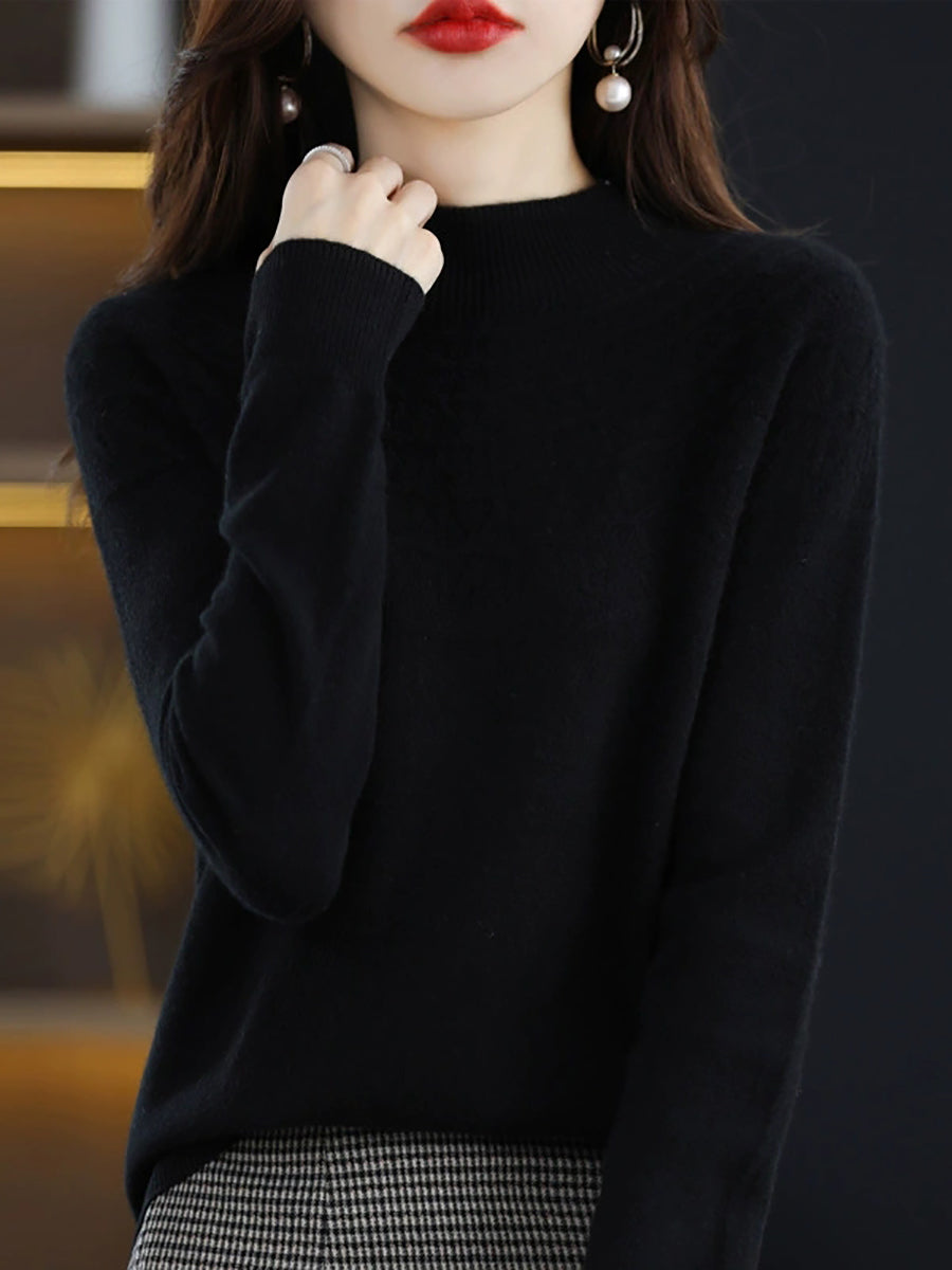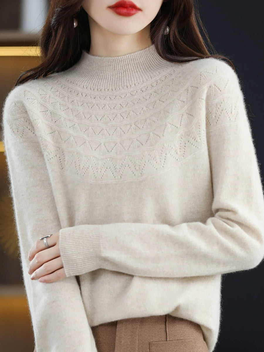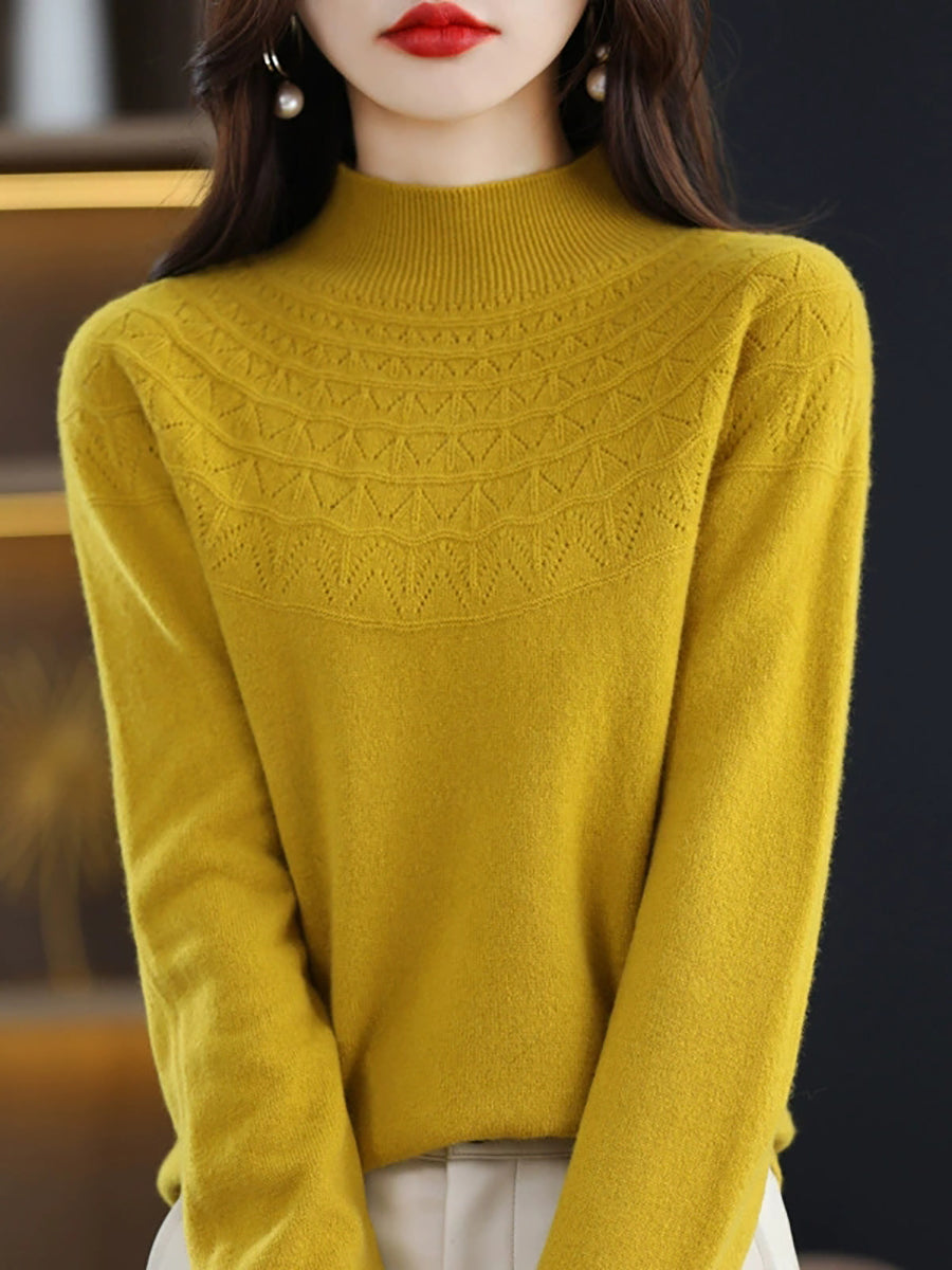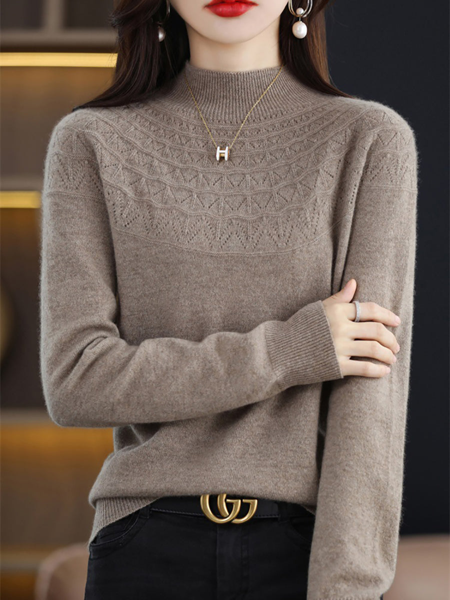 Suéter de punto con cuello alto medio artístico de otoño para mujer