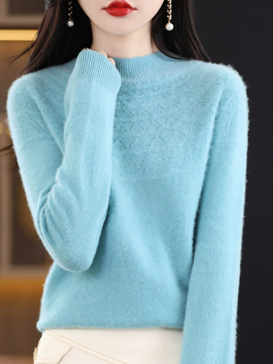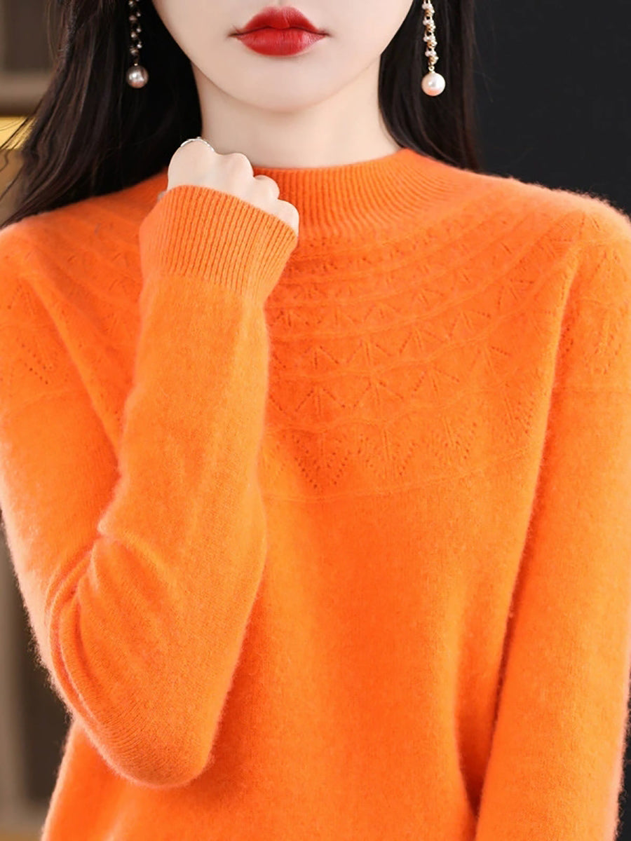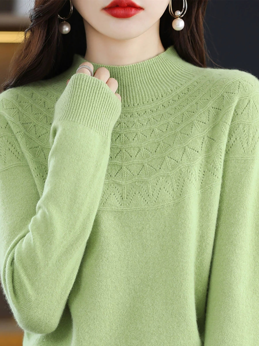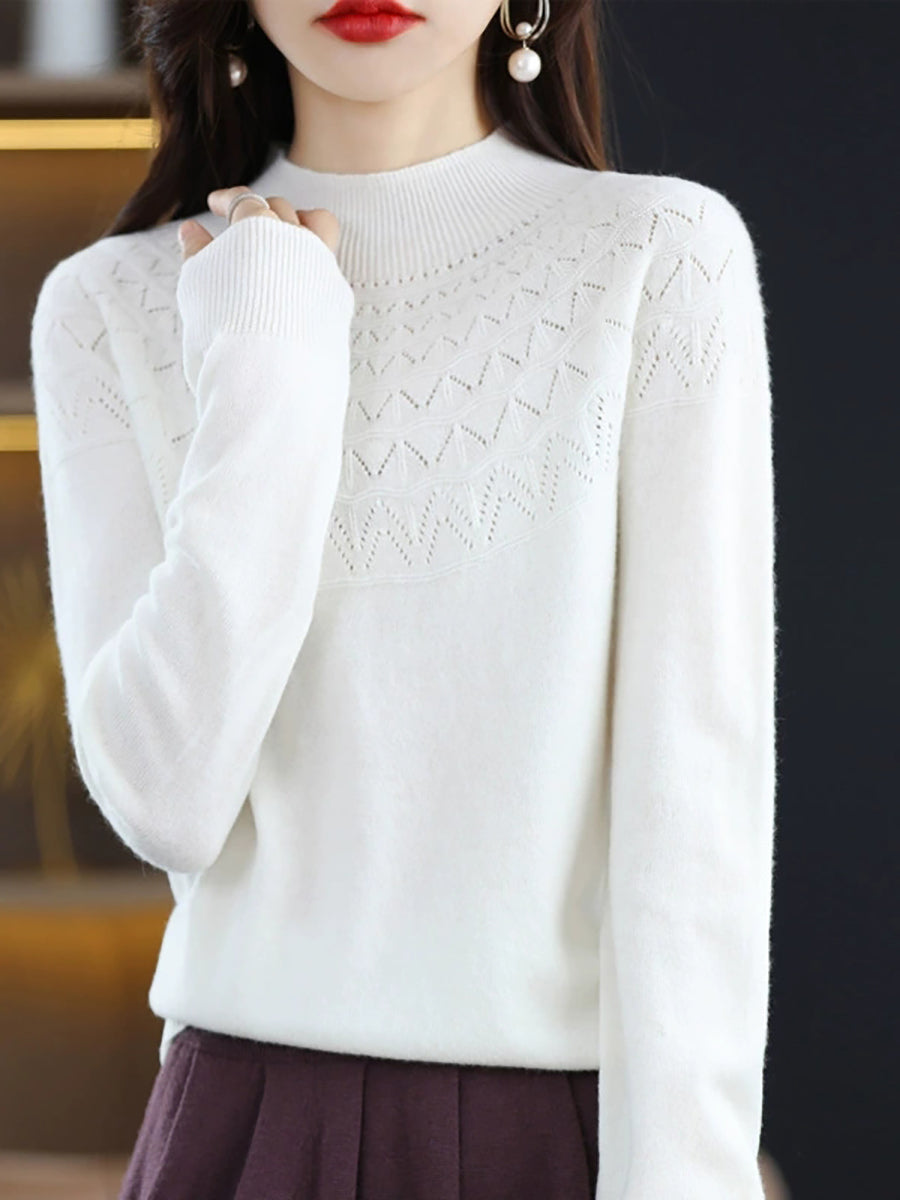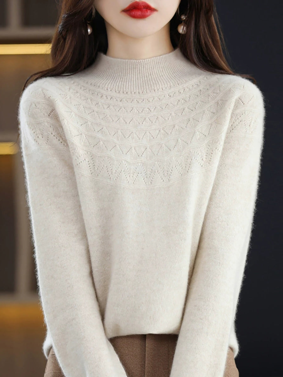 Suéter de punto con cuello alto medio artístico de otoño para mujer