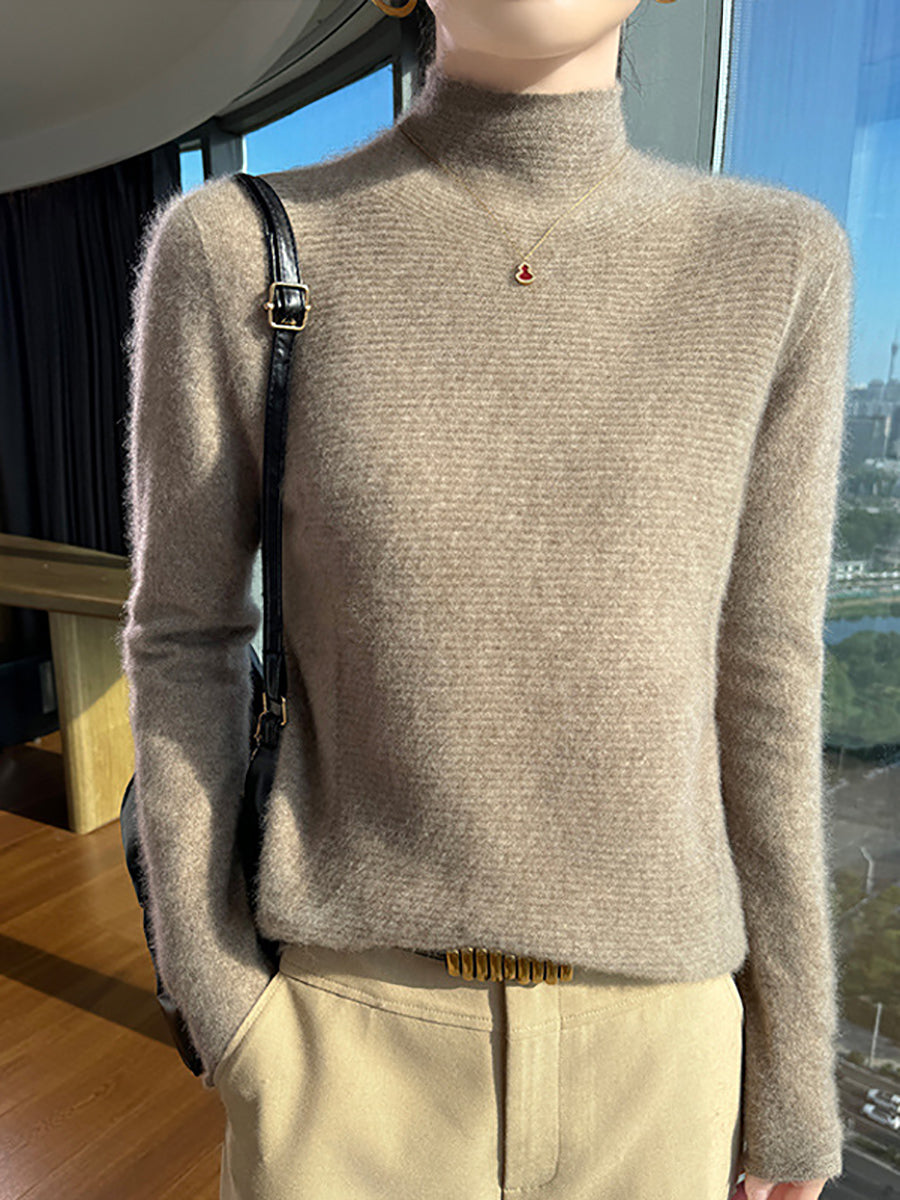 Suéter de cuello alto medio de color puro y artístico de otoño para mujer