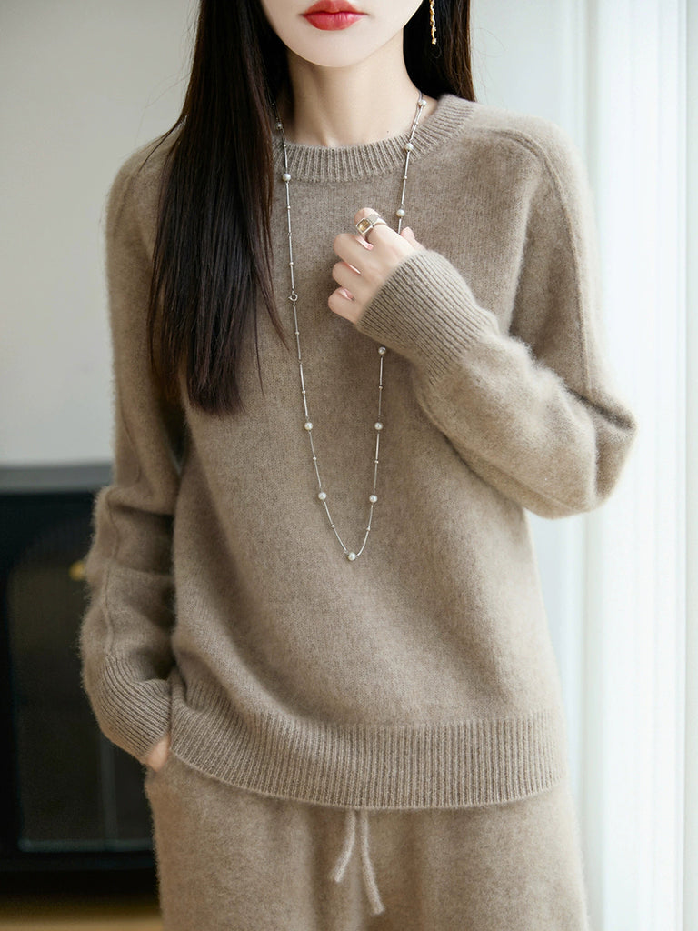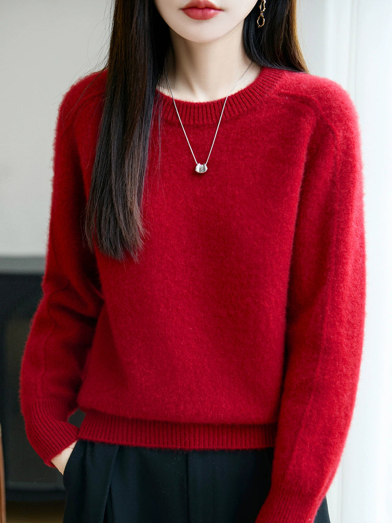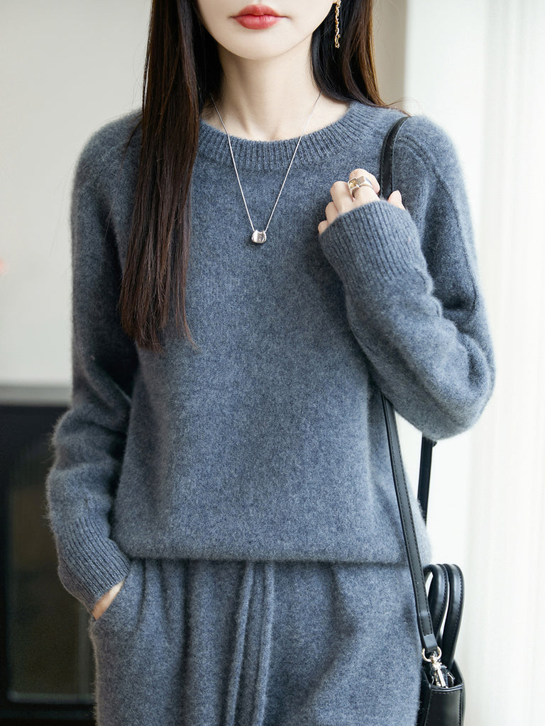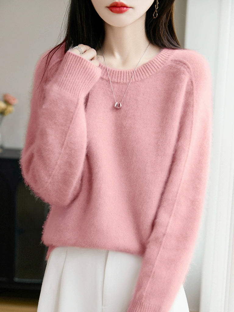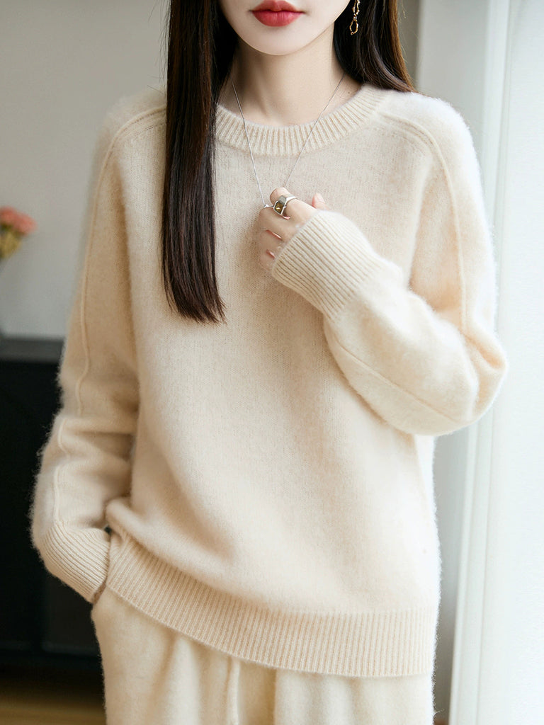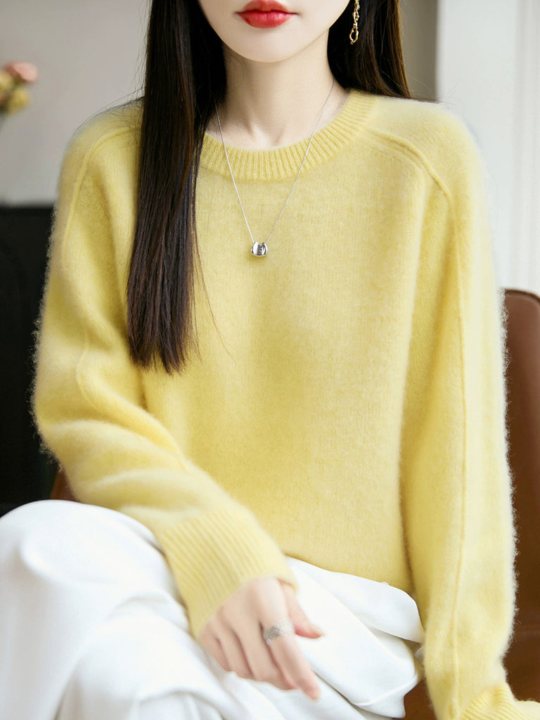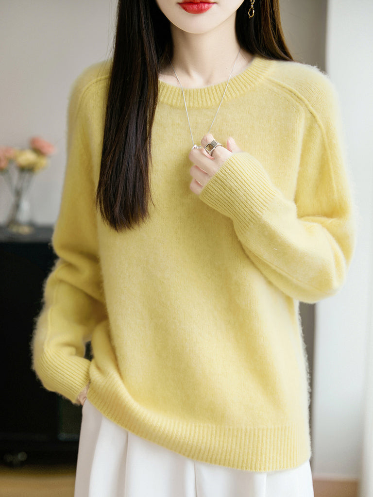 Suéter de otoño con cuello redondo y colores puros y artísticos para mujer