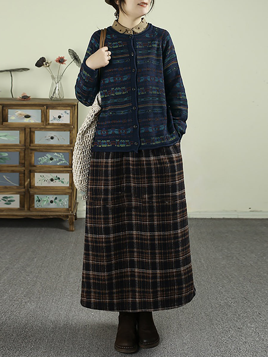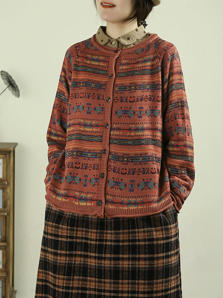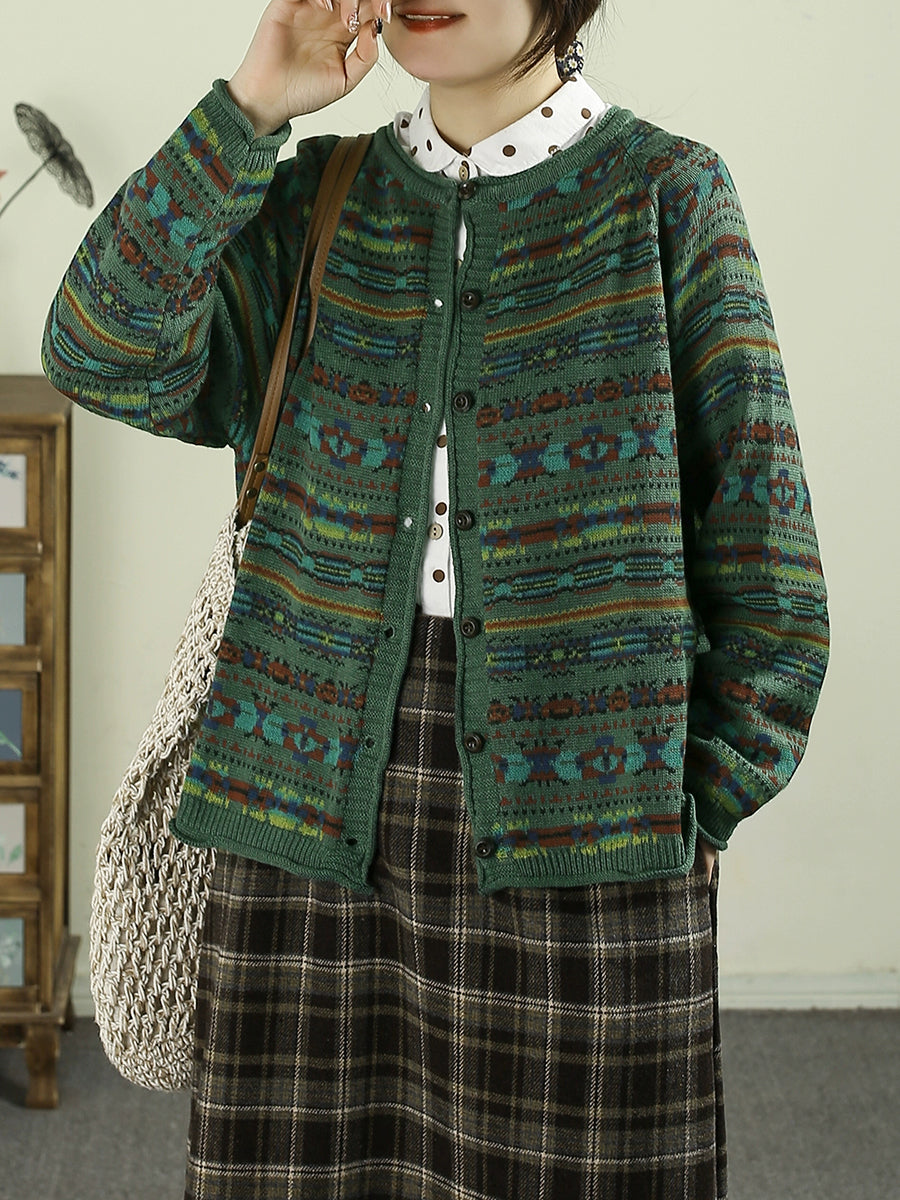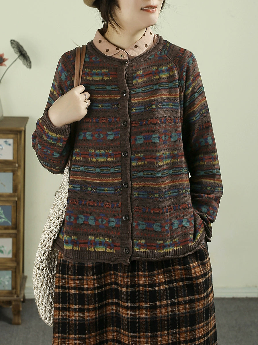 Suéter de punto con cuello redondo y rayas artísticas de otoño para mujer