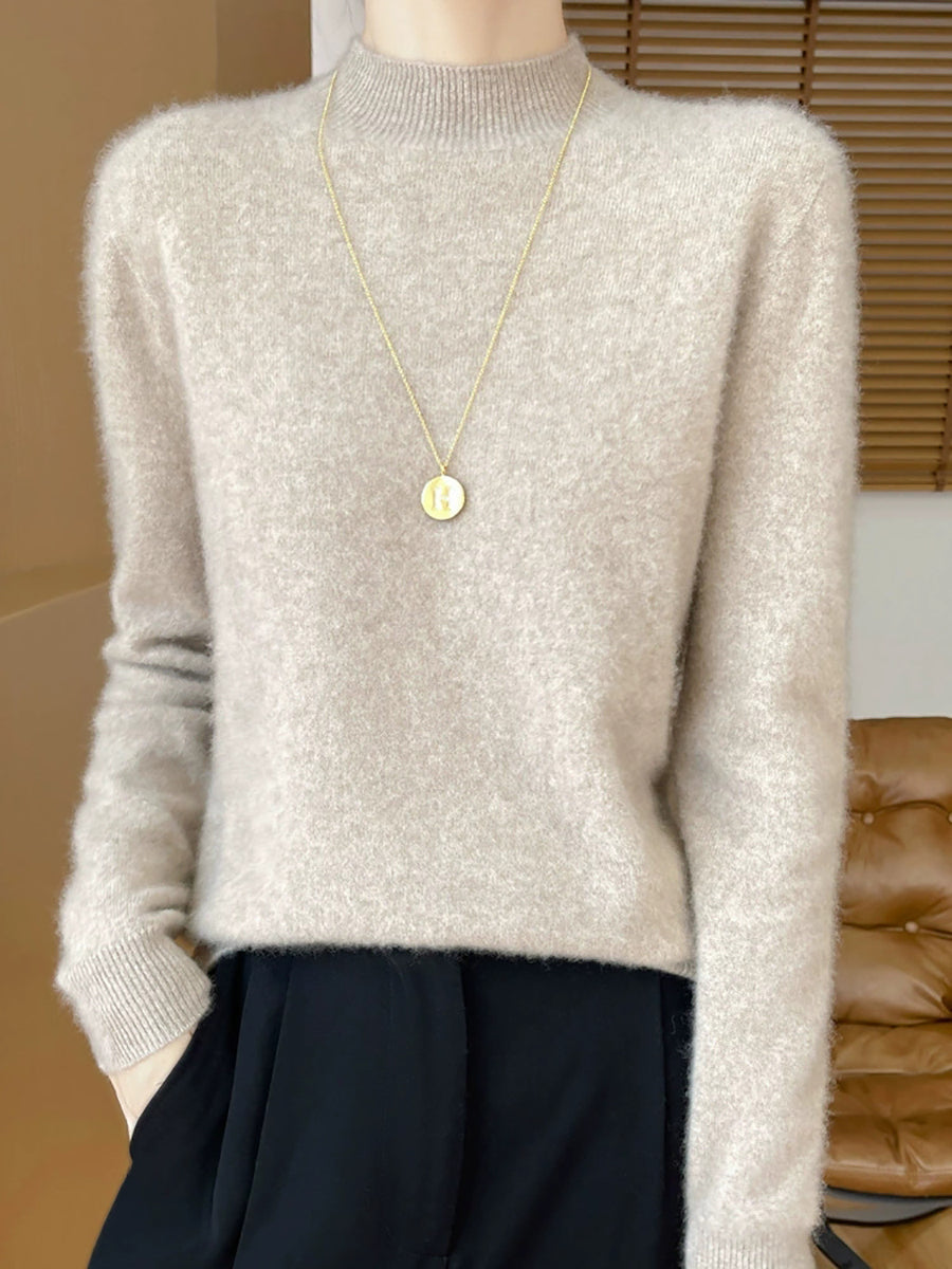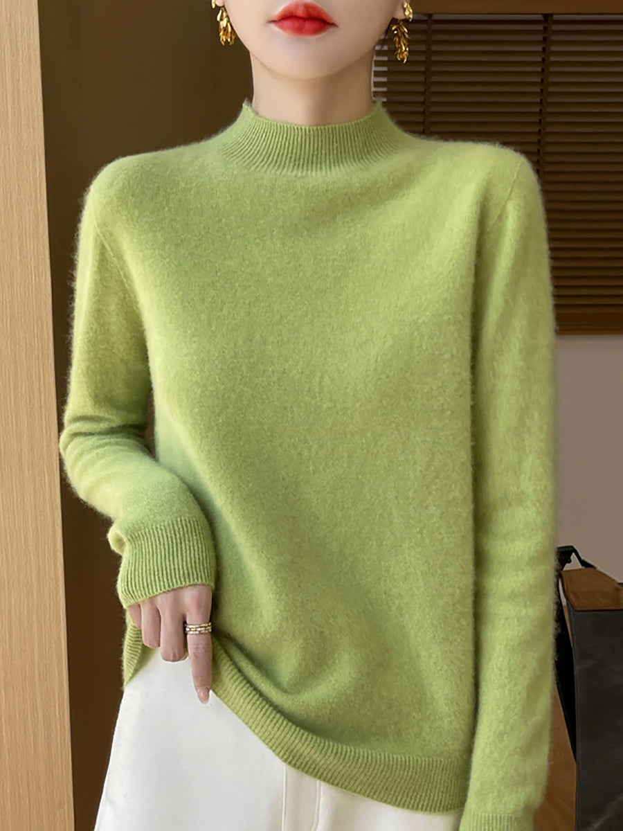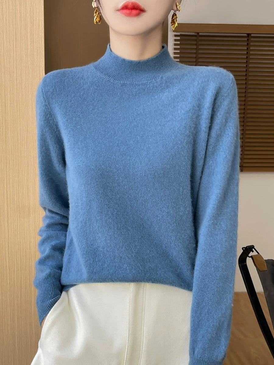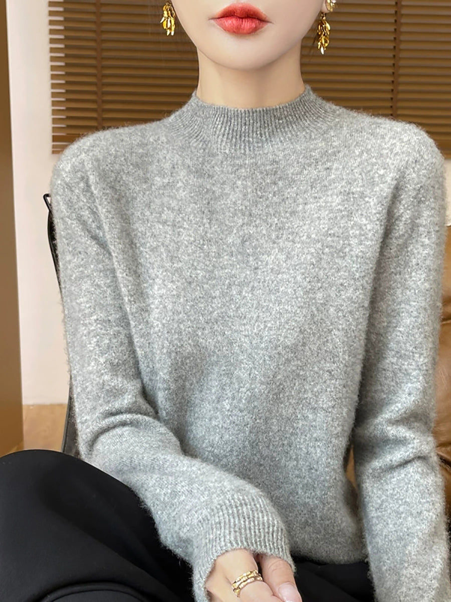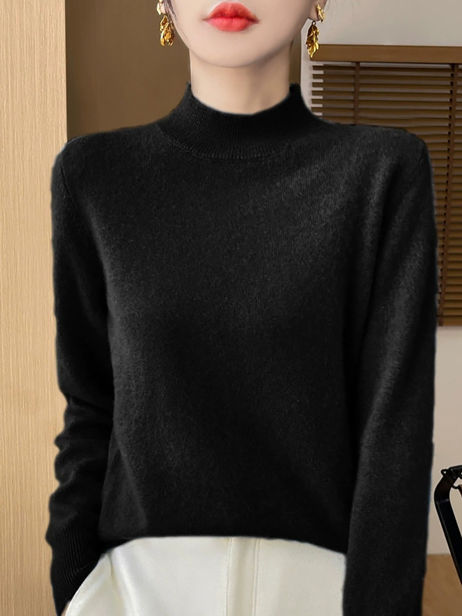 Suéter informal de otoño con cuello alto y color puro para mujer