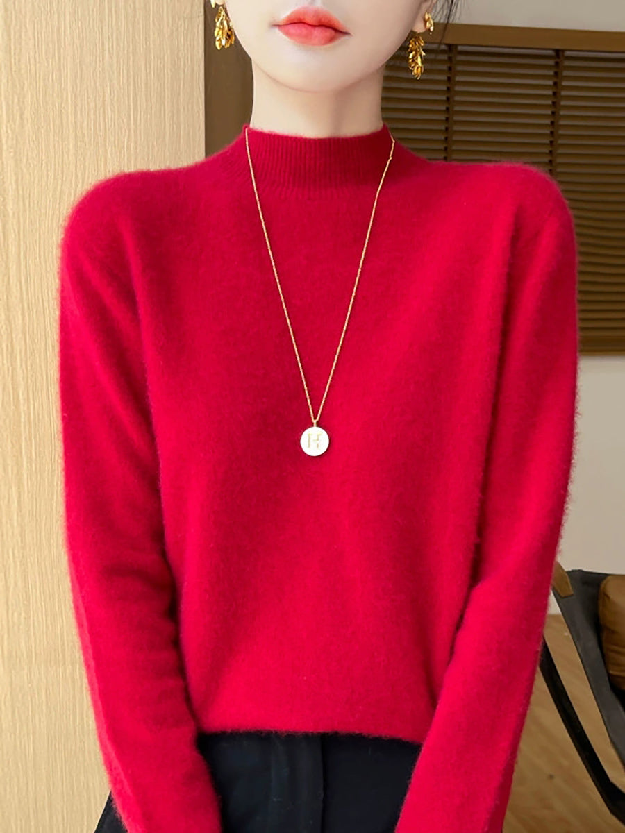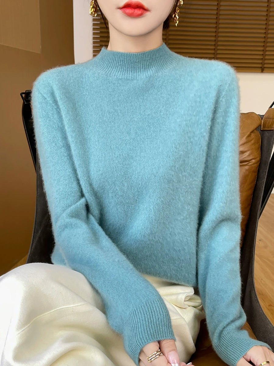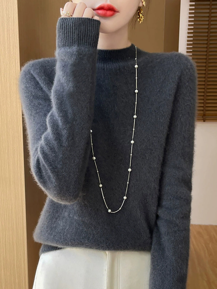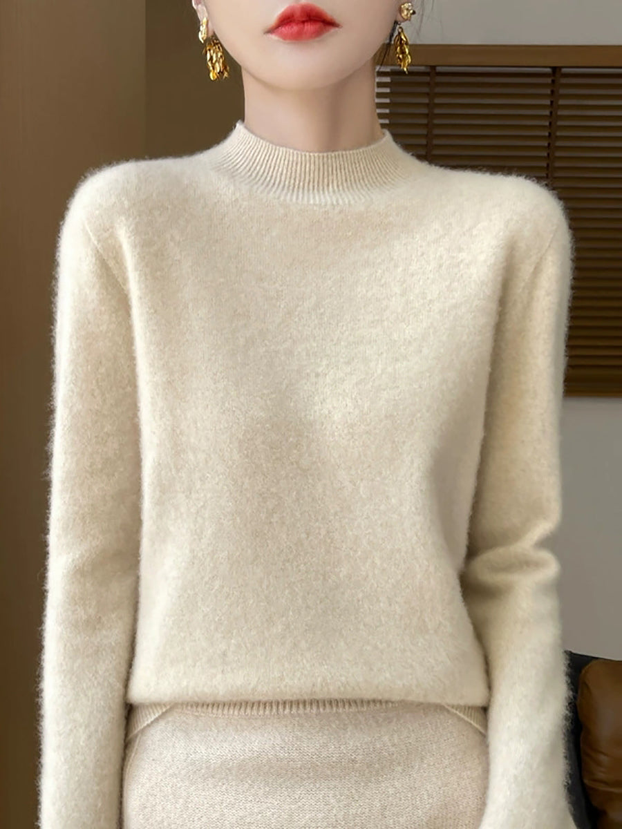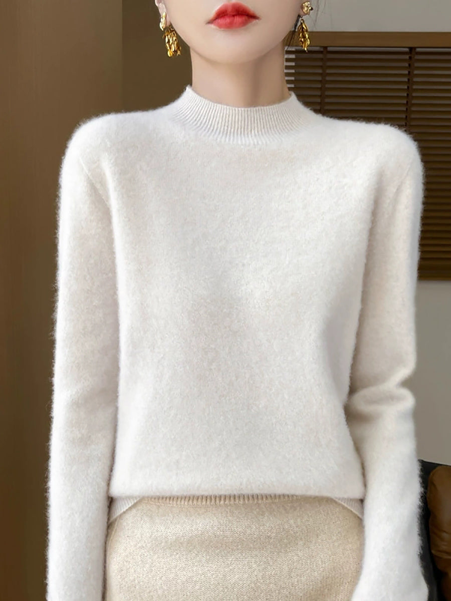 Suéter informal de otoño con cuello alto y color puro para mujer
