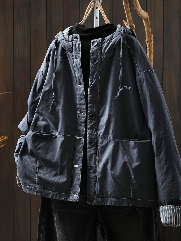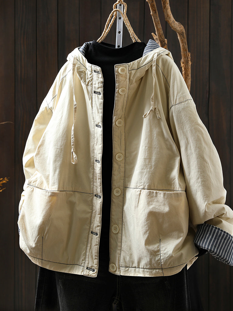 Chaqueta acolchada con capucha de color puro informal de otoño para mujer