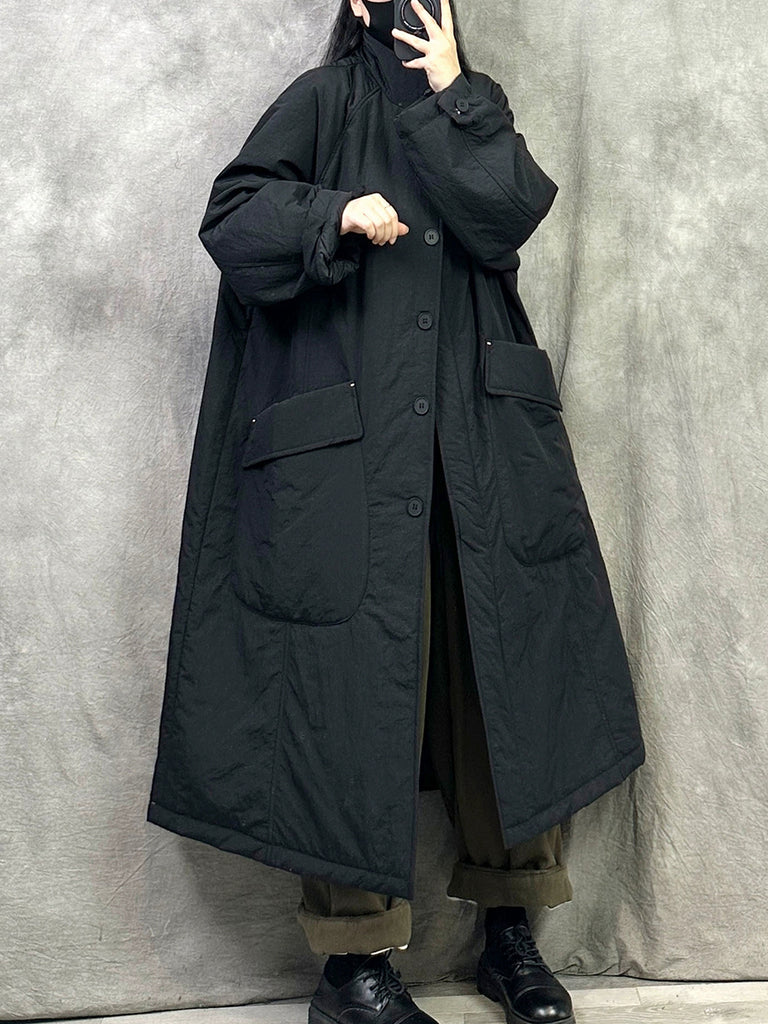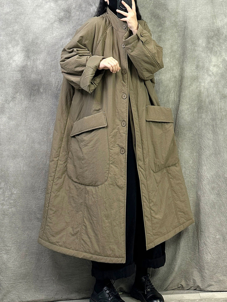 Abrigo largo informal de otoño con cuello alto de color puro para mujer