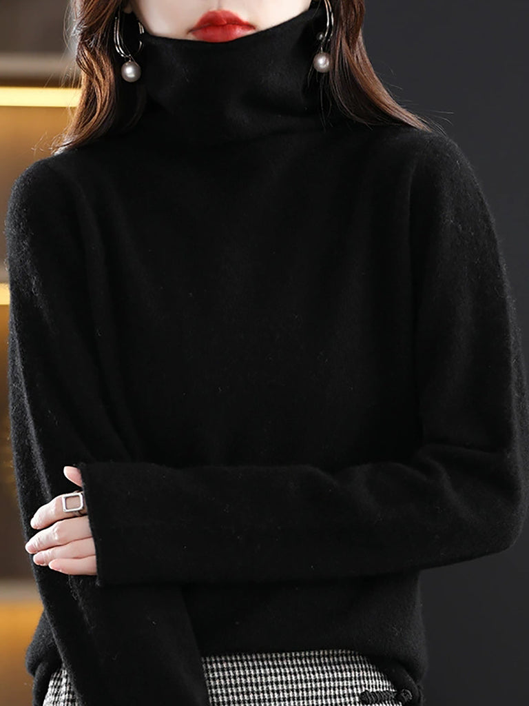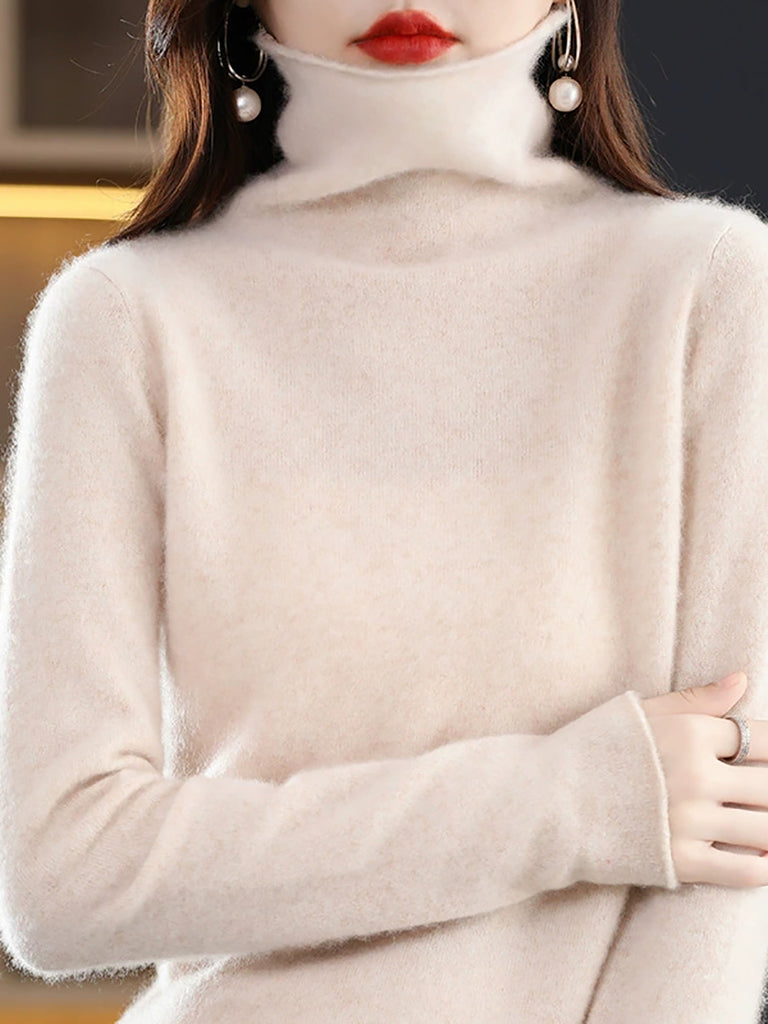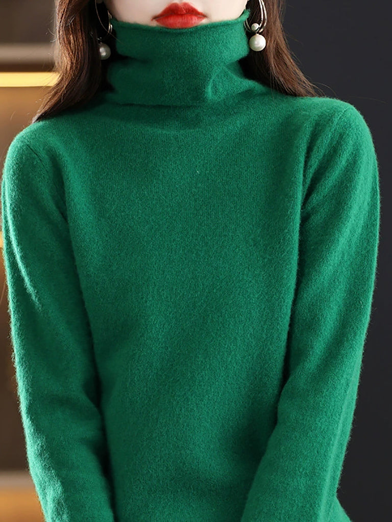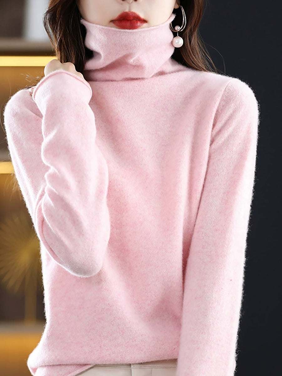 Suéter de lana de punto con cuello alto informal de otoño para mujer
