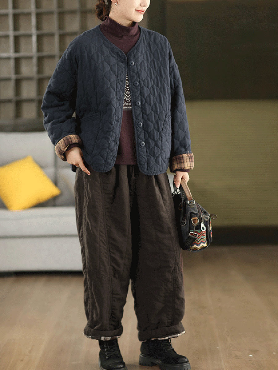 Pantalones rectos acolchados de lino 100 % de color puro para mujer de otoño