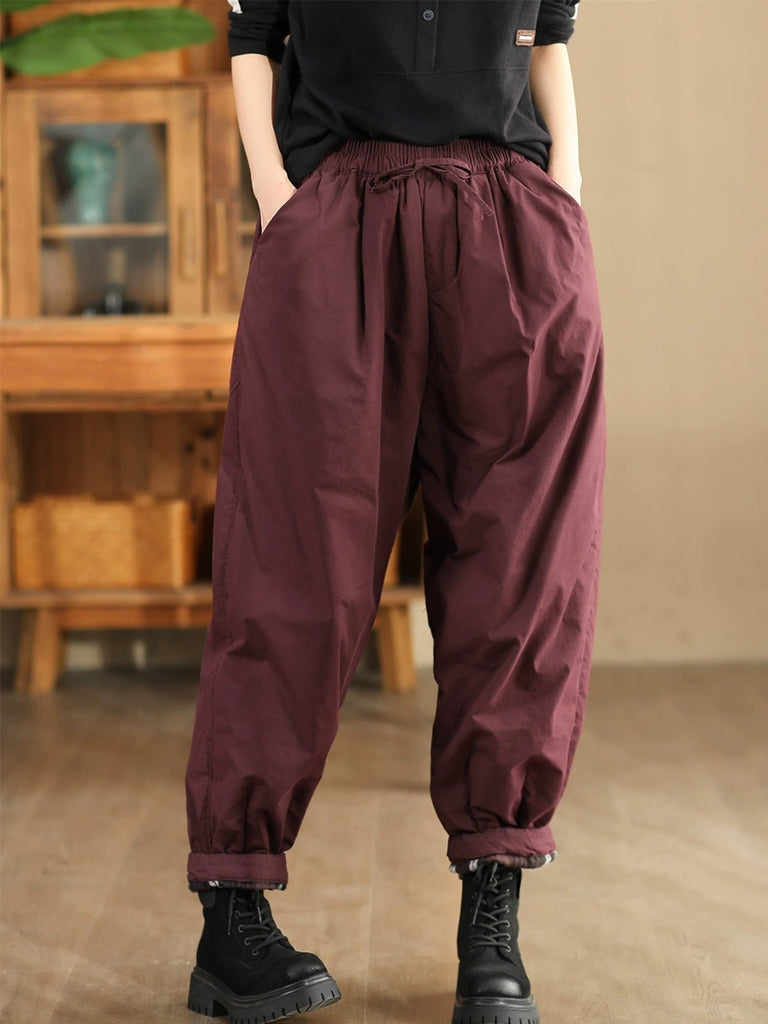 Pantalones harén acolchados de algodón de color puro de otoño para mujer