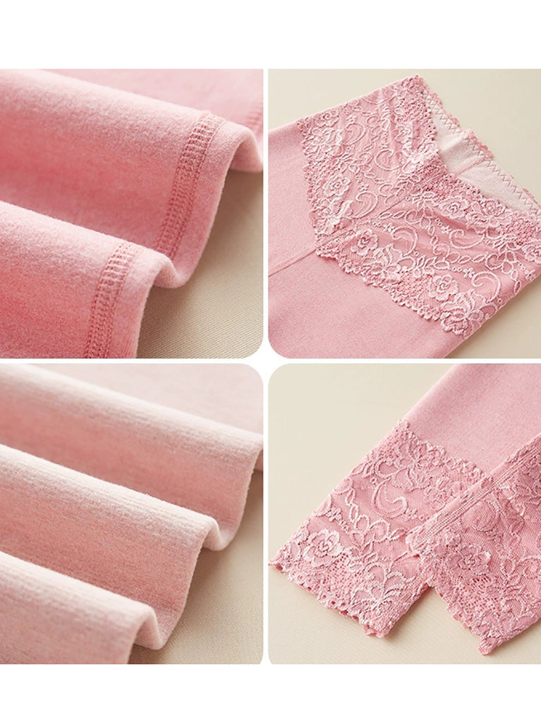 Leggings de cintura alta con encaje de color puro de otoño para mujer