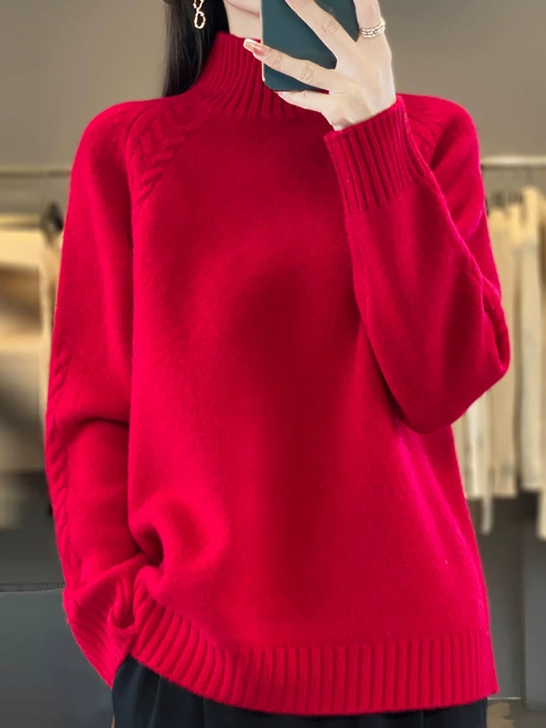 Suéter de cuello alto medio de lana de color puro para mujer de otoño