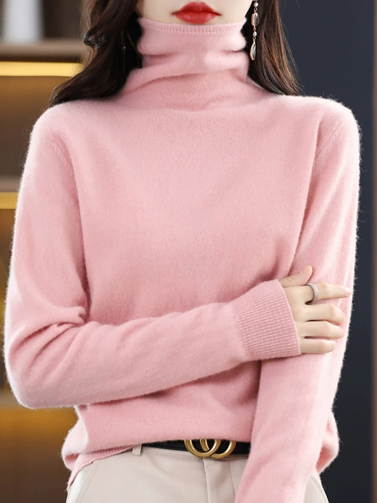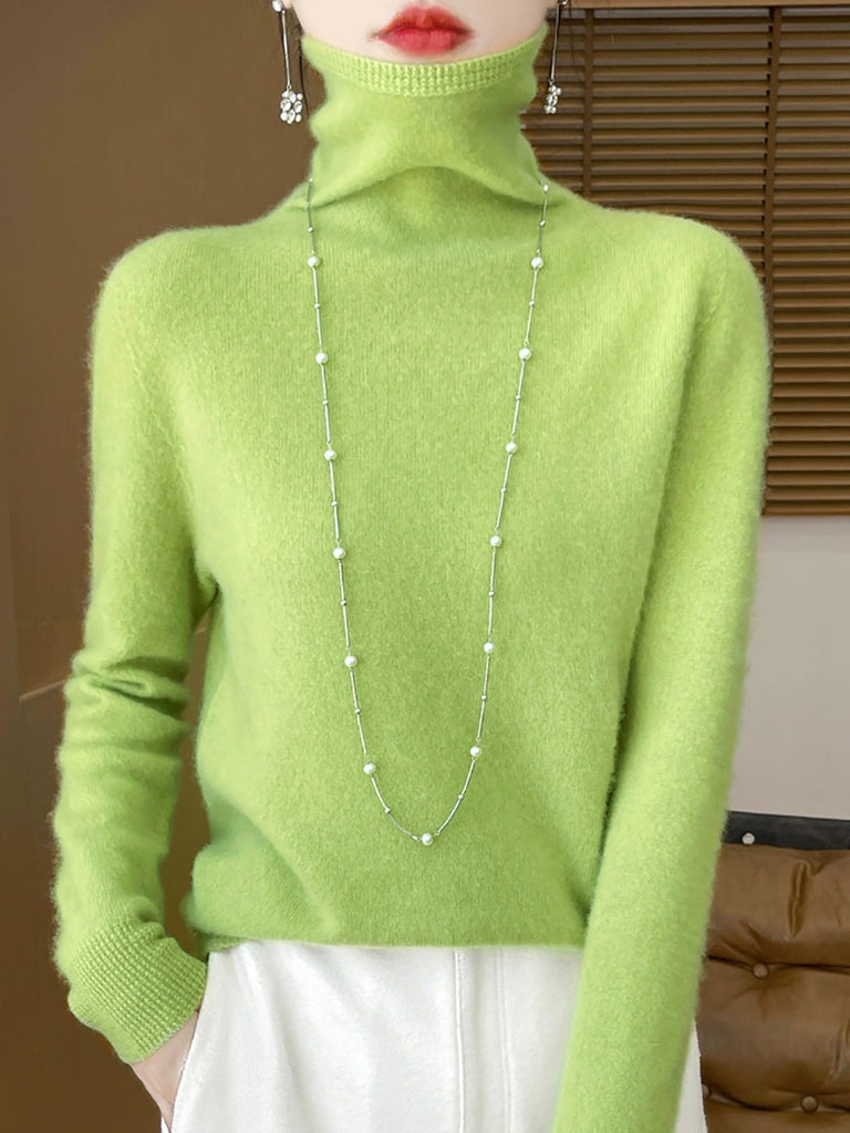 Suéter de cuello alto de lana de color puro de otoño para mujer