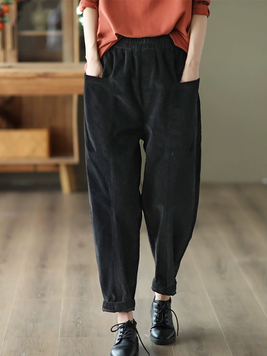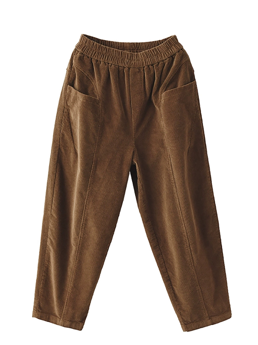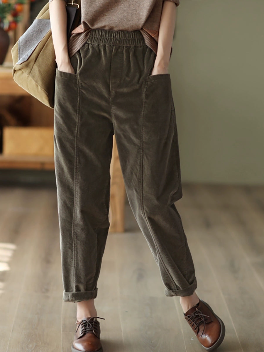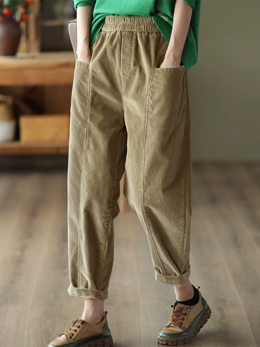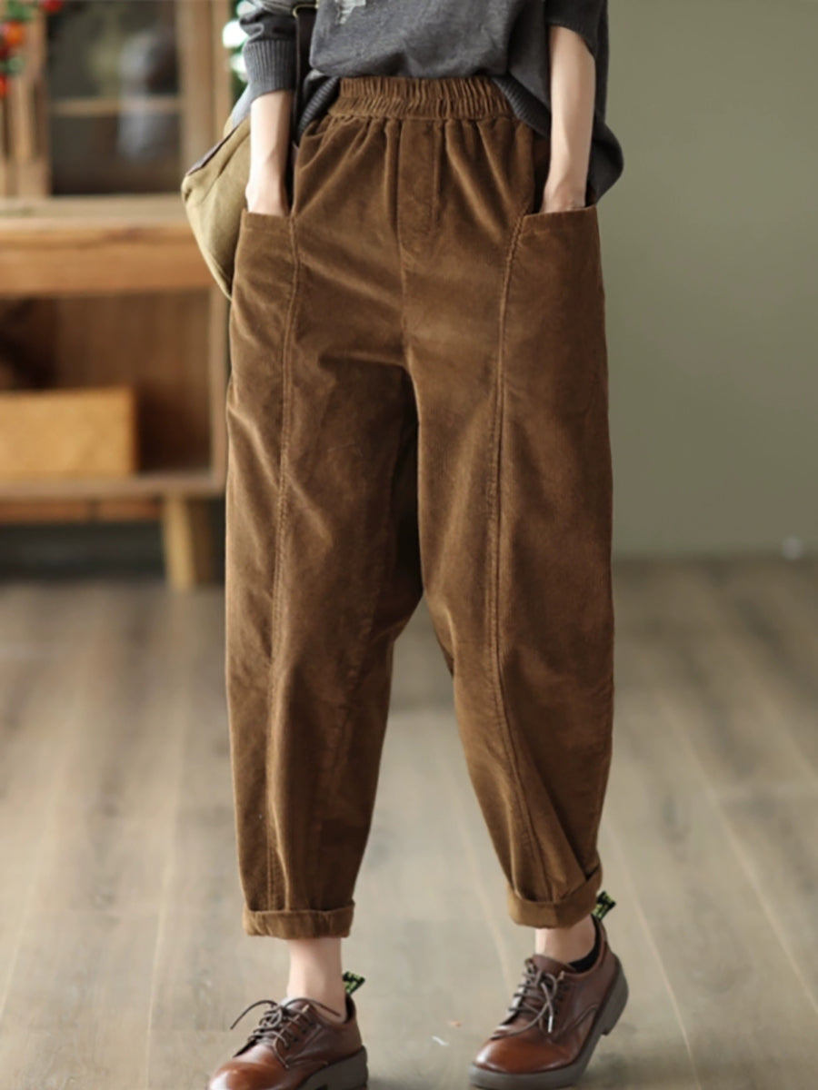 Pantalones harén de pana de color puro retro de otoño para mujer