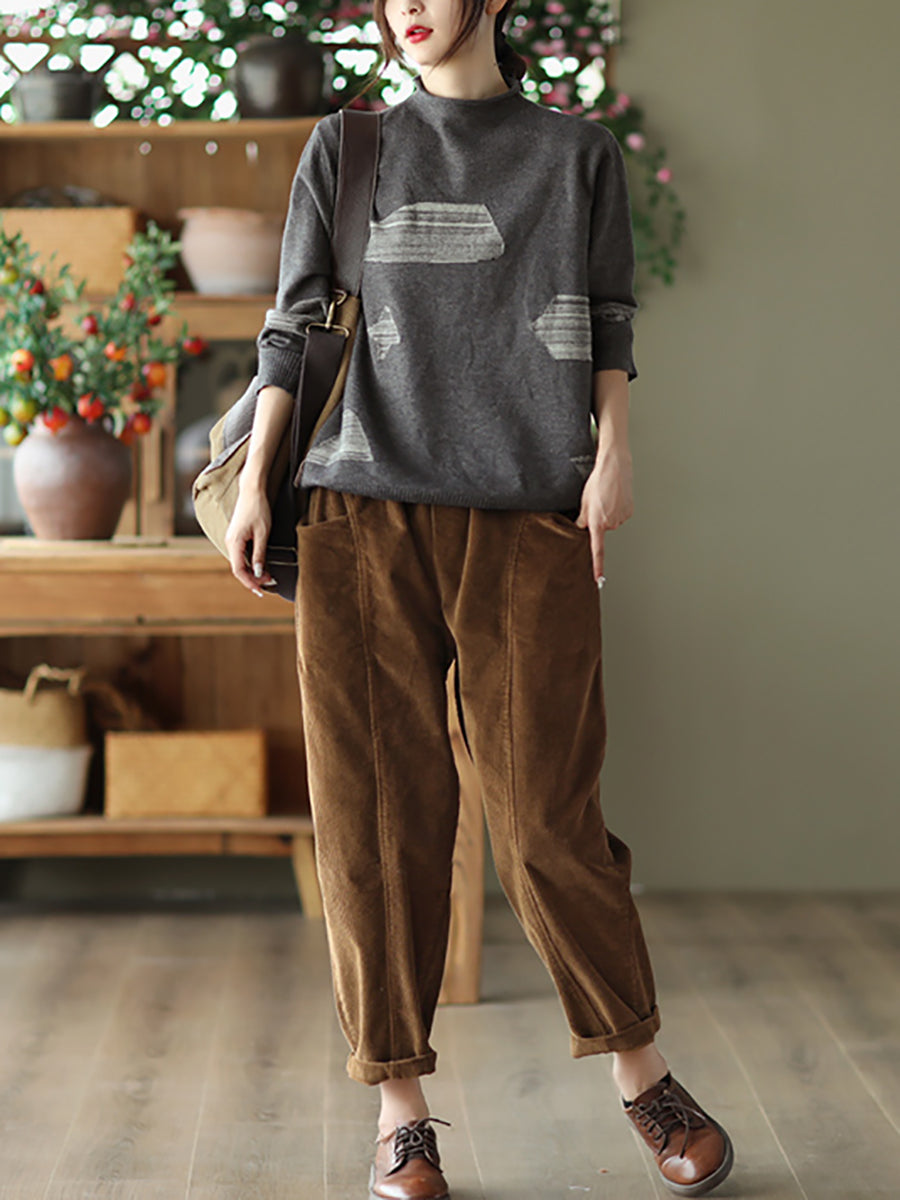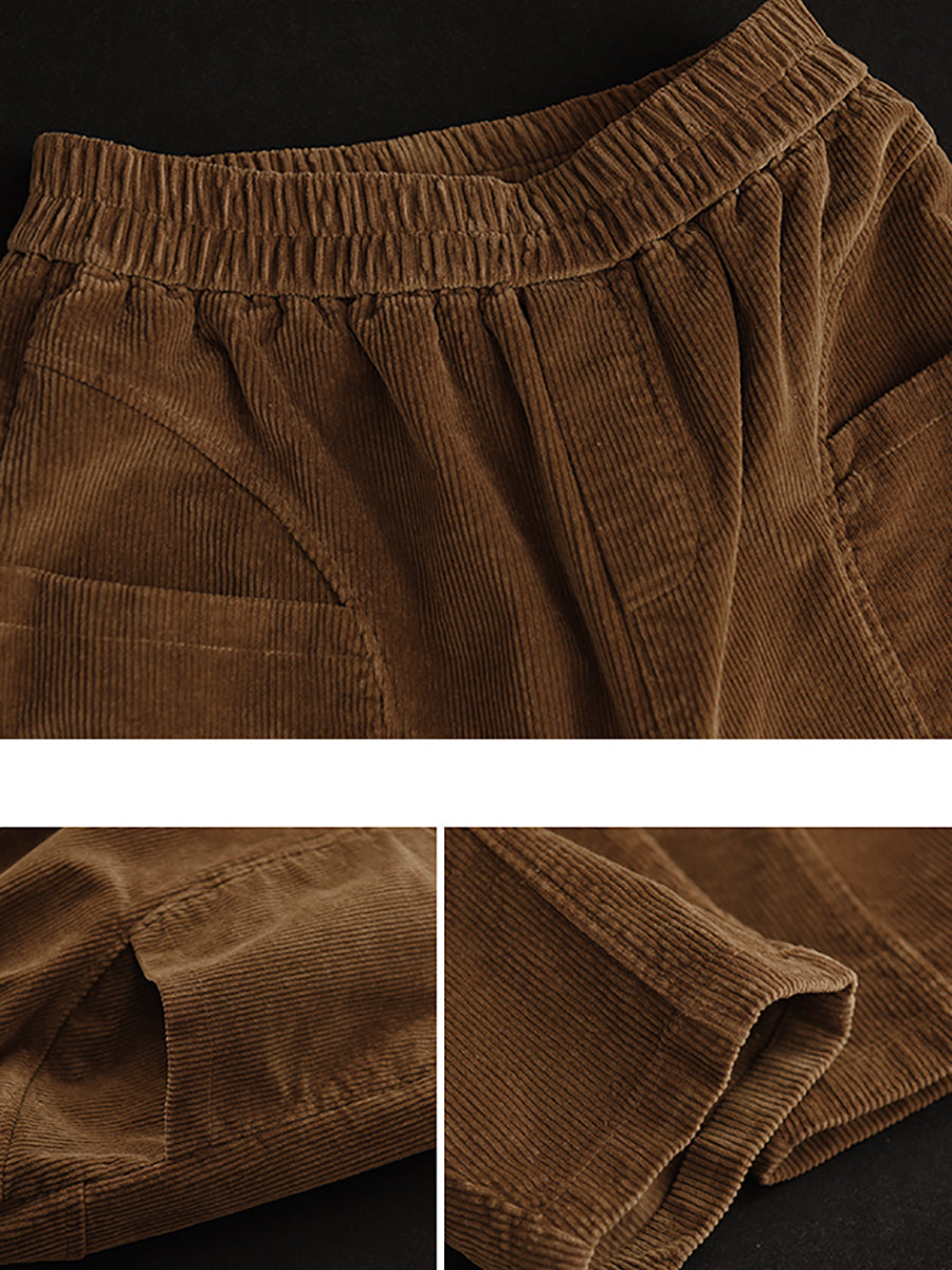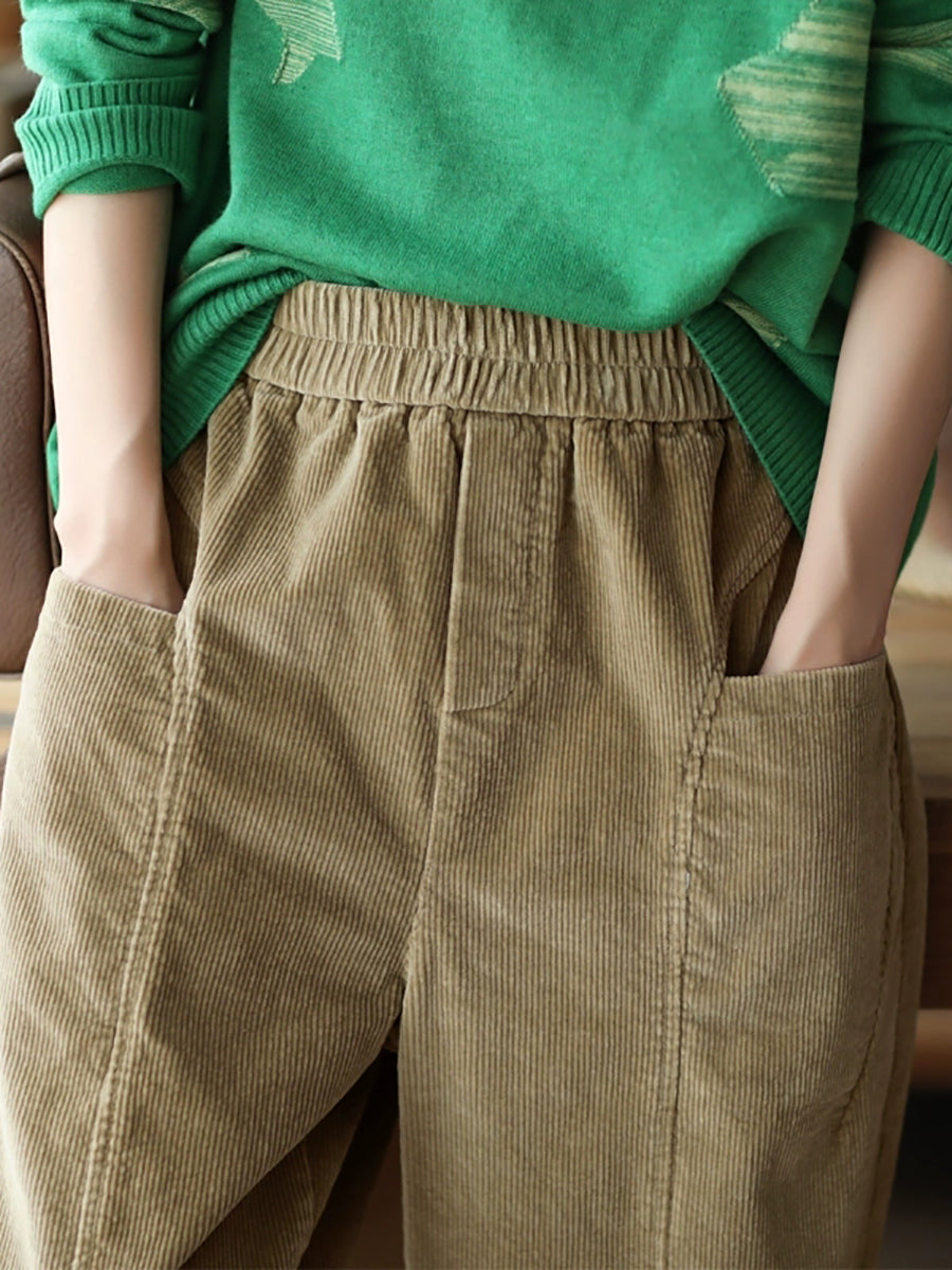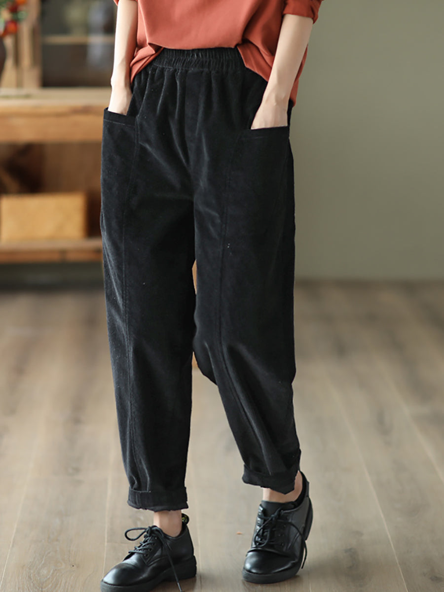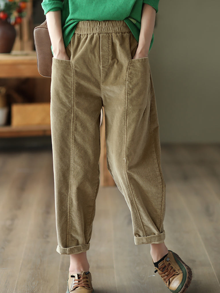 Pantalones harén de pana de color puro retro de otoño para mujer