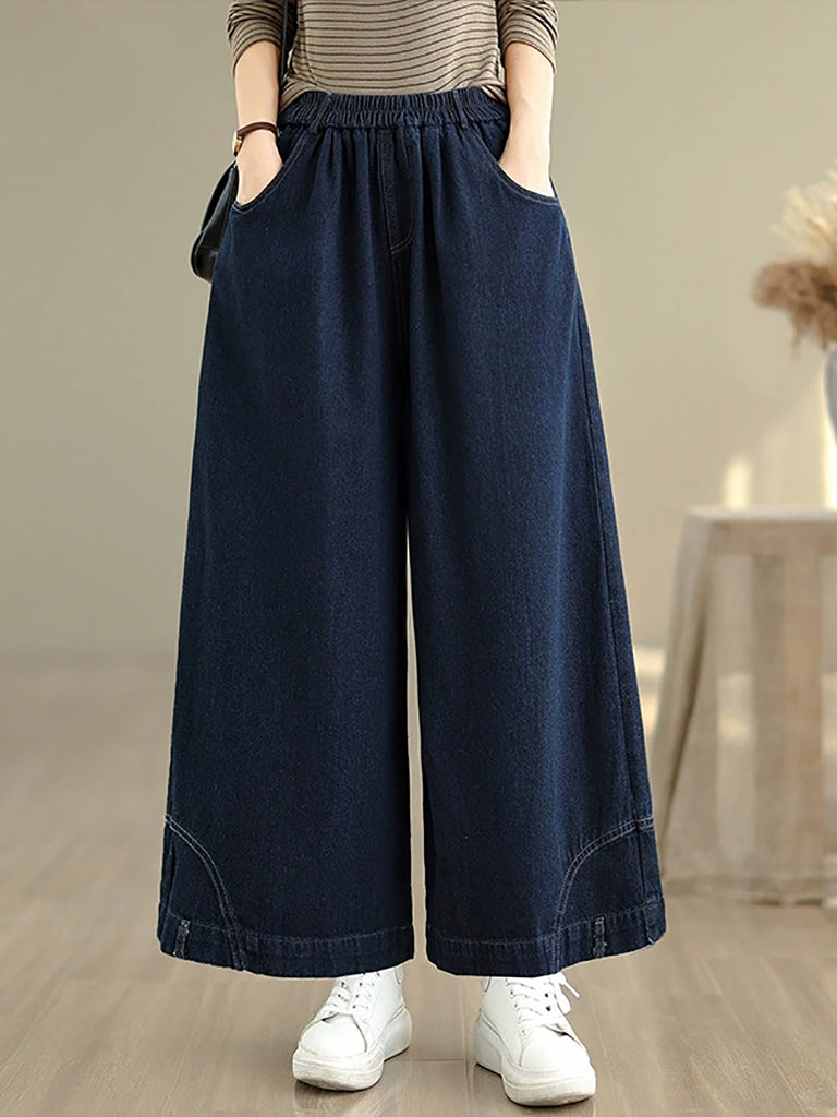 Pantalones anchos de mezclilla lavados retro de otoño para mujer
