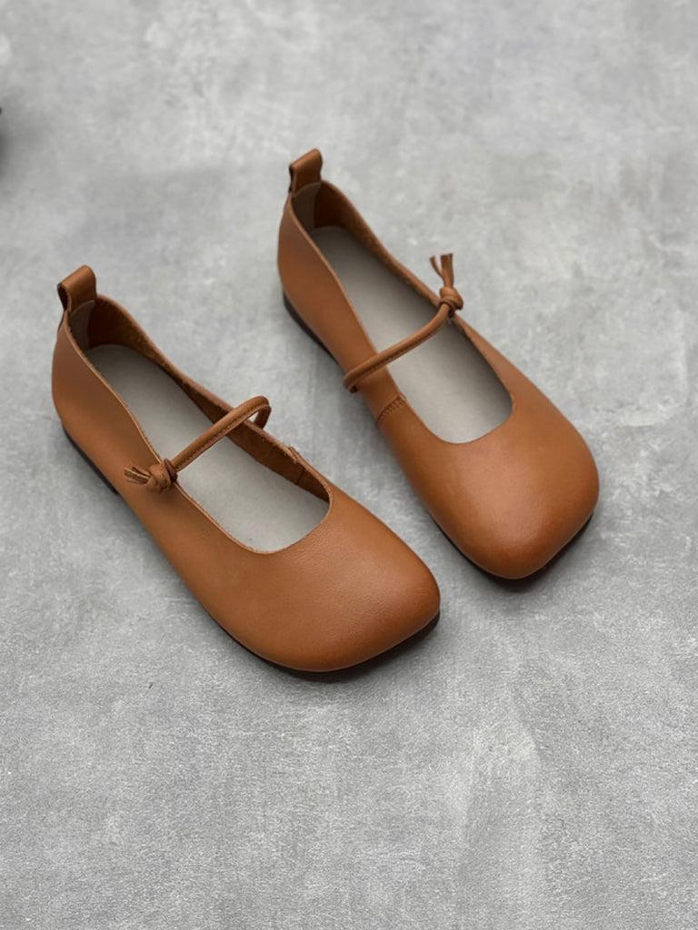 Zapatos casuales de cuero liso para mujer con punta cuadrada y primavera