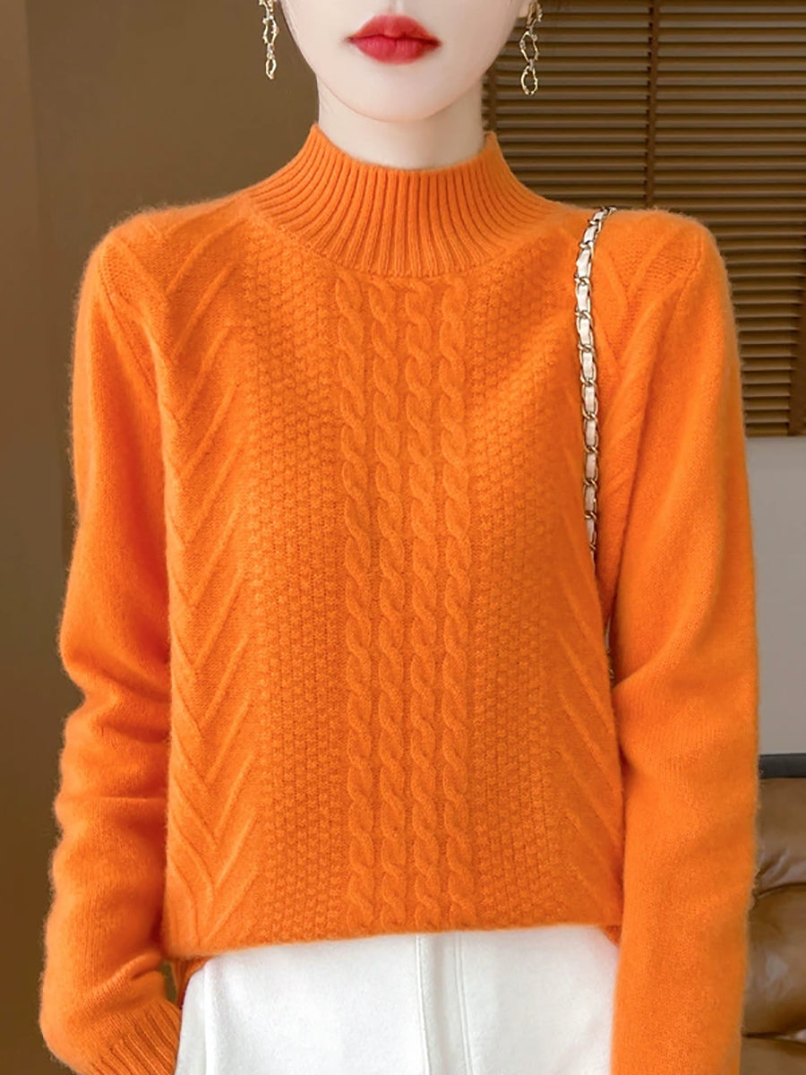 Suéter informal de punto trenzado con cuello alto para mujer, primavera