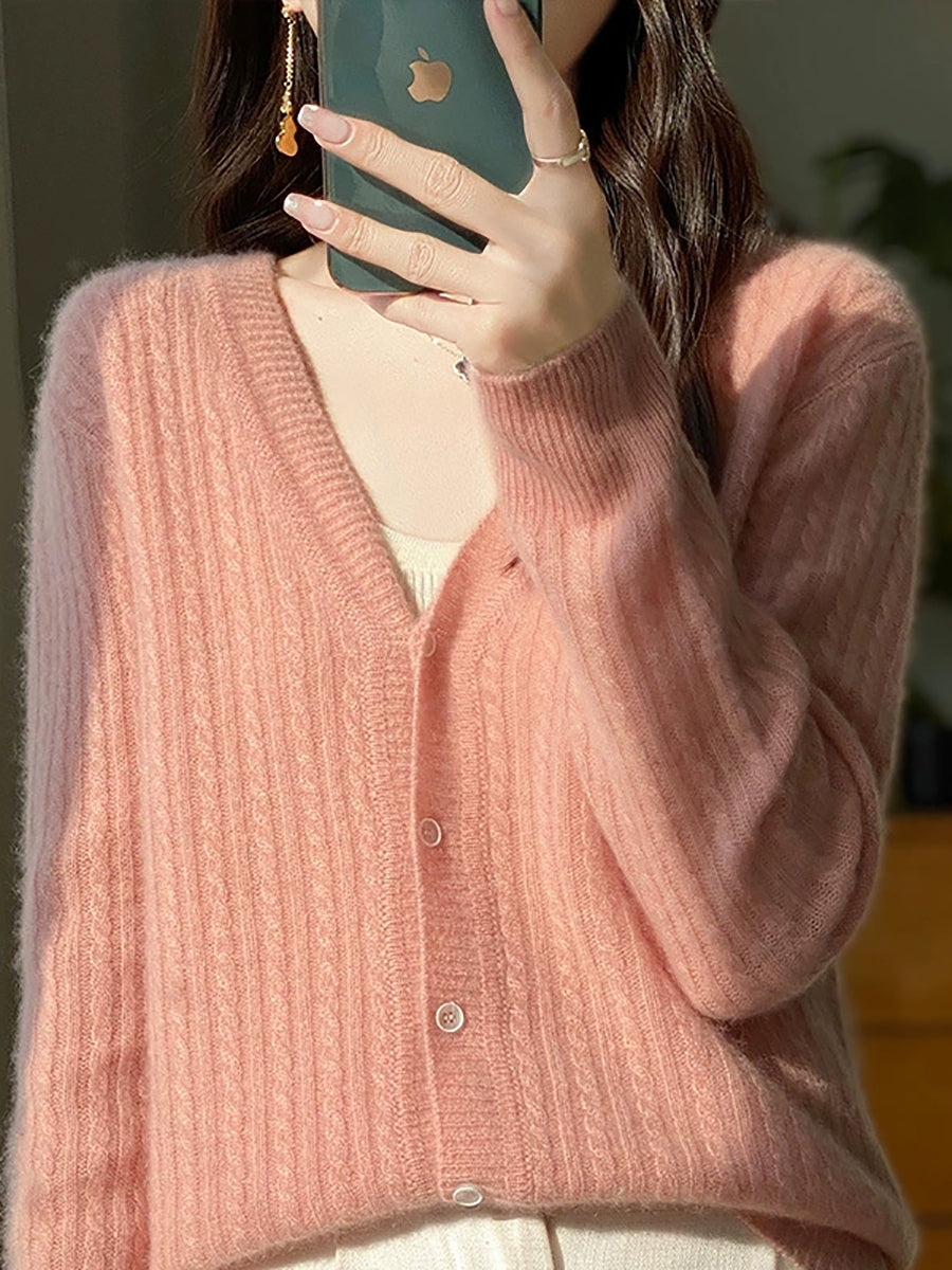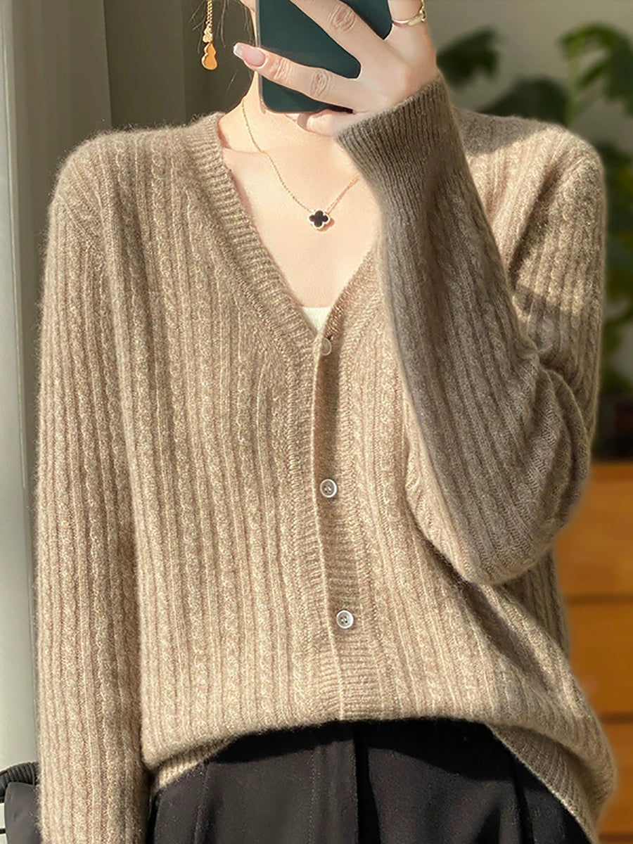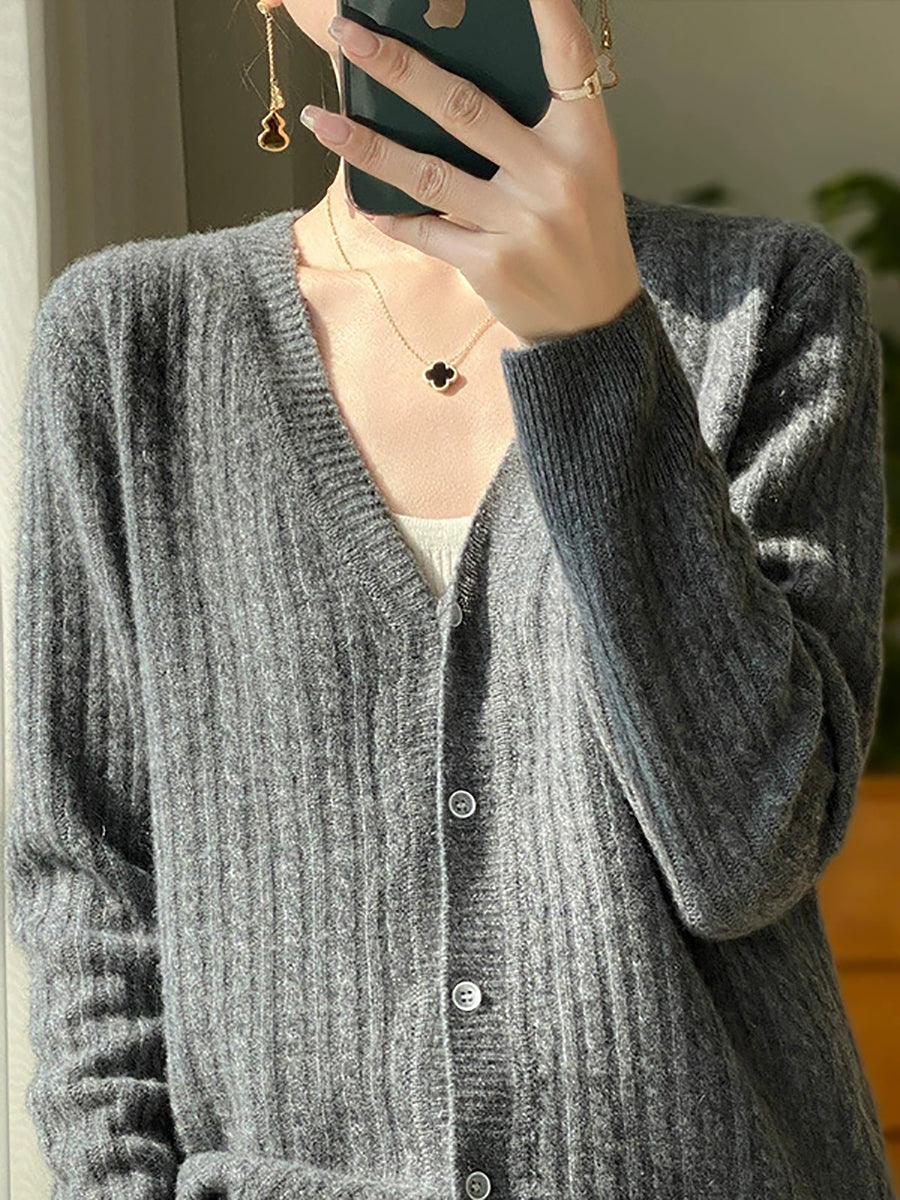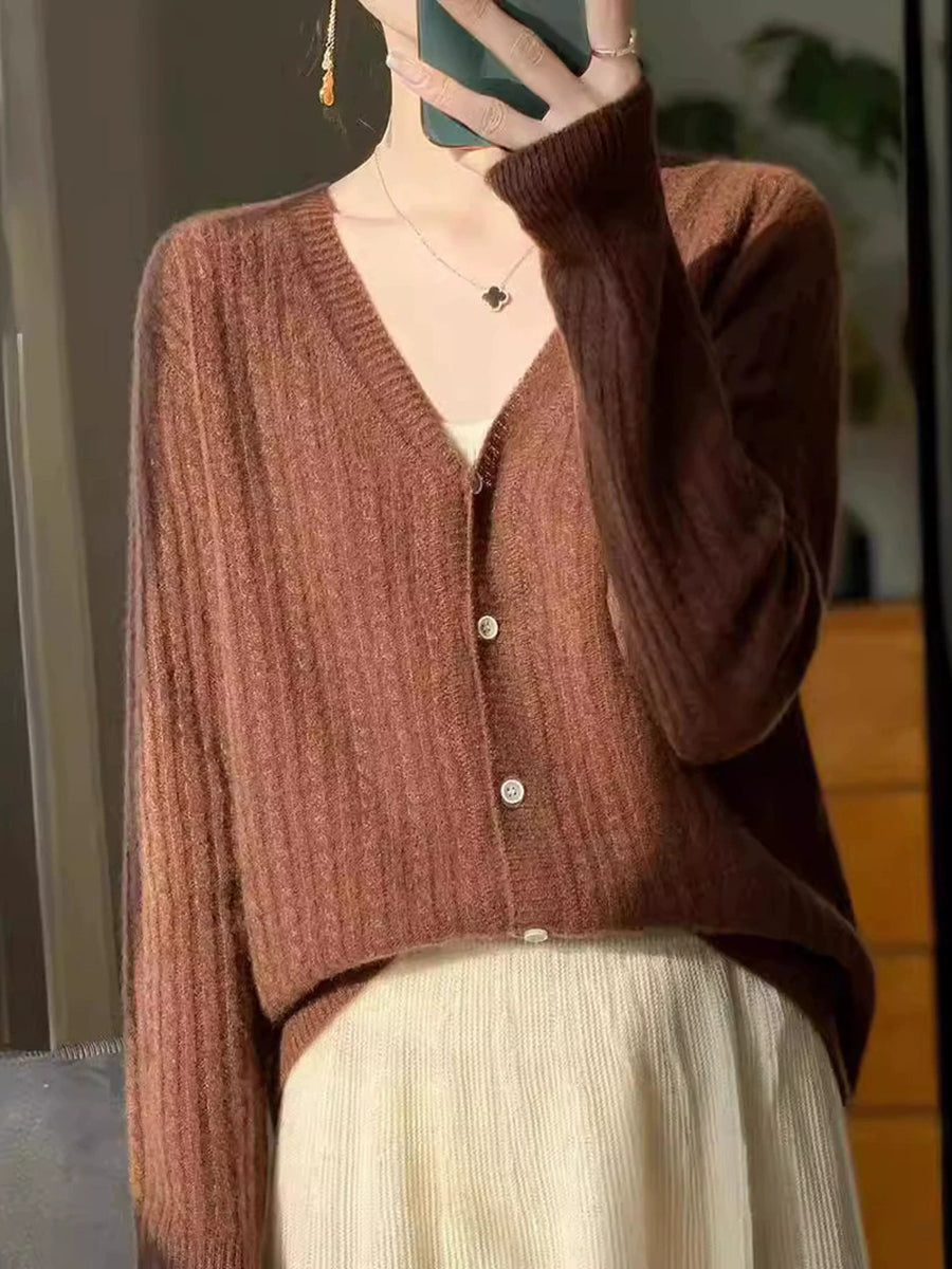 Suéter casual de primavera con cuello en V y color puro para mujer