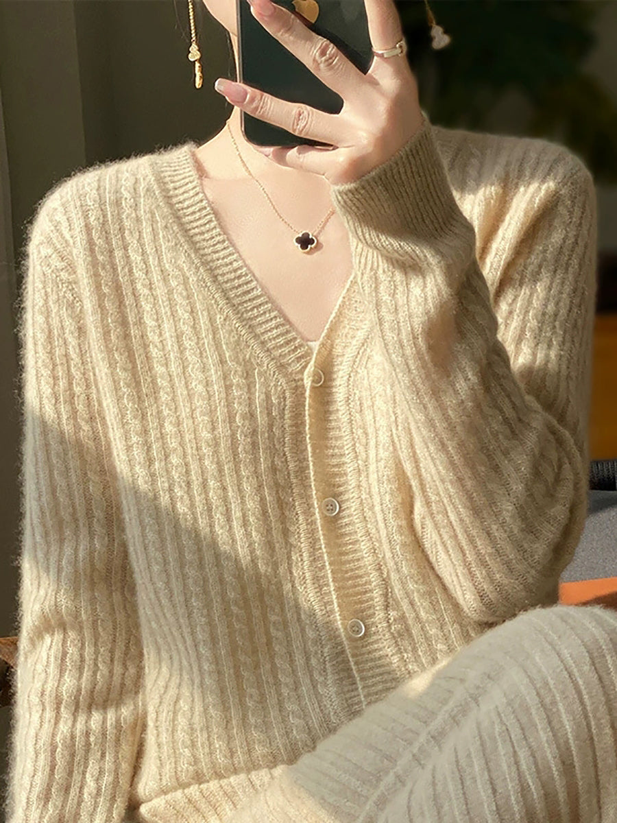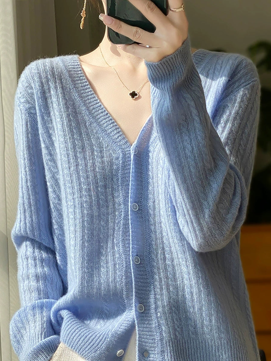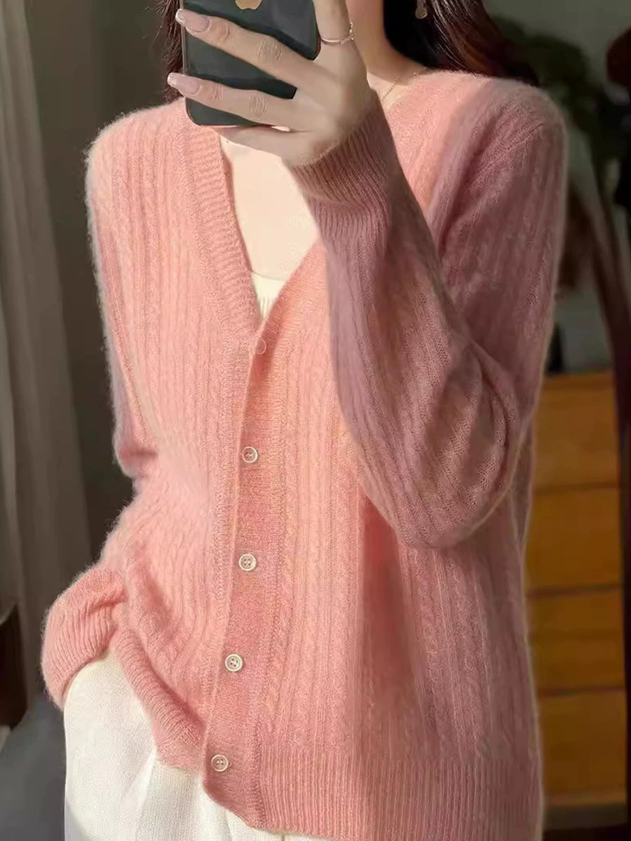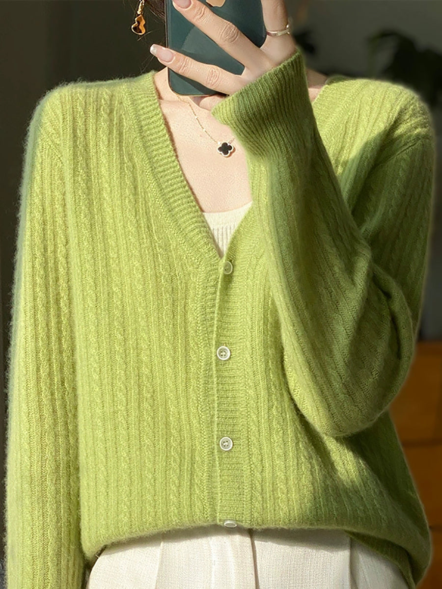 Suéter casual de primavera con cuello en V y color puro para mujer