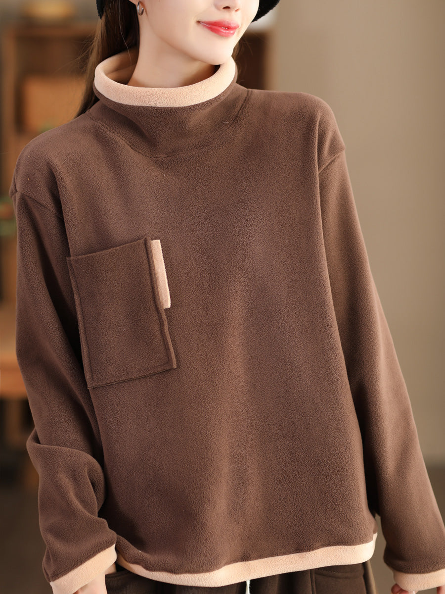 Sudadera de lana con cuello alto empalmada de invierno informal para mujer