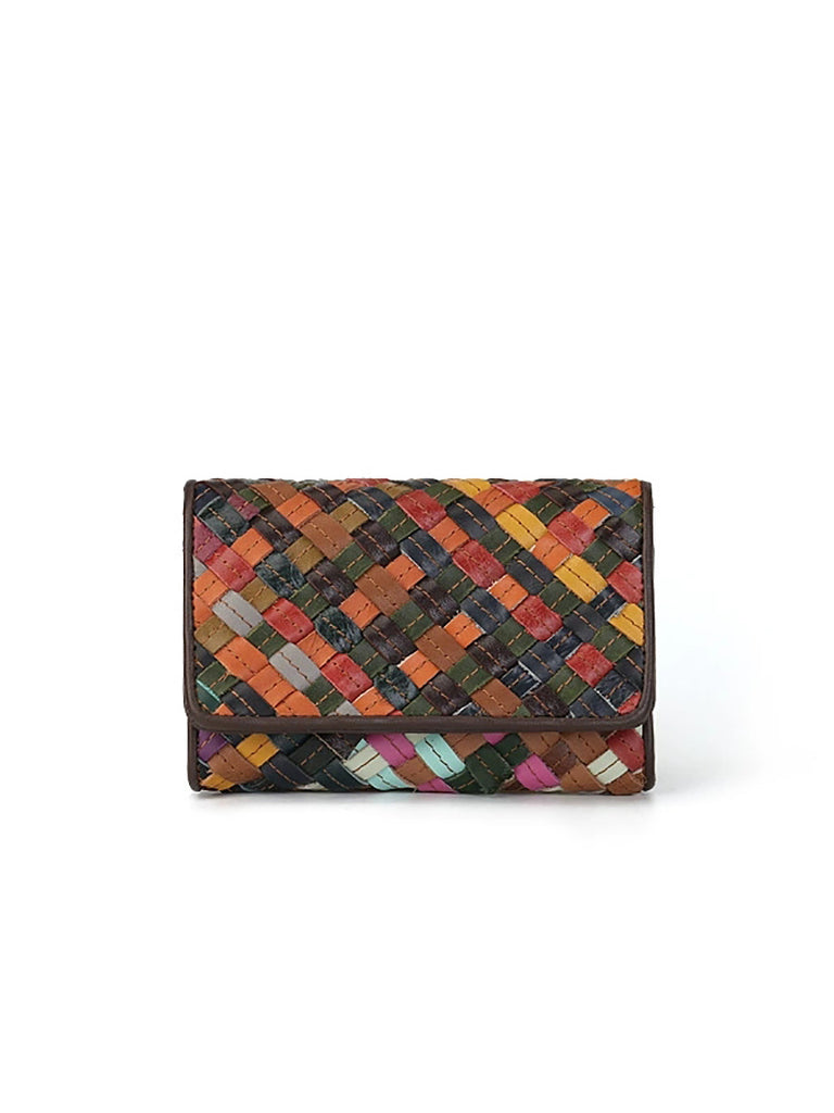 Cartera multifunción de cuero tejido de colores para mujer