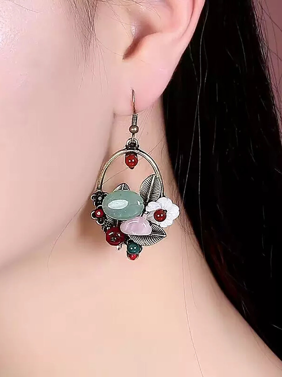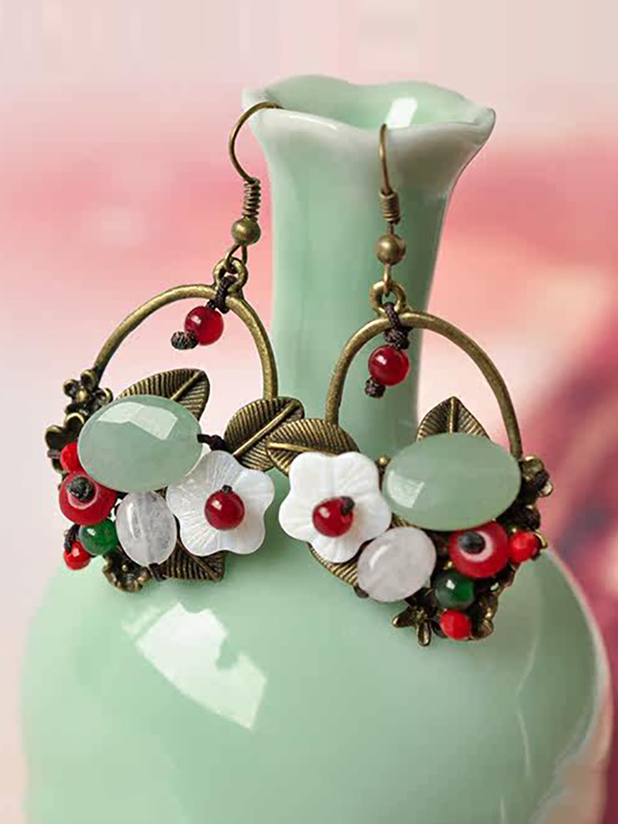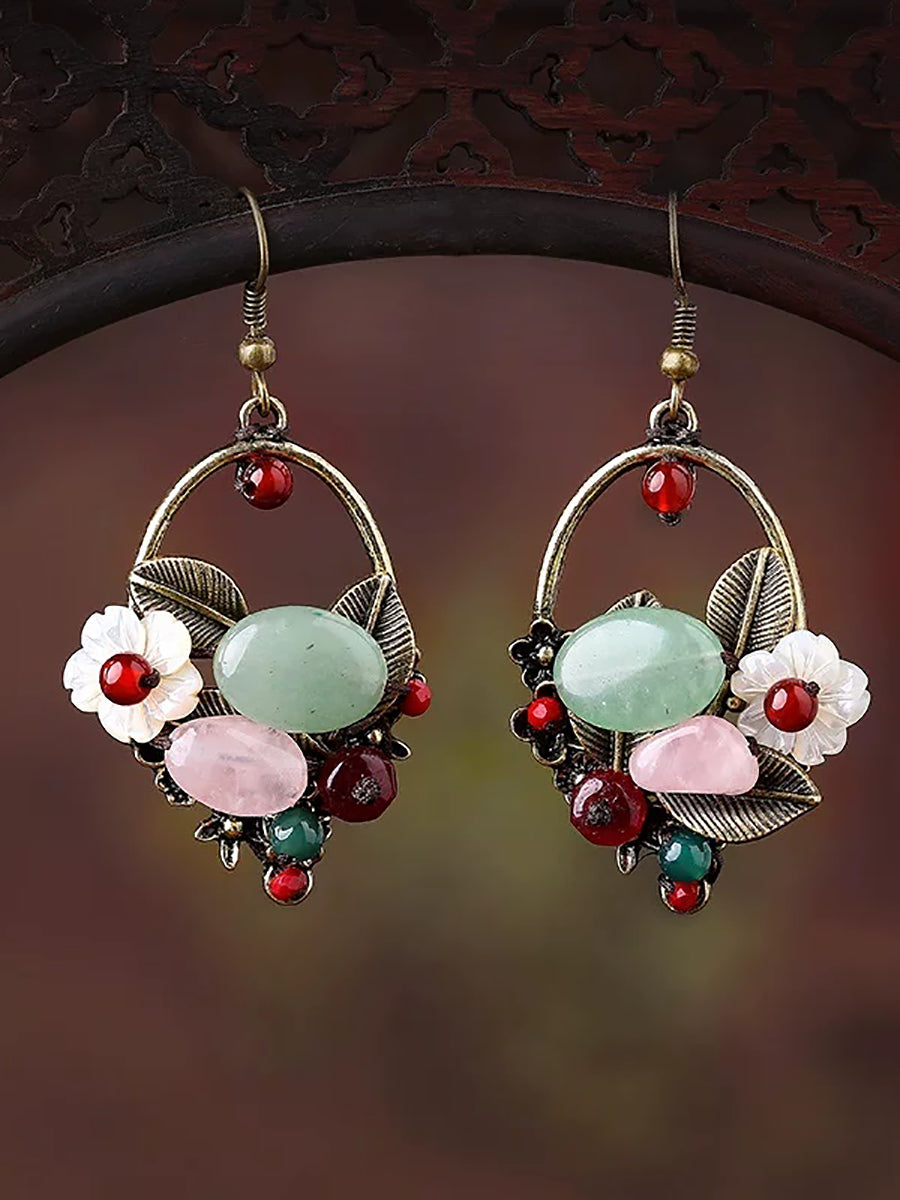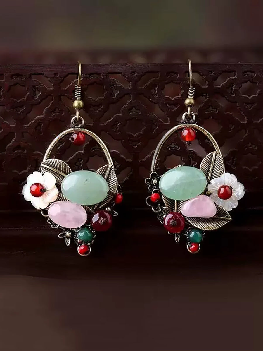 Pendientes étnicos de concha de aleación de jade para mujer
