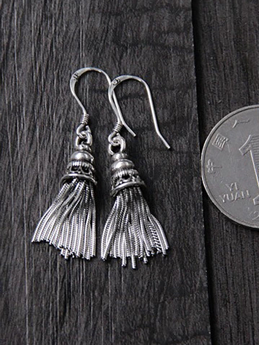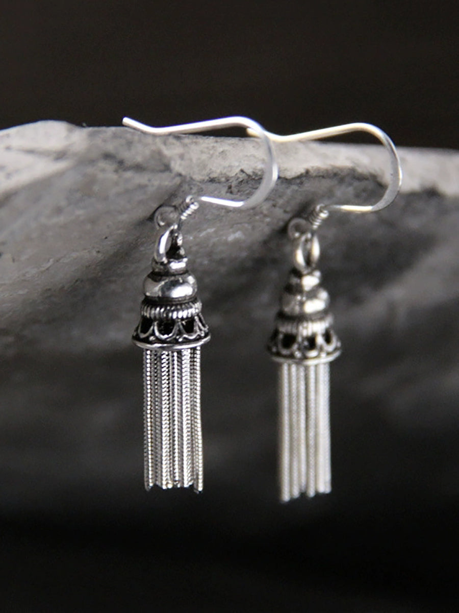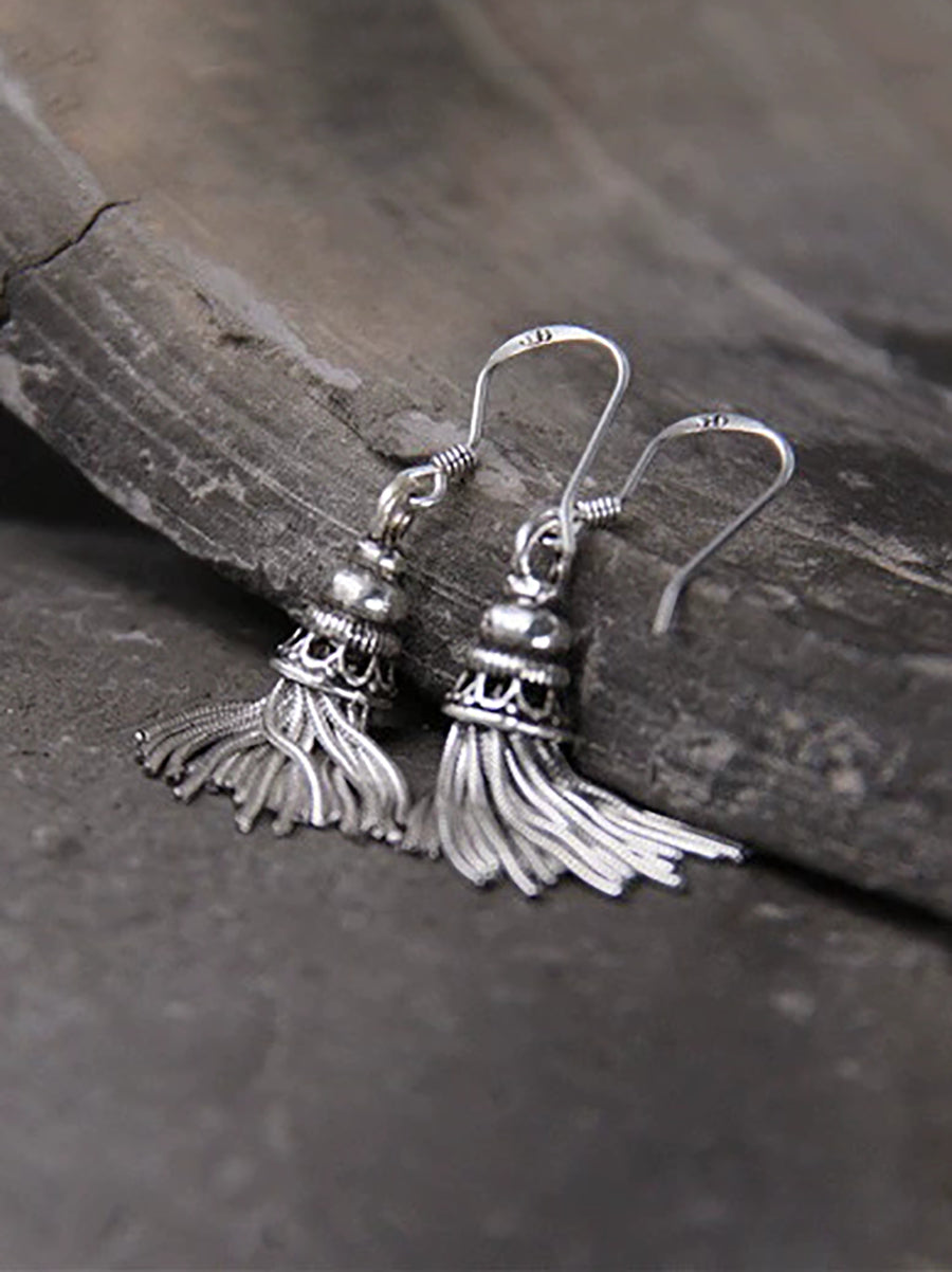 Pendientes étnicos con borlas de plata S925 para mujer