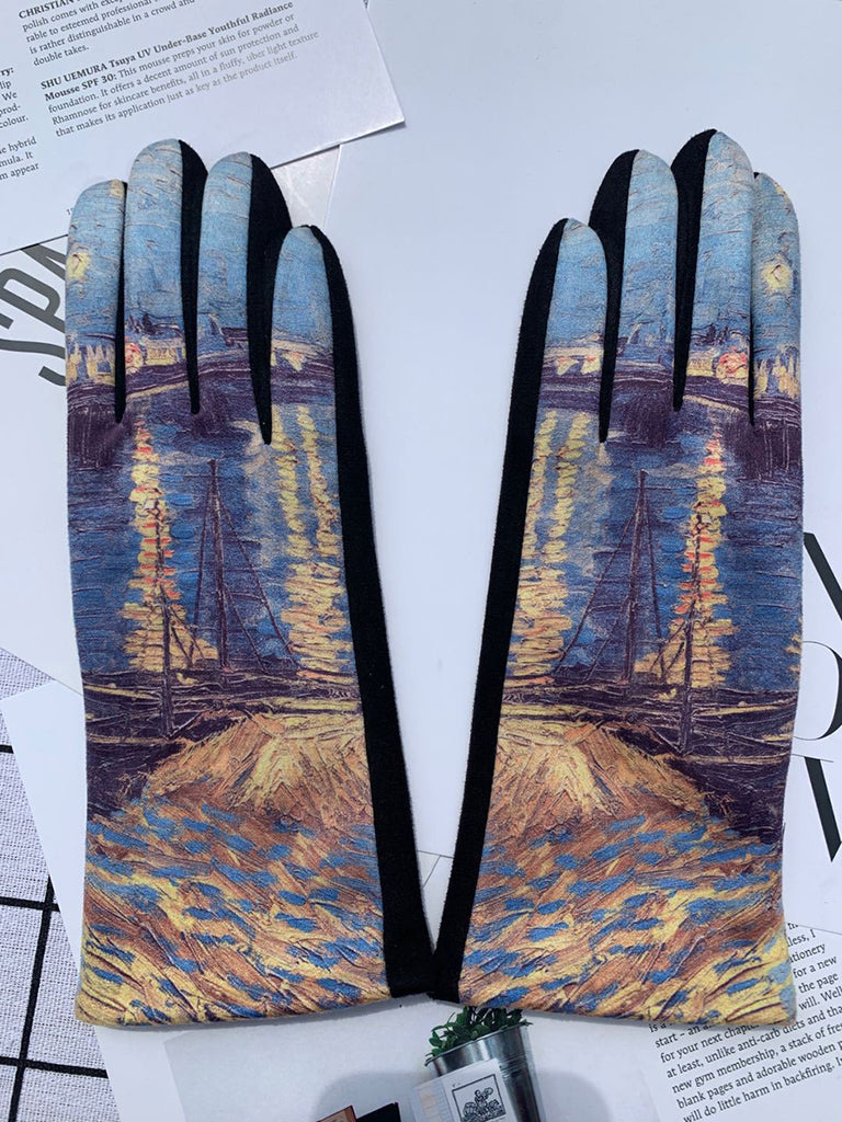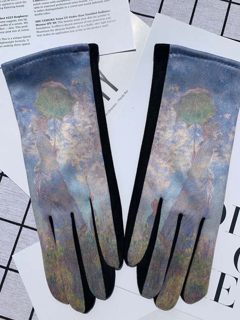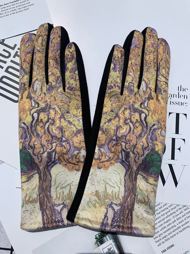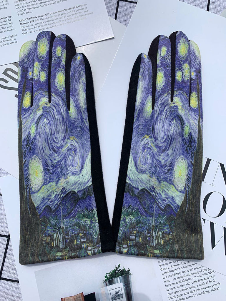 Guantes cálidos para exteriores con estampado de moda para mujer