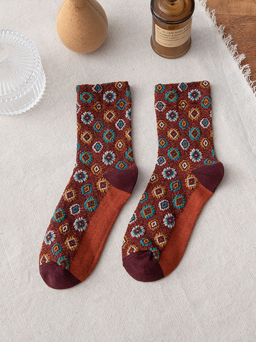 Calcetines casuales vintage con diseño floral para mujer, 5 pares, para otoño e invierno