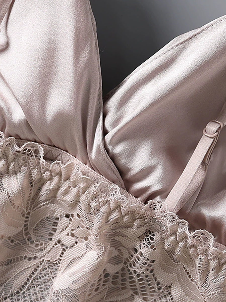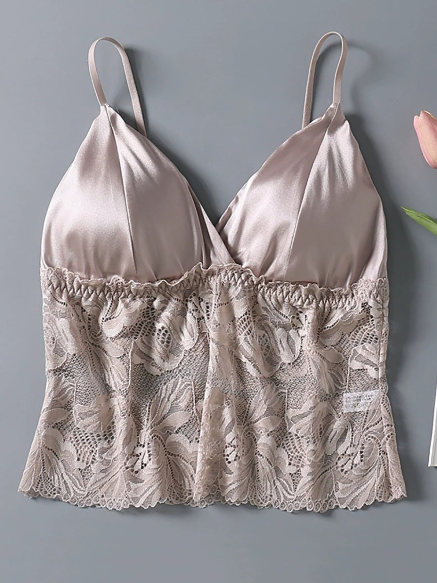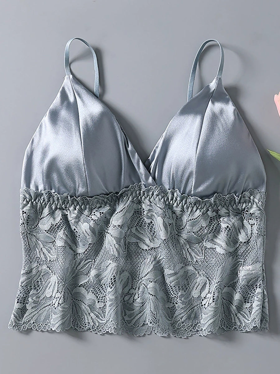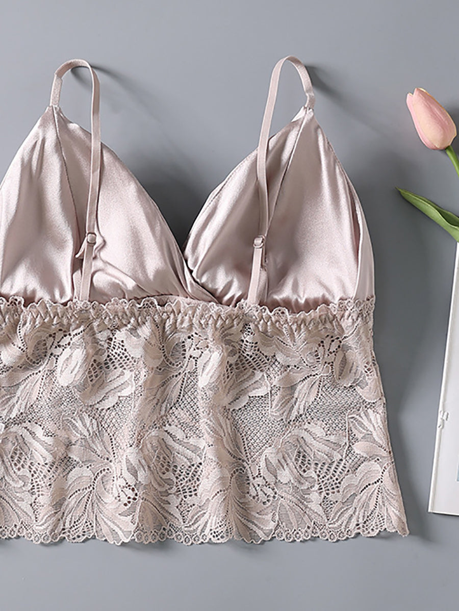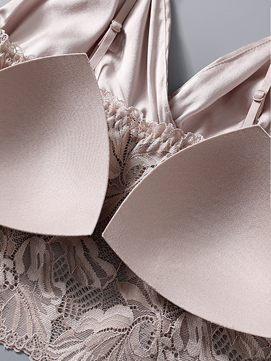 Sujetador sin aros de seda con encaje floral para mujer