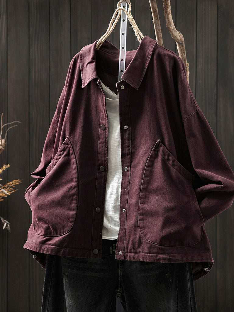 Camisa de mujer 100 % algodón con cuello vuelto y color puro