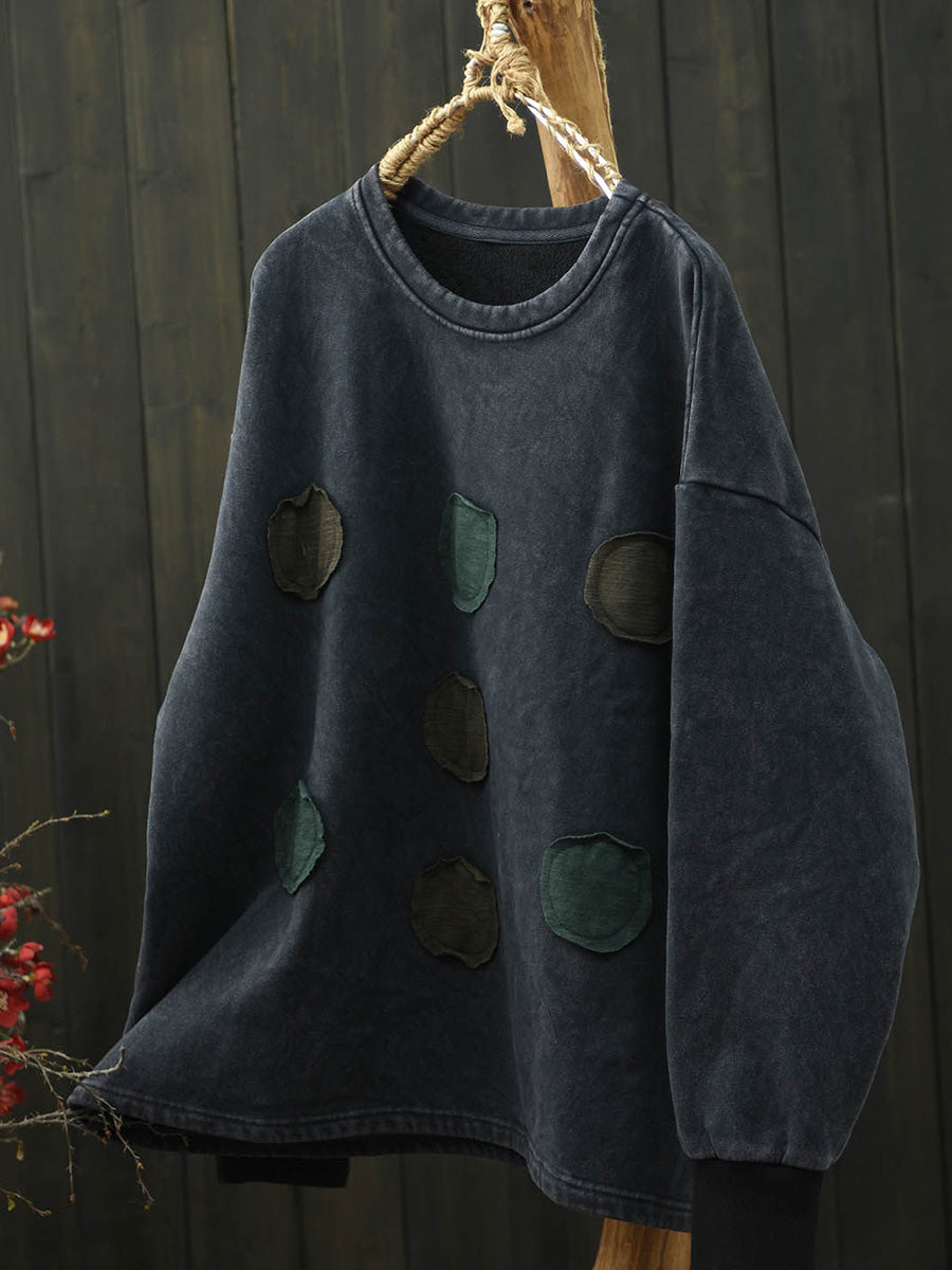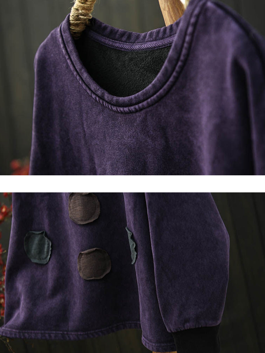Blusa retro de otoño con cuello redondo y forro polar de patchwork para mujer