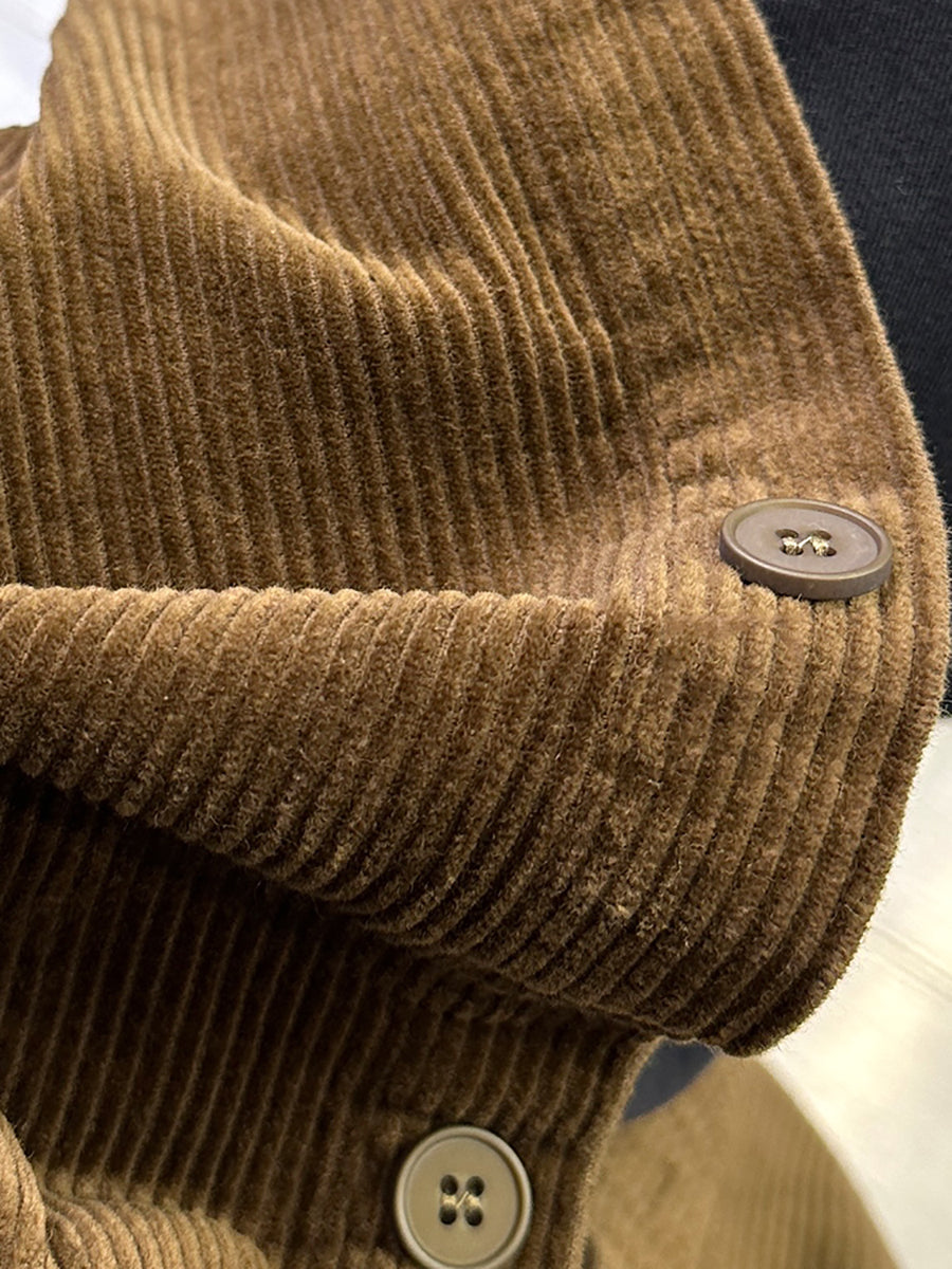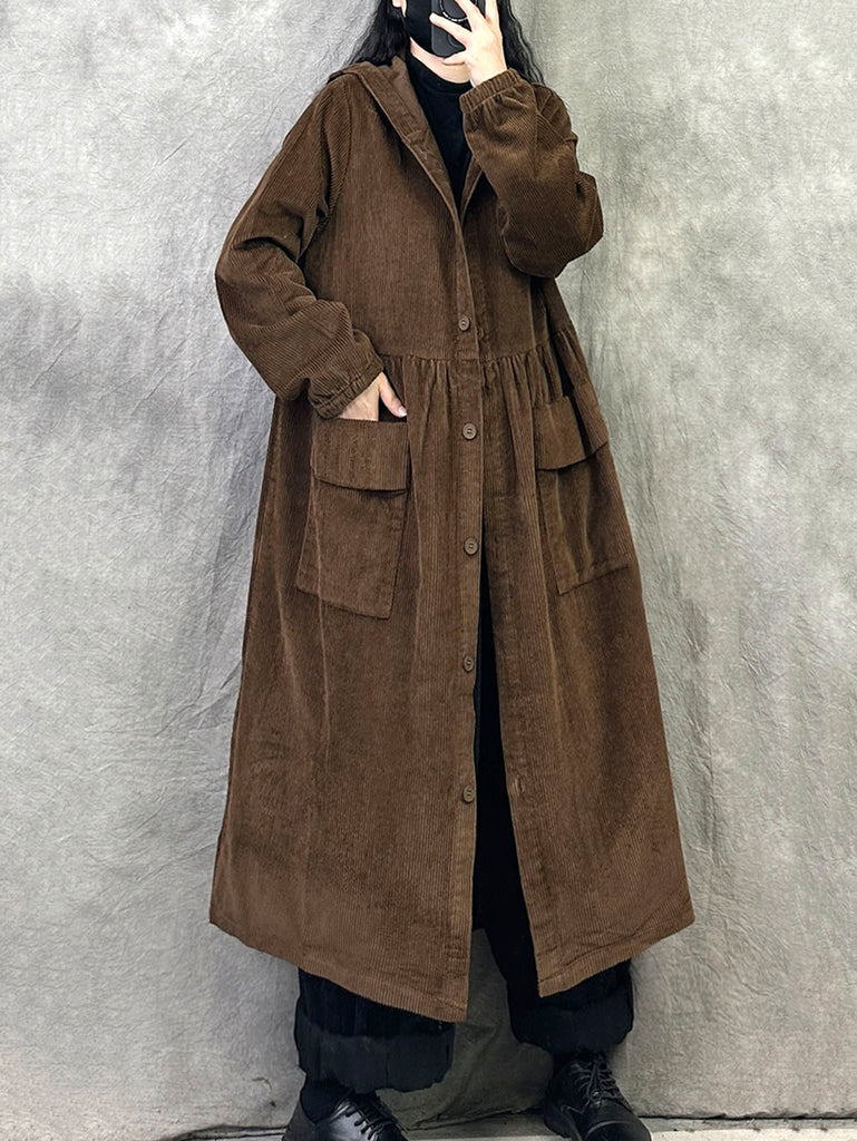 Abrigo de pana con capucha de color puro retro de otoño para mujer