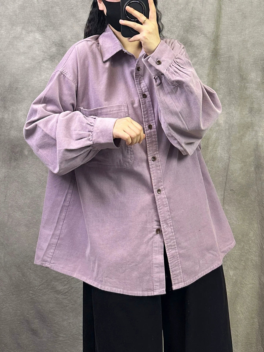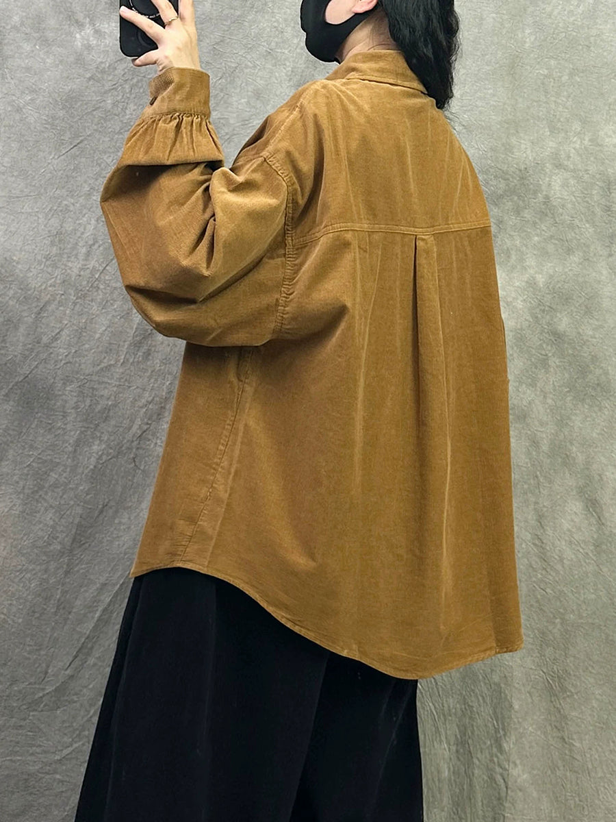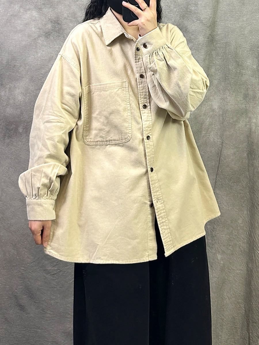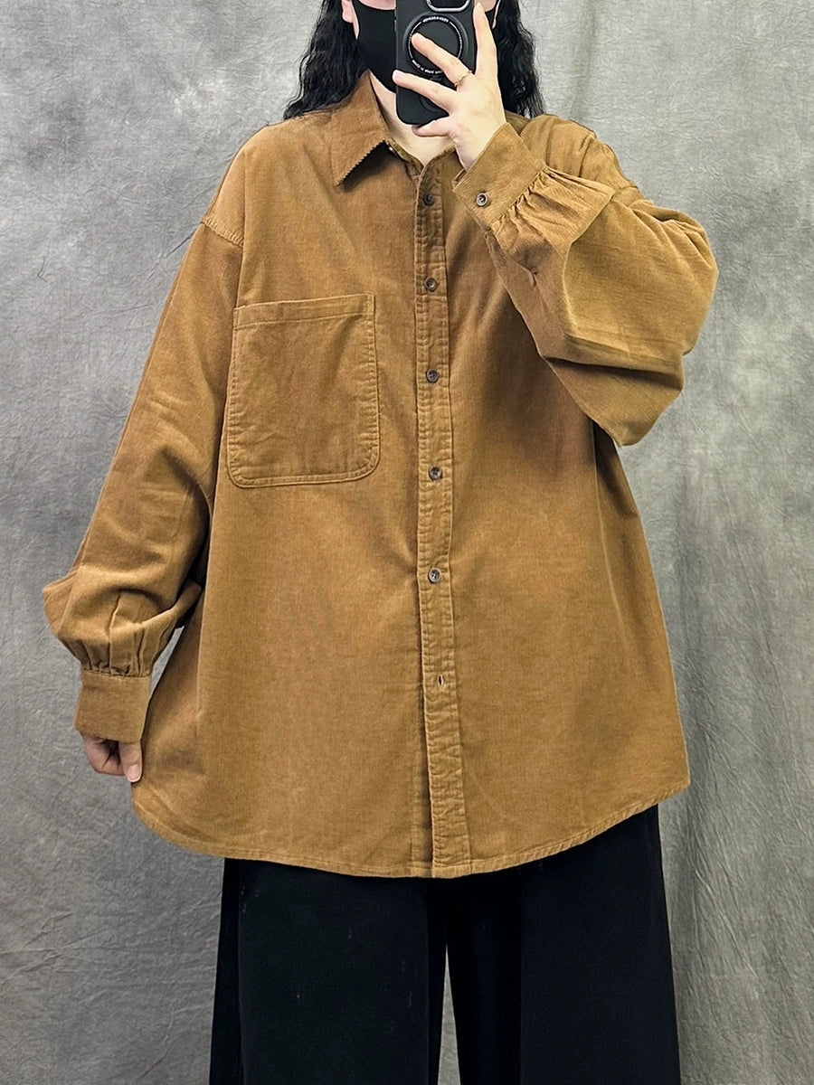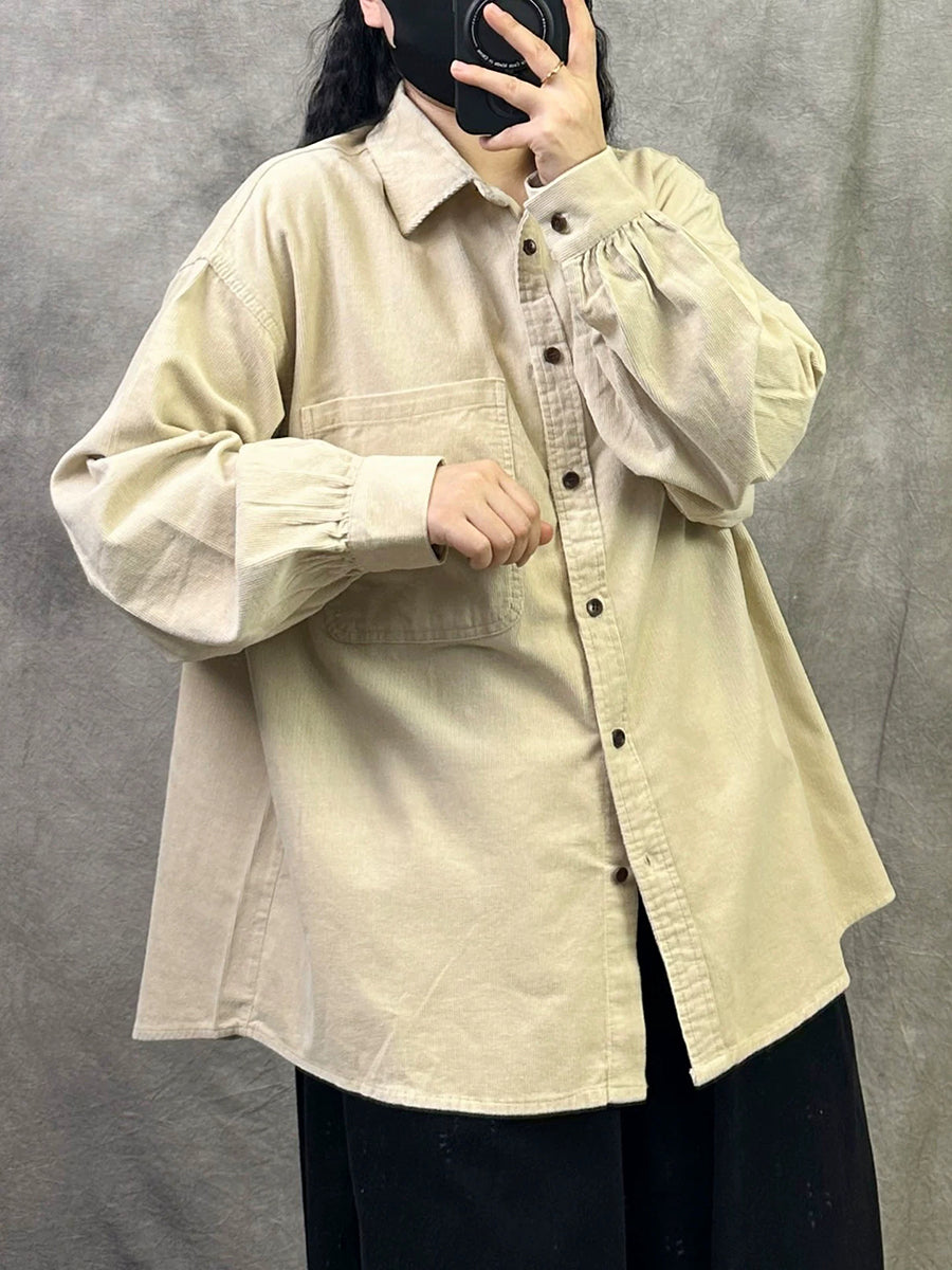 Camisa de pana de color puro retro de primavera para mujer