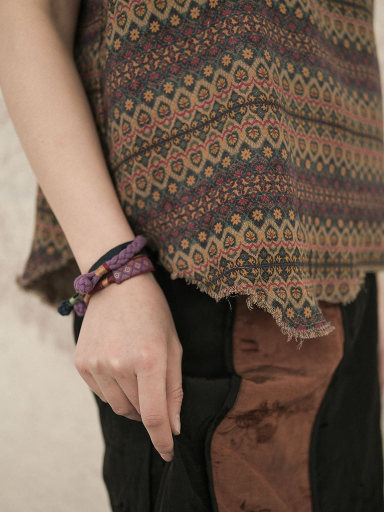 Chaleco geométrico con dobladillo irregular desgastado retro para mujer