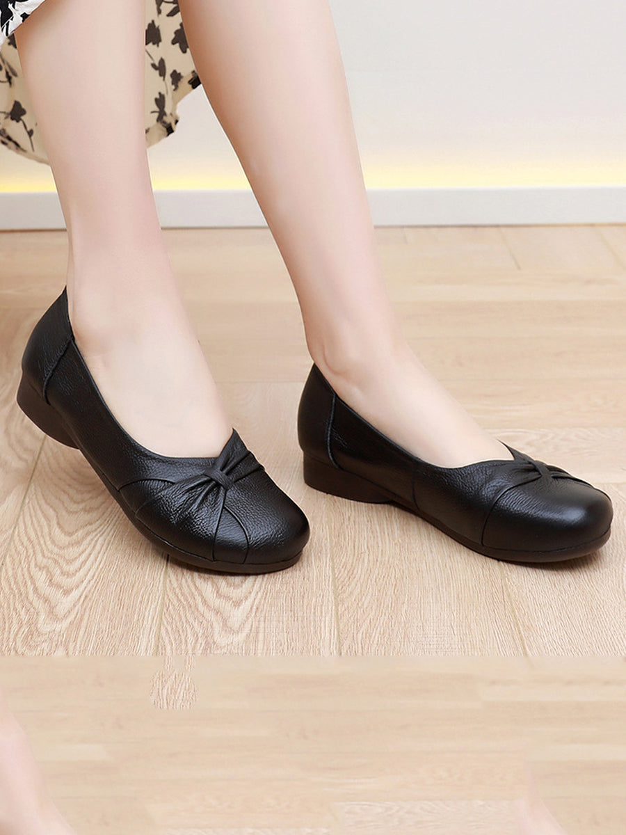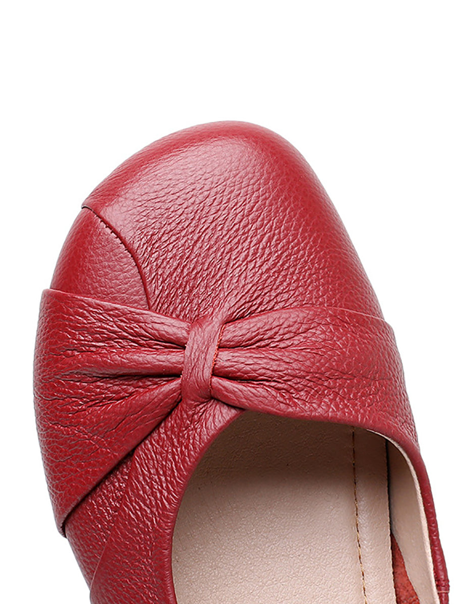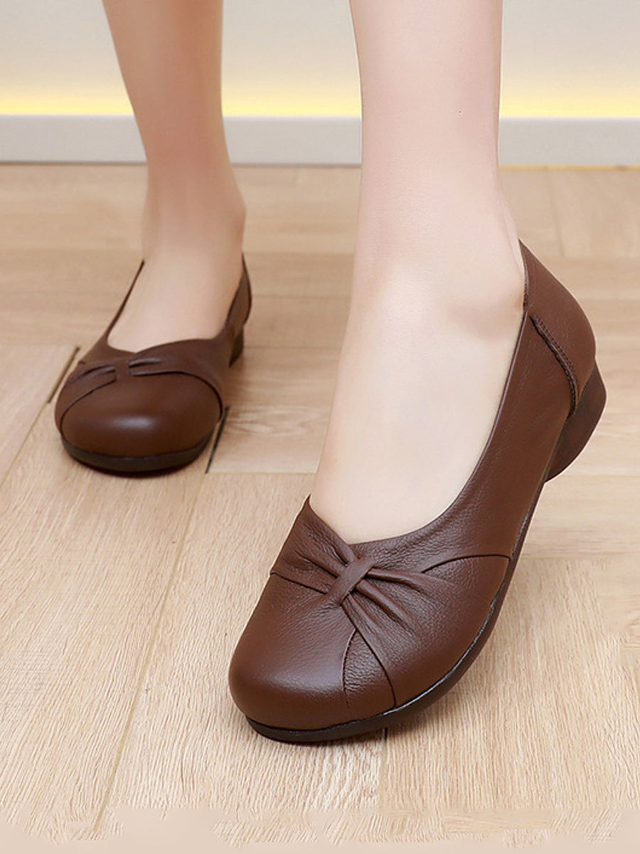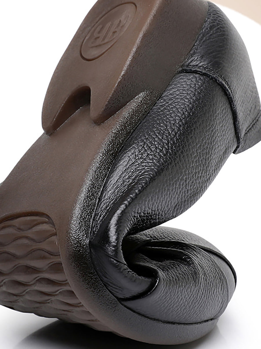 Zapatos de tacón bajo de piel auténtica suave para mujer