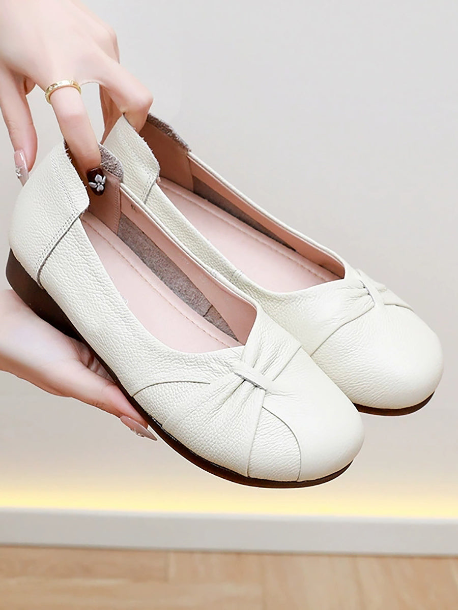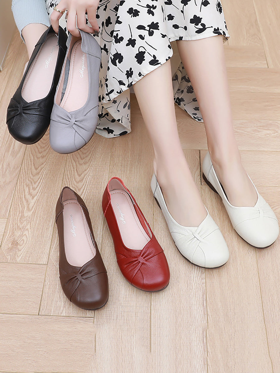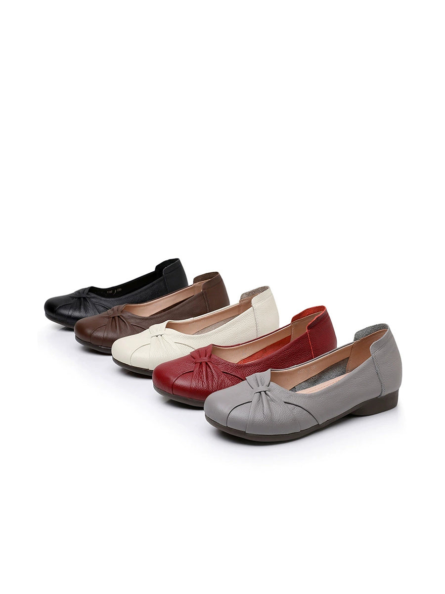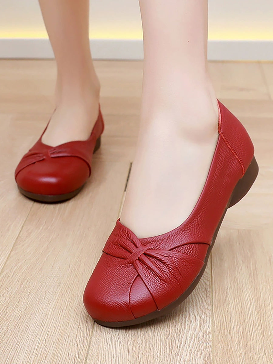 Zapatos de tacón bajo de piel auténtica suave para mujer