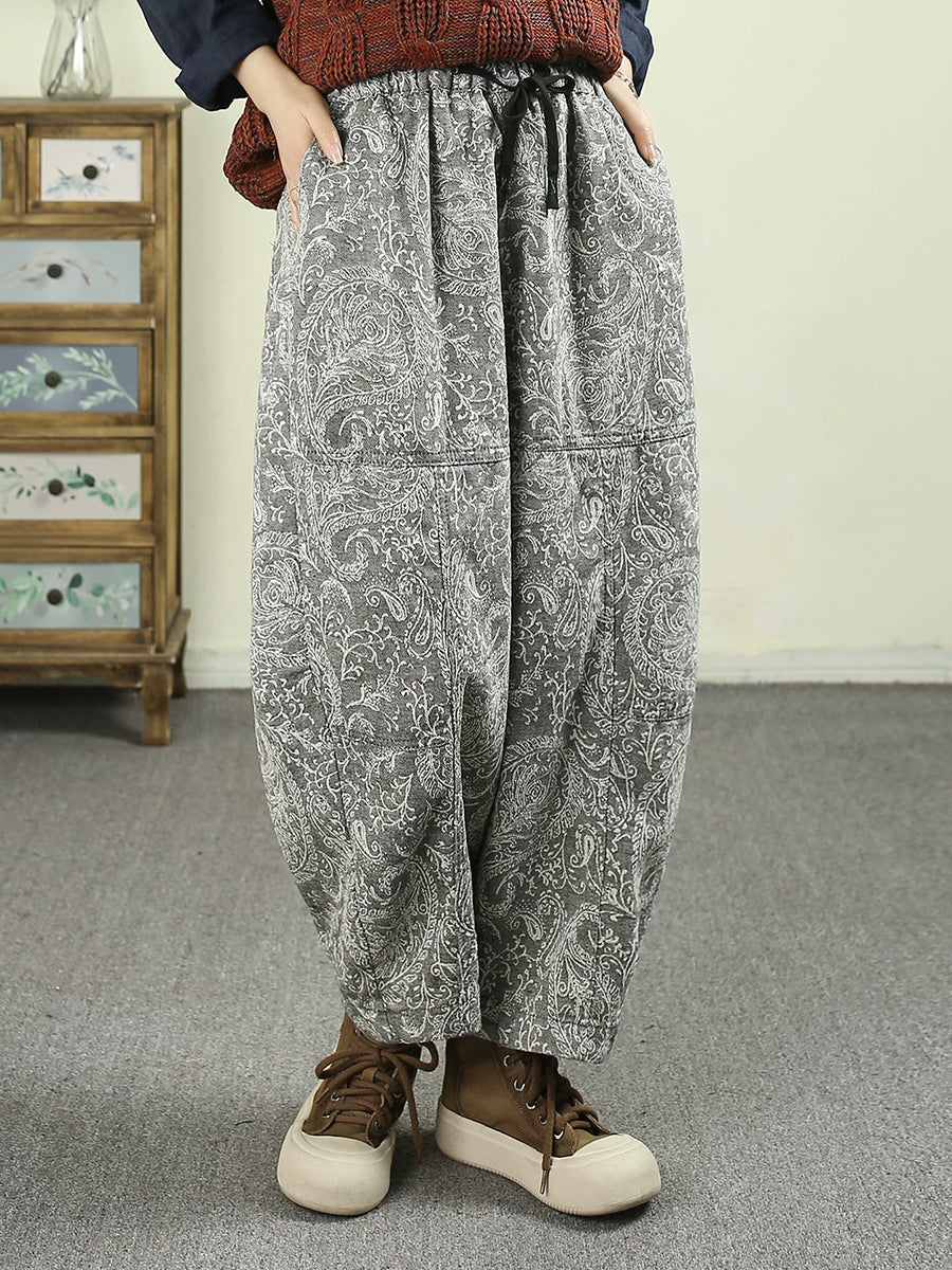 Pantalones harén de mezclilla con estampado floral de primavera para mujer