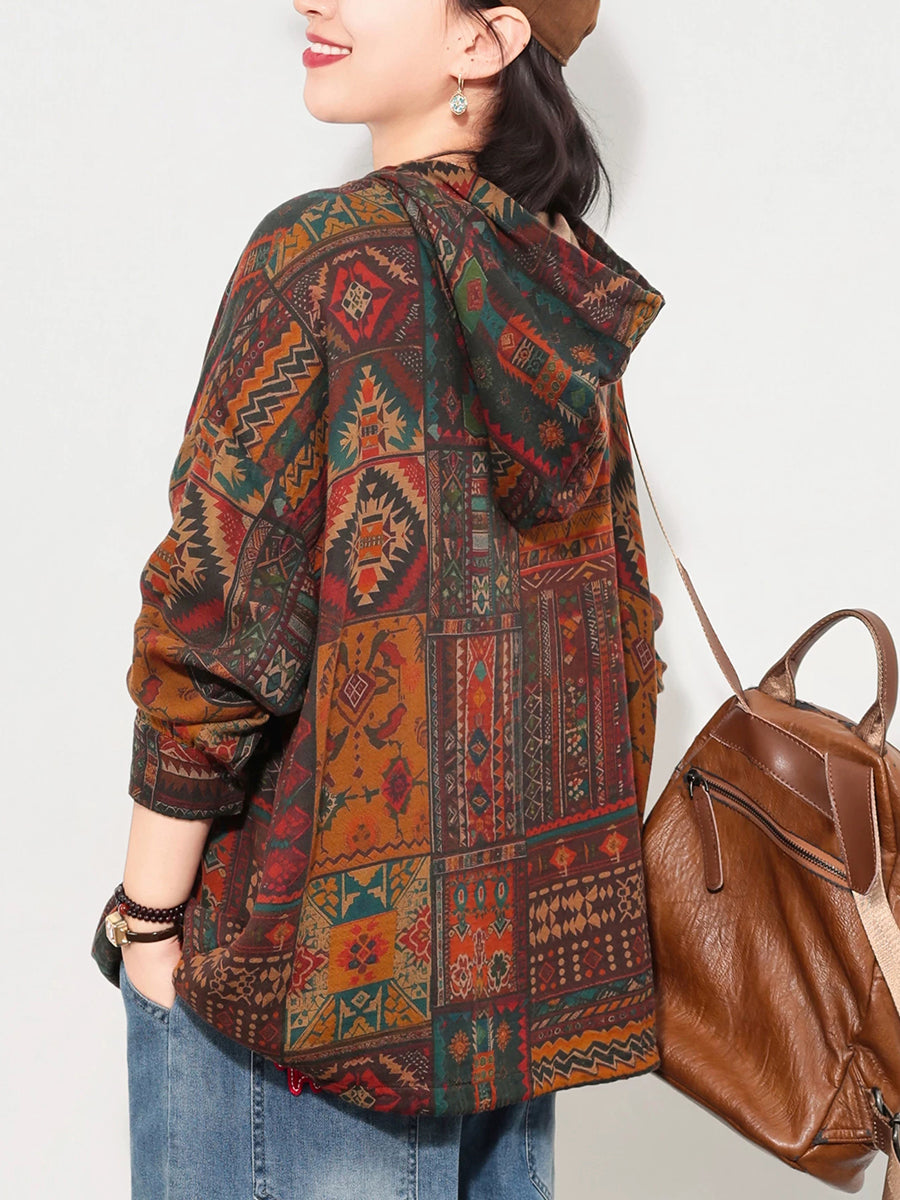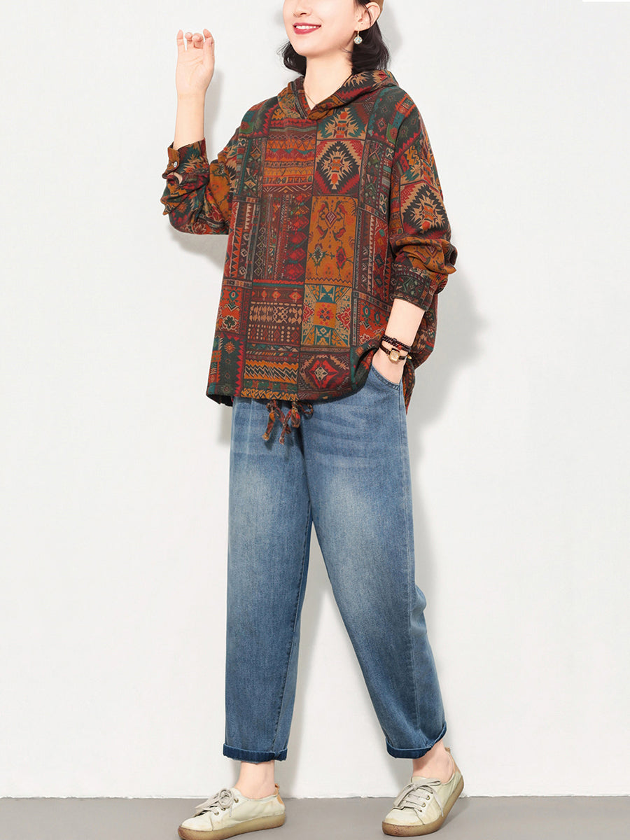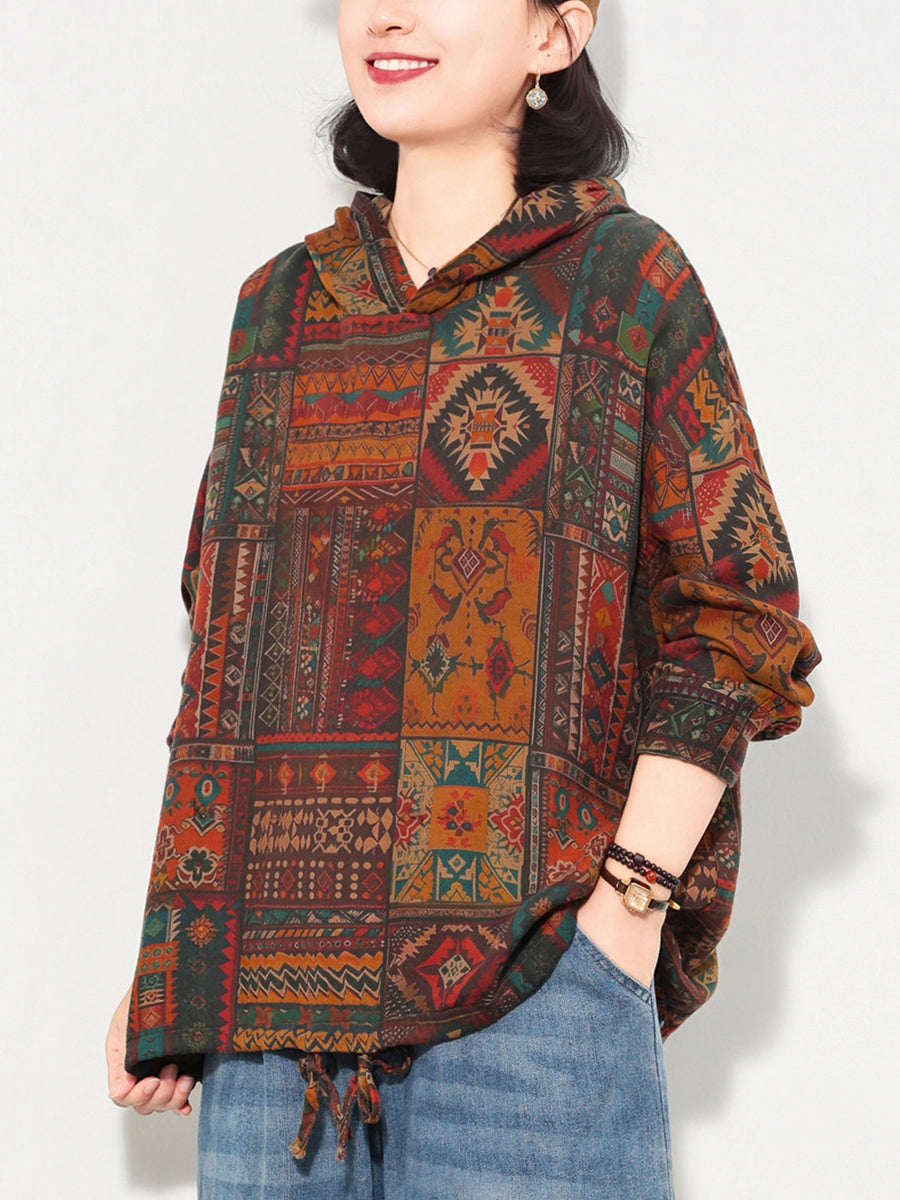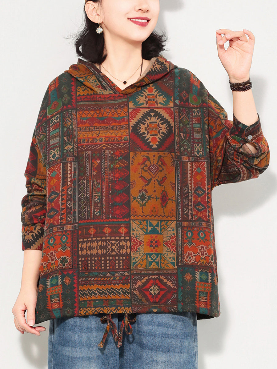 Sudadera con capucha de algodón con estampado floral artístico de primavera para mujer