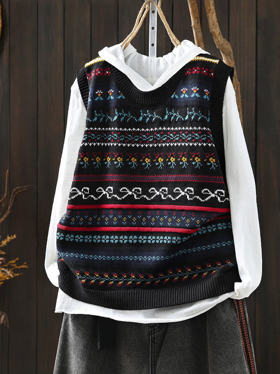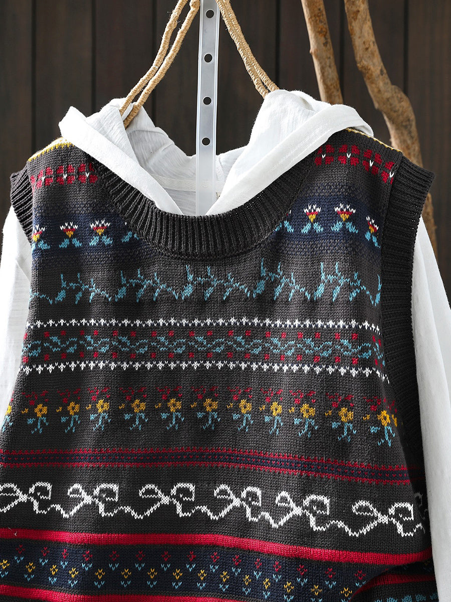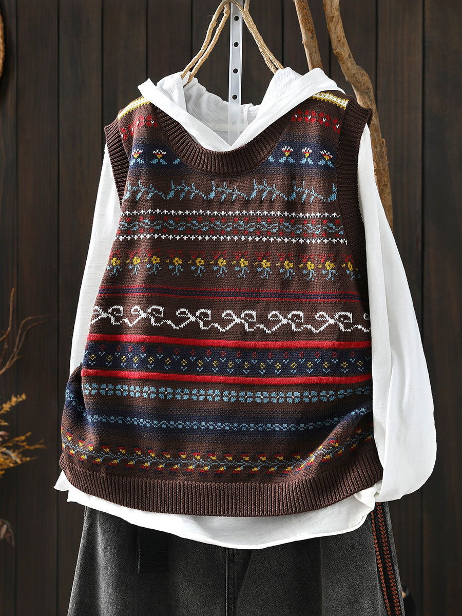 Chaleco de punto con cuello redondo artístico de primavera para mujer