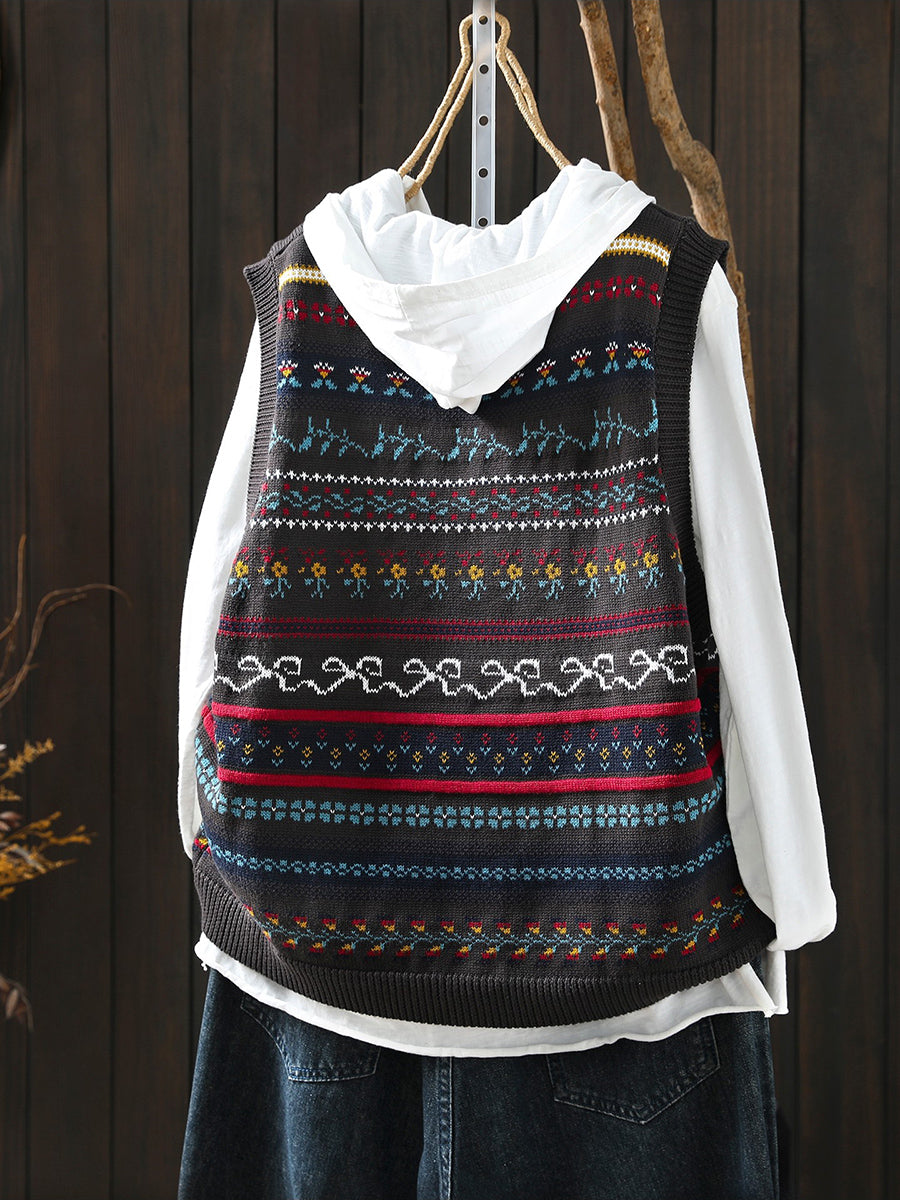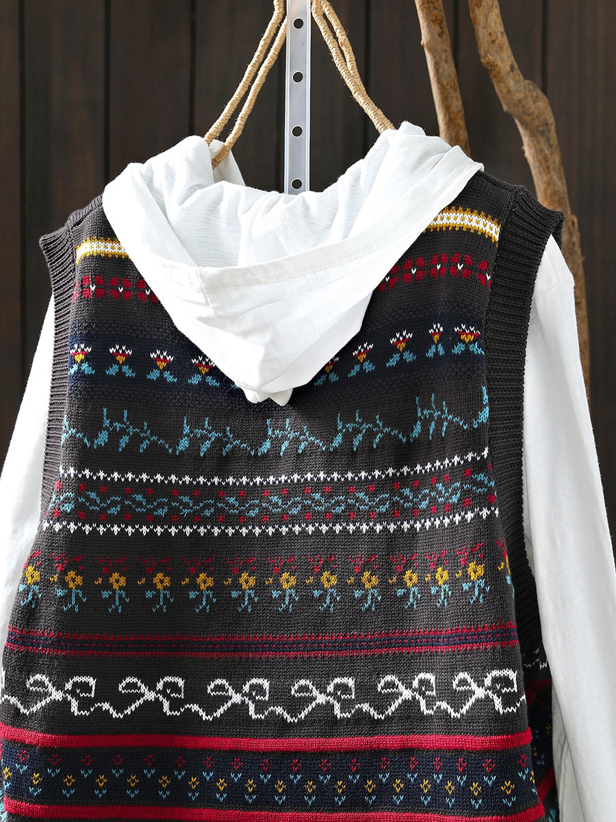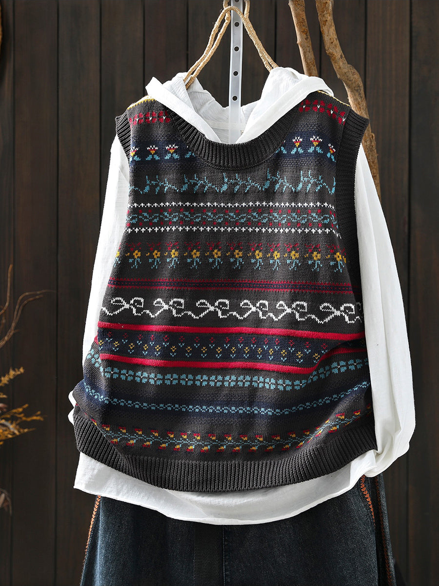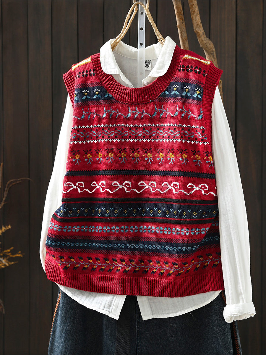 Chaleco de punto con cuello redondo artístico de primavera para mujer