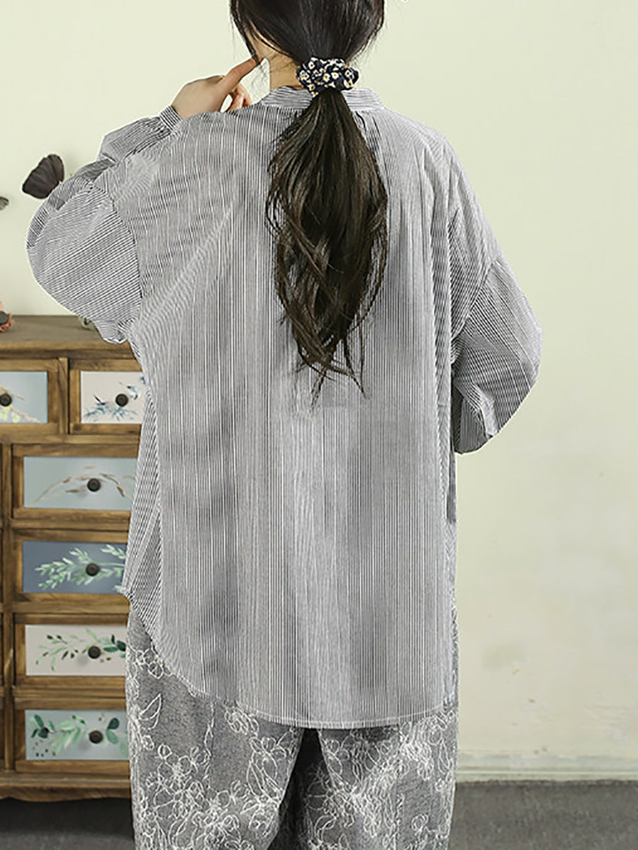 Camisa de cuello alto 100 % algodón de color puro y estilo artístico para mujer, primavera