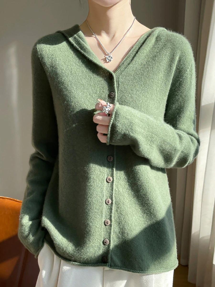 Cárdigan con capucha de primavera para mujer, estilo artístico, de color puro