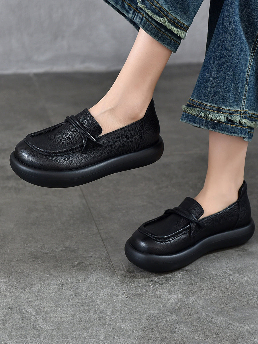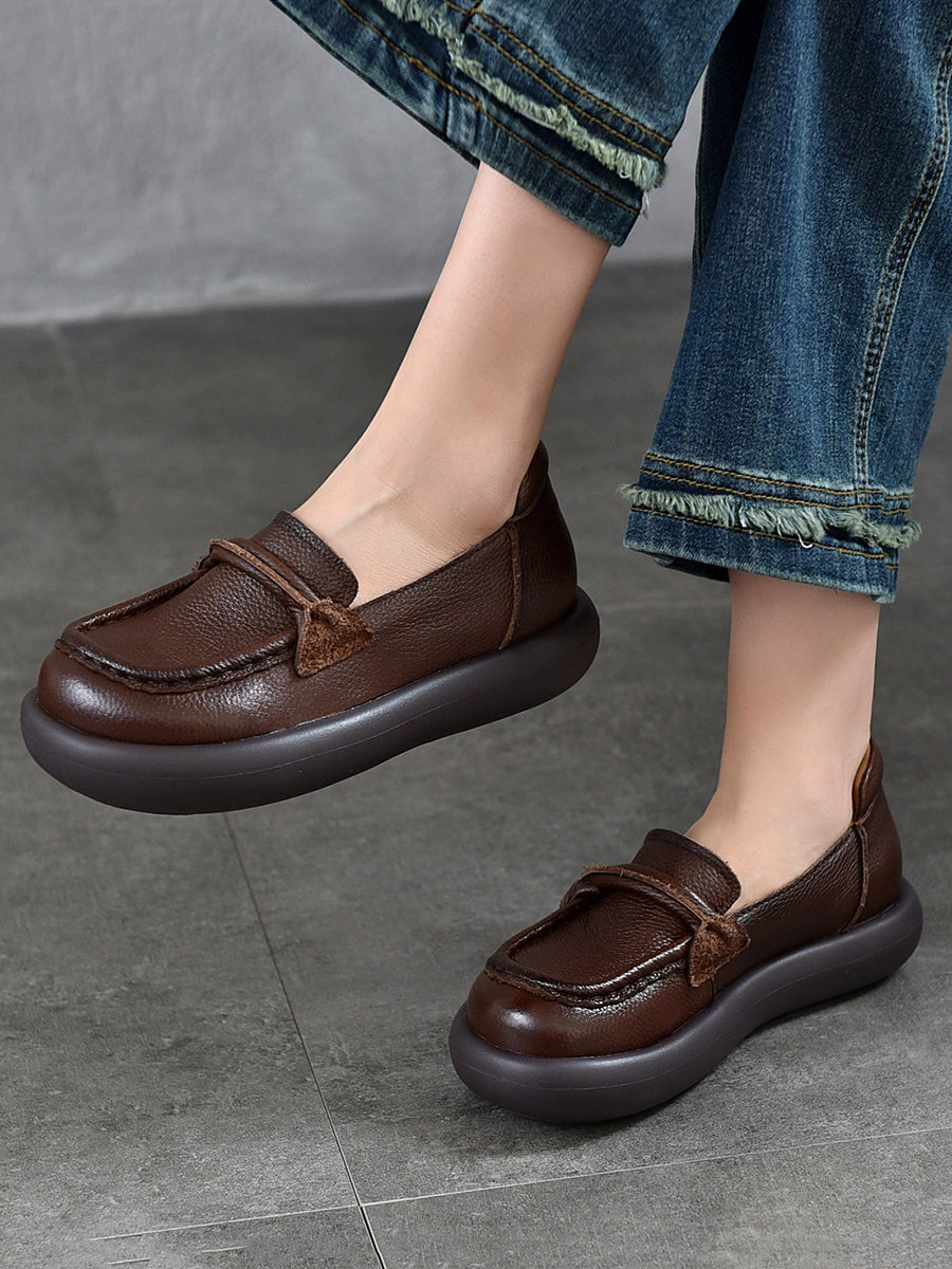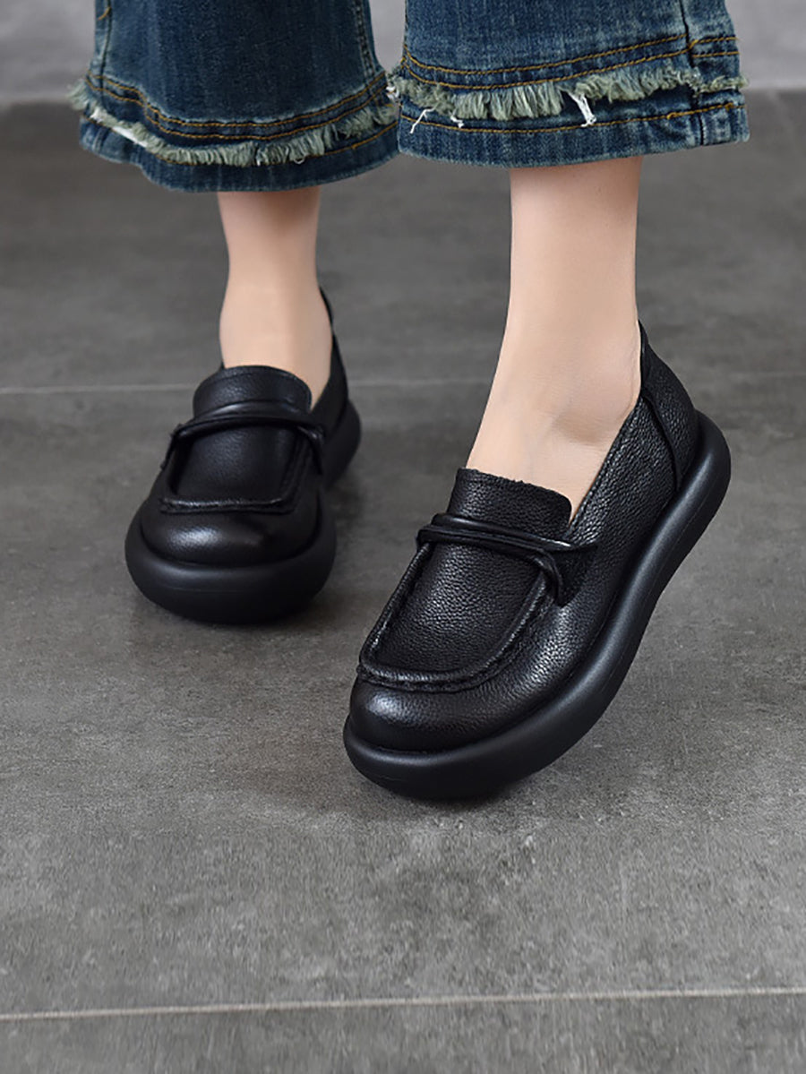 Zapatos planos casuales de piel auténtica para mujer, de primavera