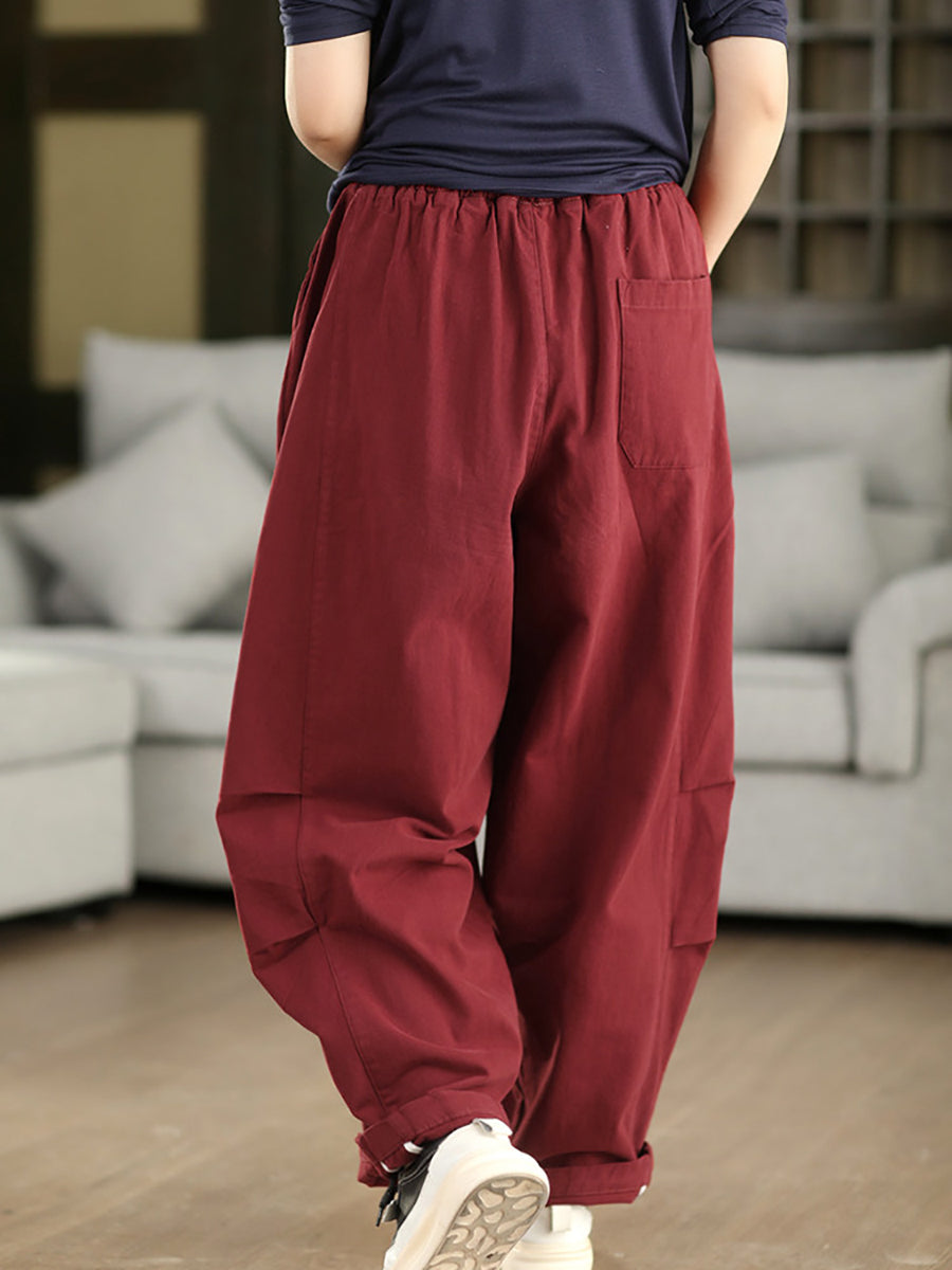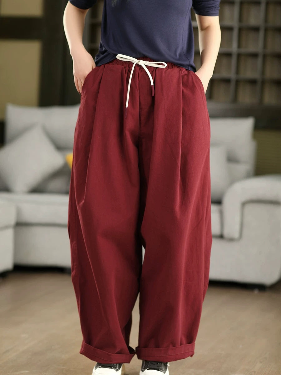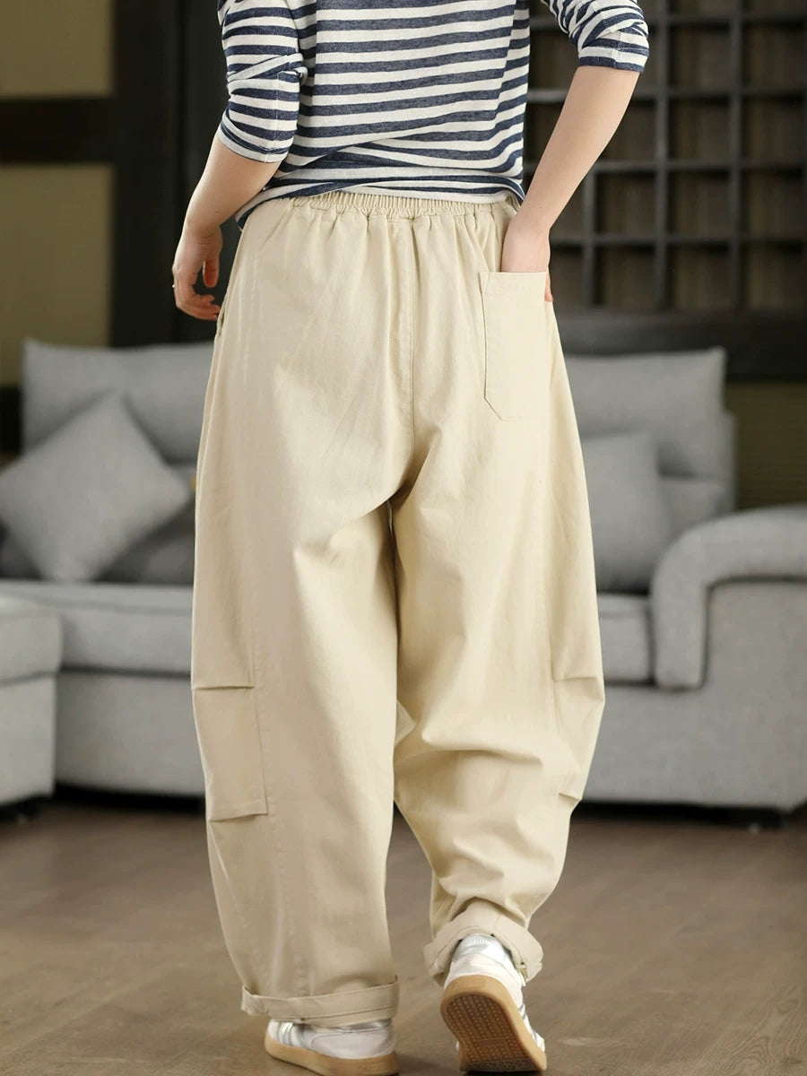 Pantalones harén 100 % algodón de color puro para mujer, informales, de primavera