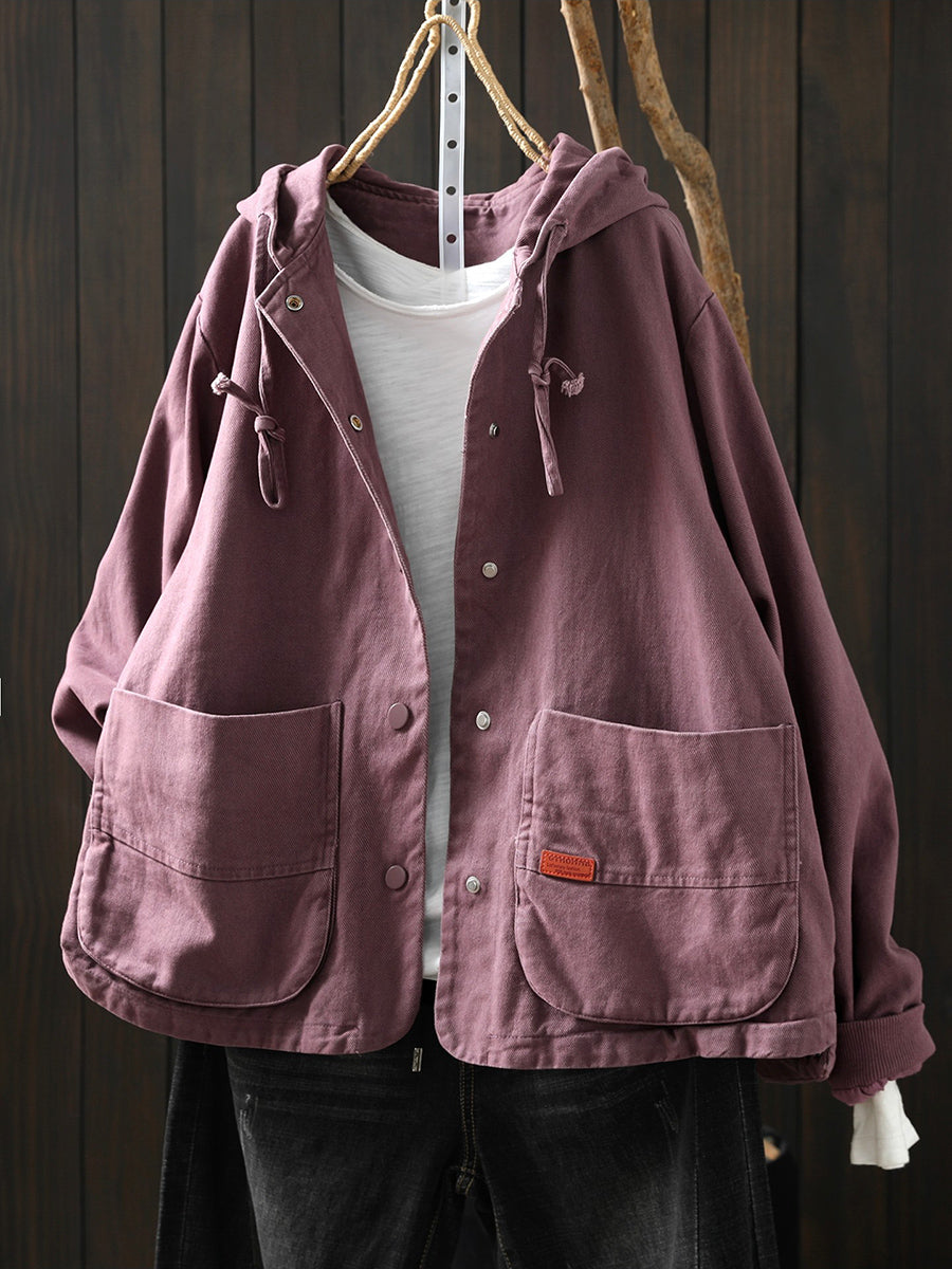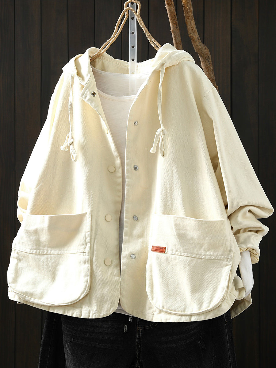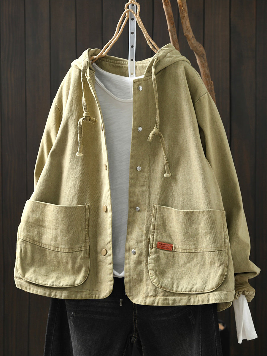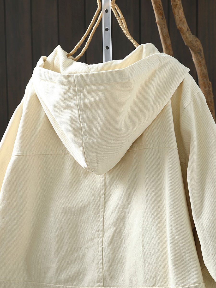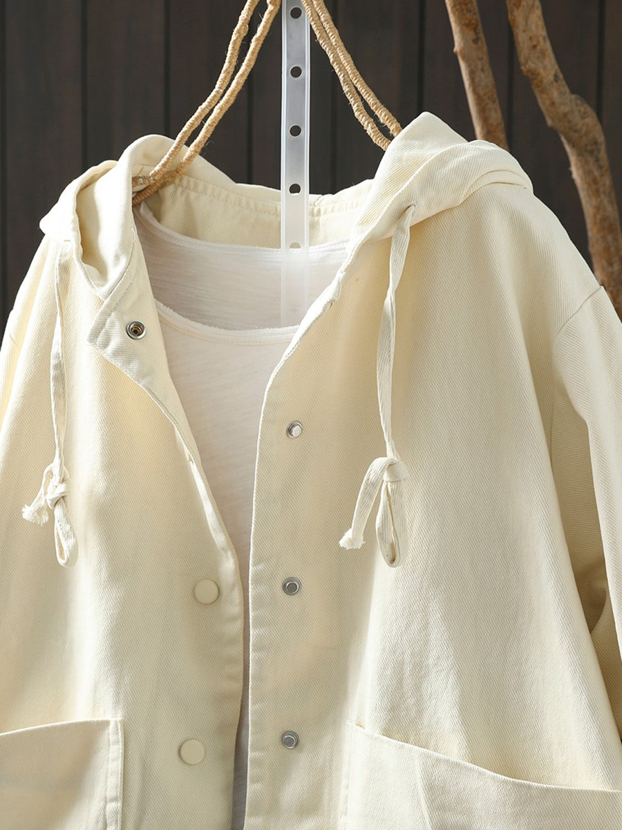 Abrigo informal de algodón con capucha de color puro para mujer, primavera