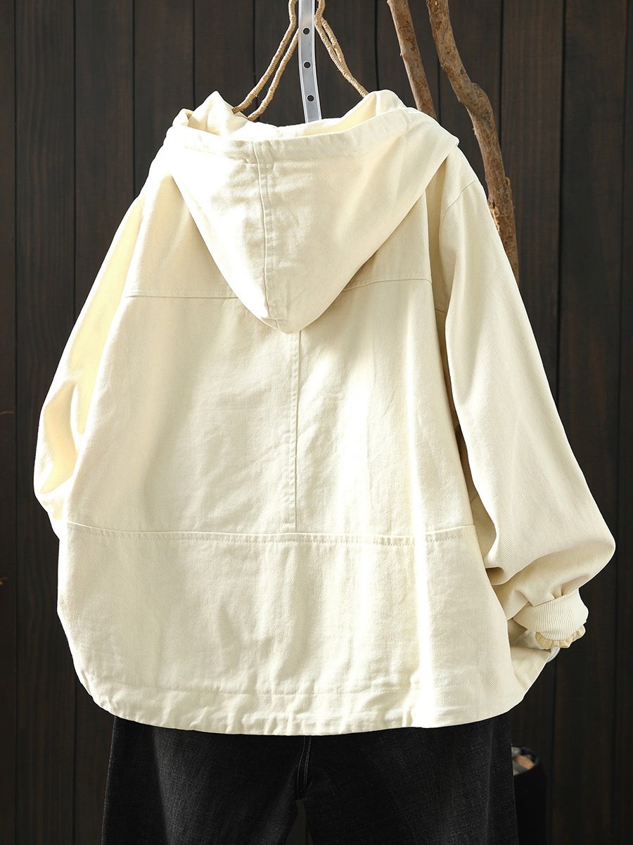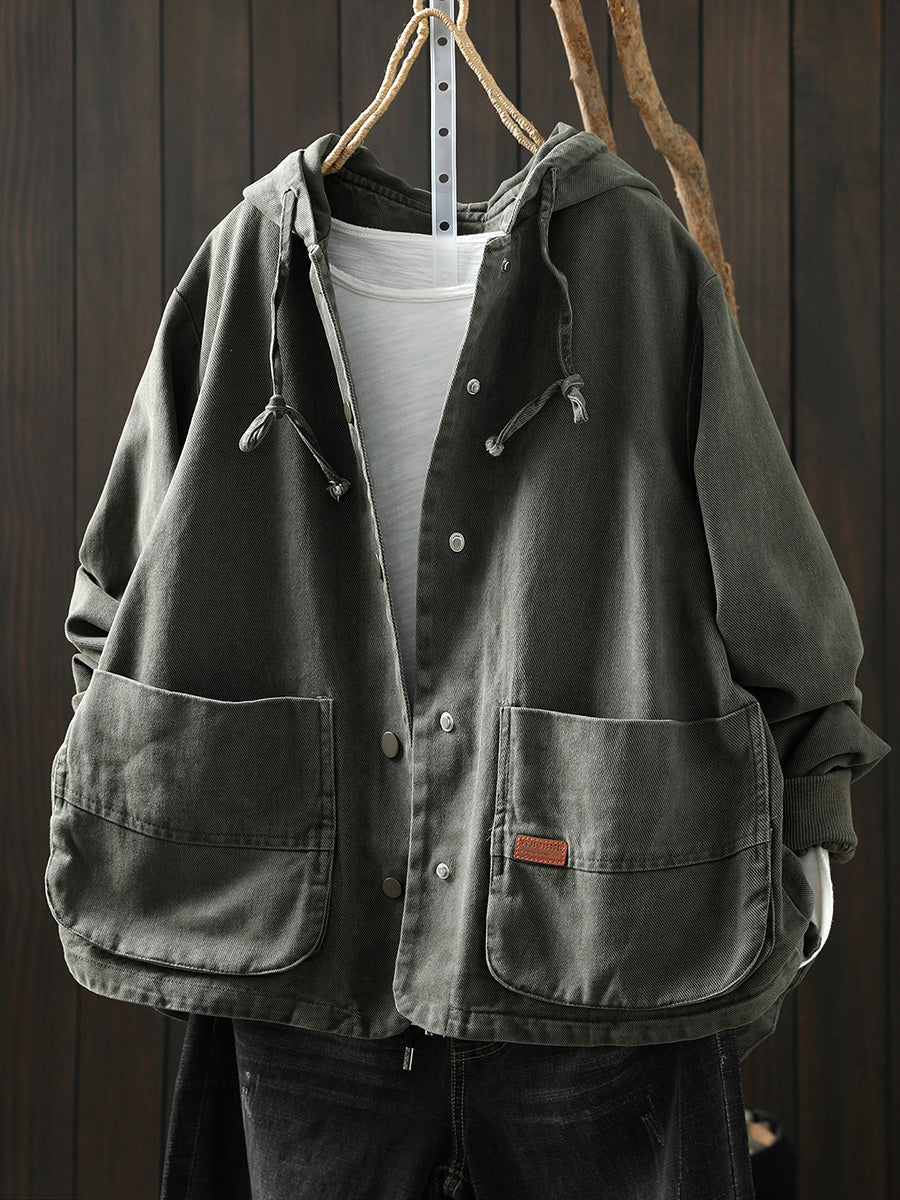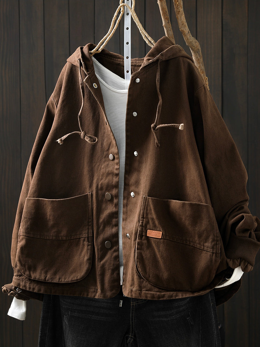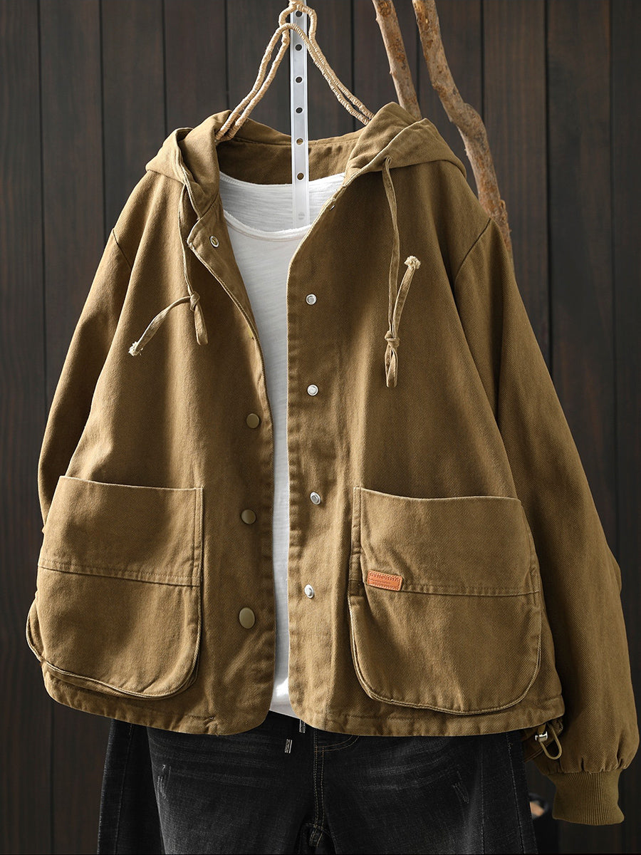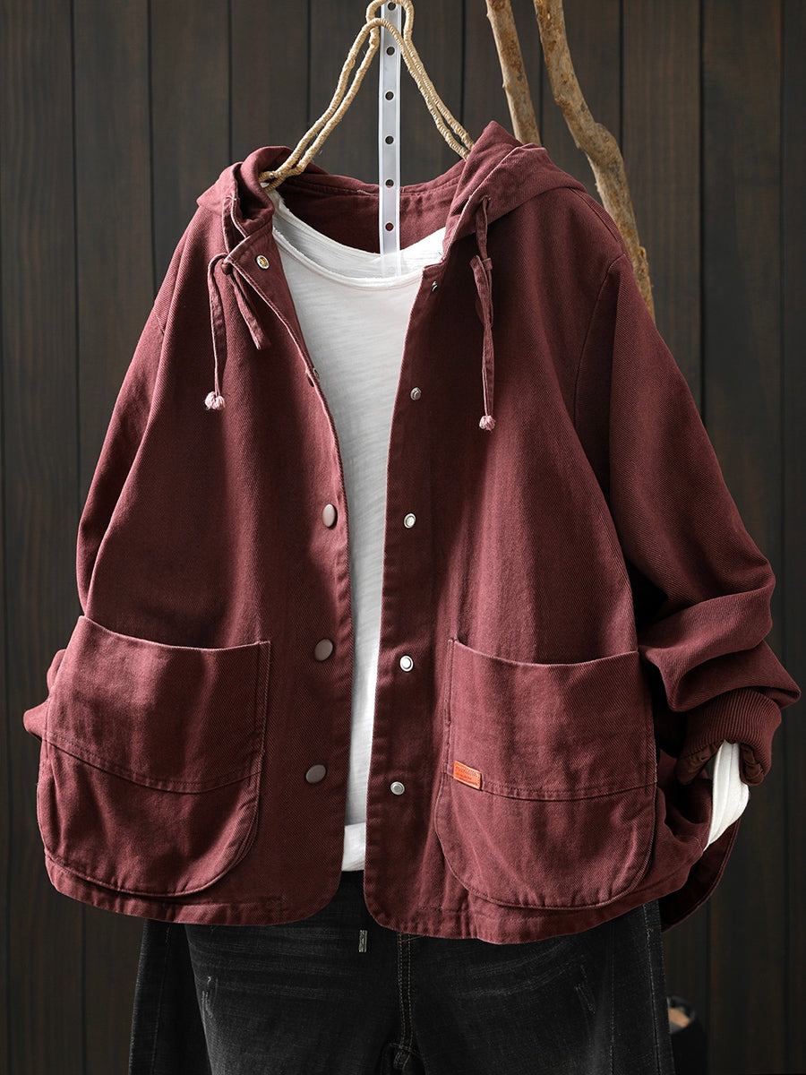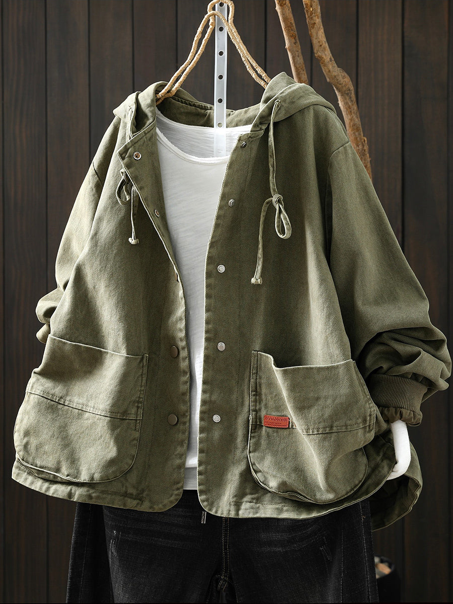 Abrigo informal de algodón con capucha de color puro para mujer, primavera